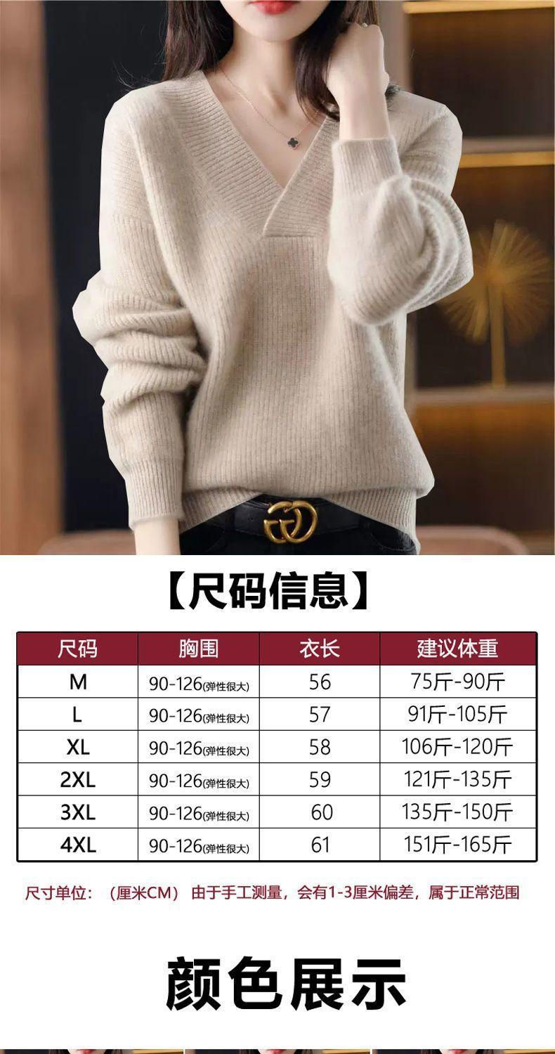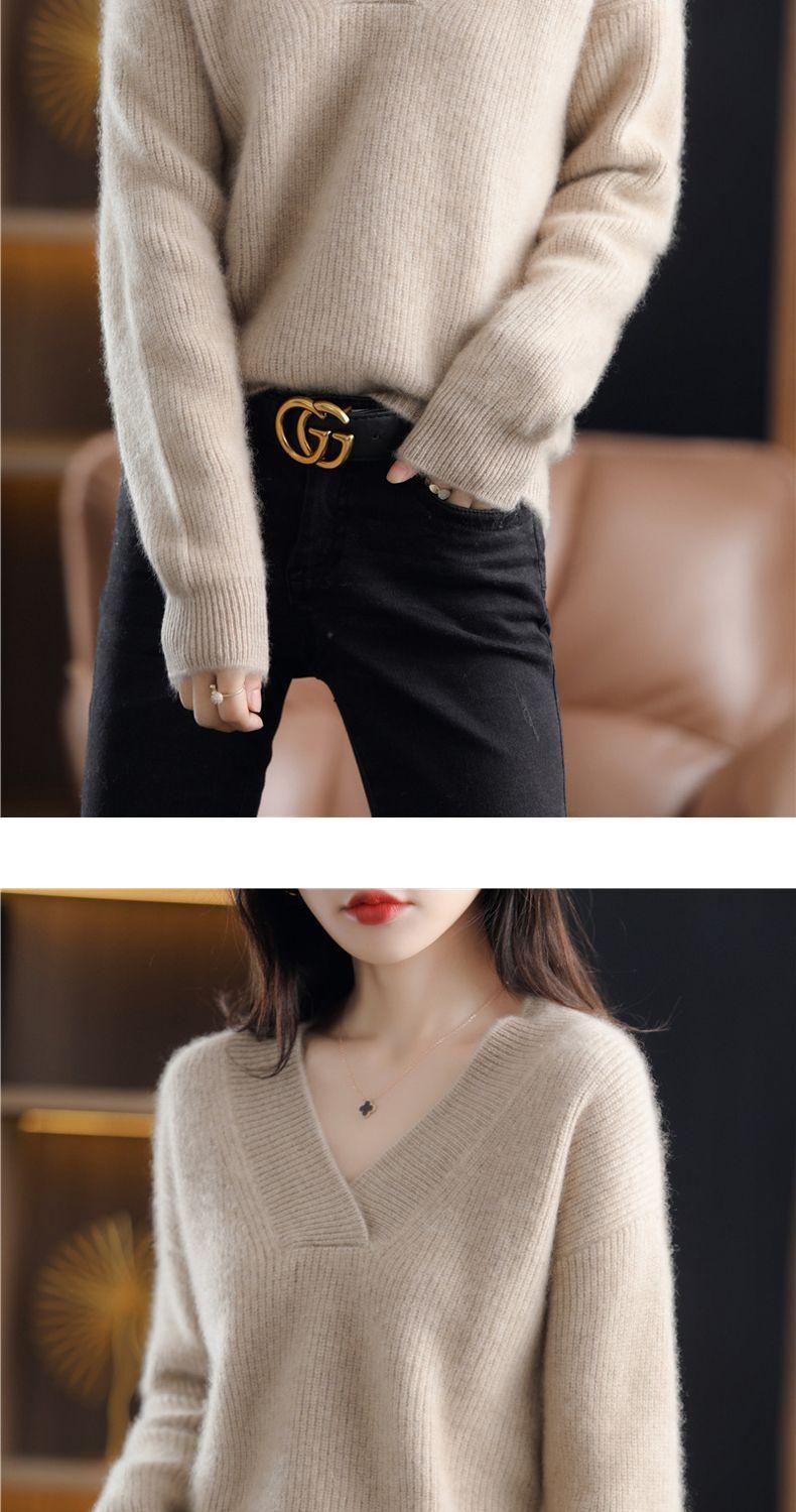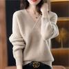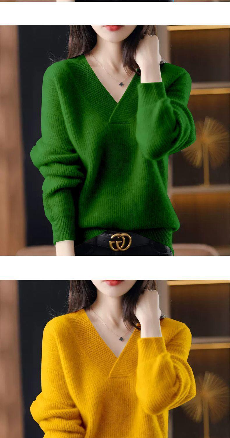 2024 Ropa Exterior Otoño e Invierno Nuevo Suéter Tejido de Cuello en V de Color Sólido para Mujer Suéter Tejido Holgado Adelgazante Grueso para Mujer