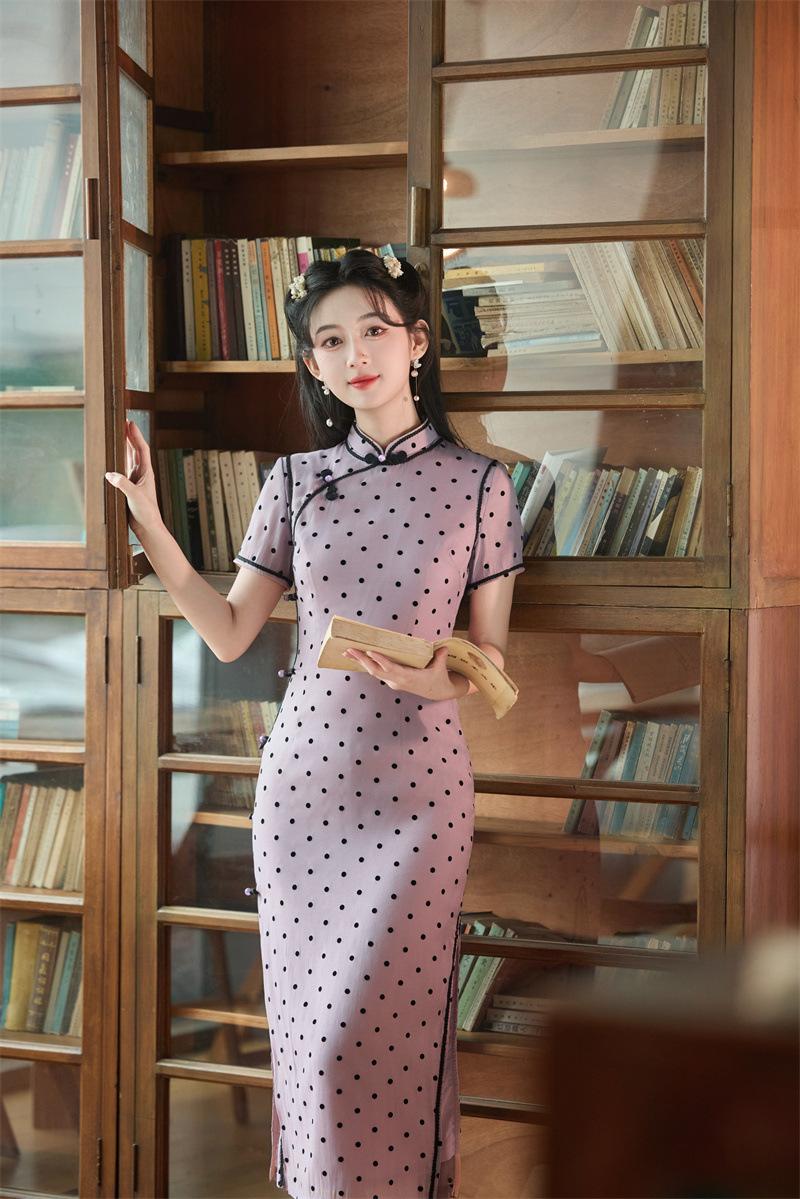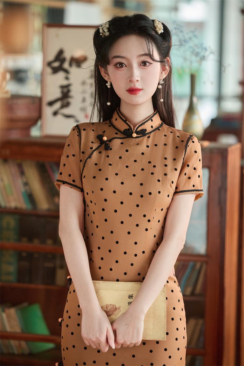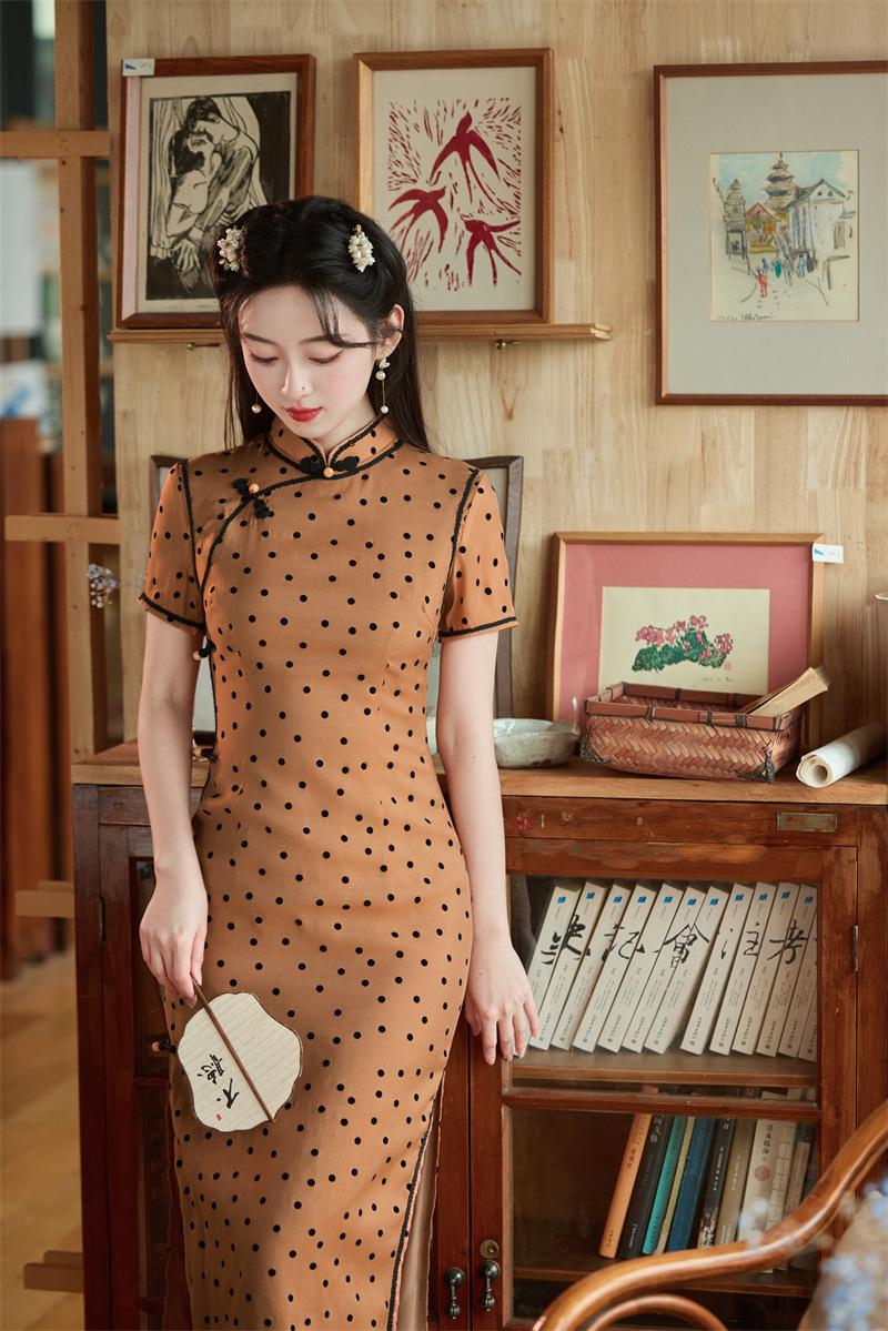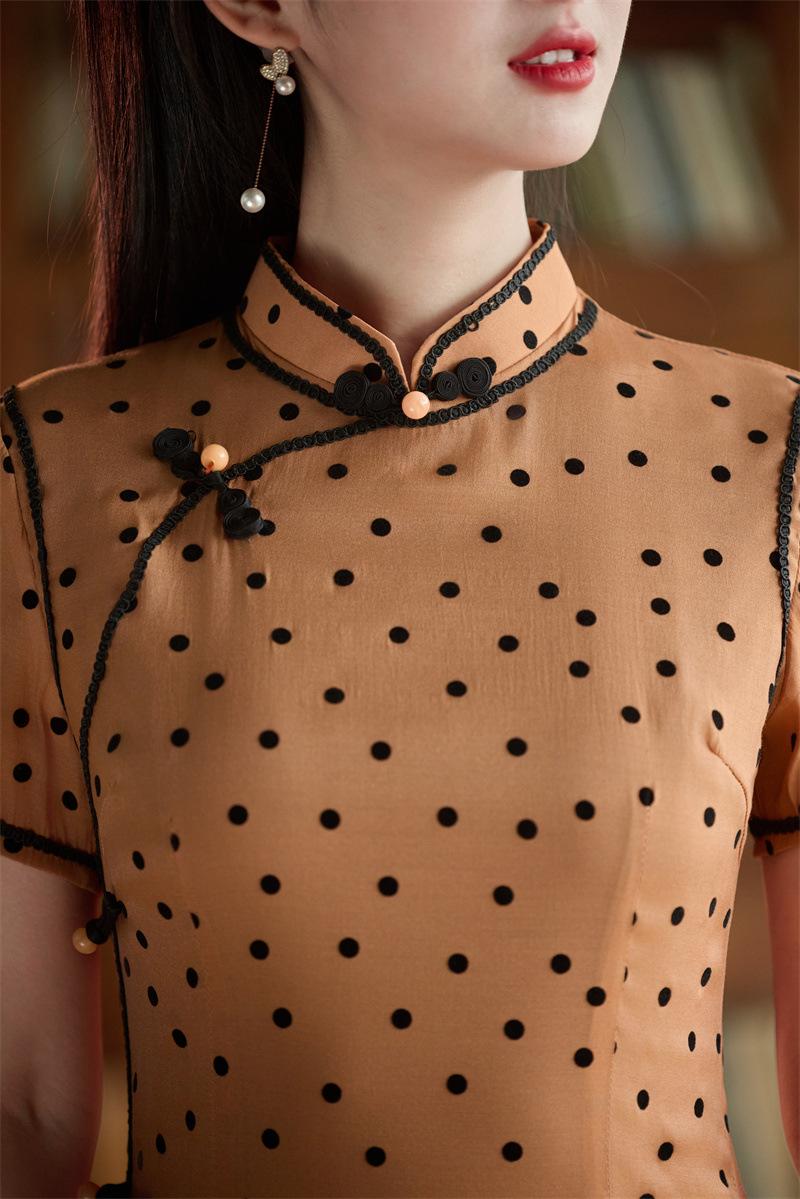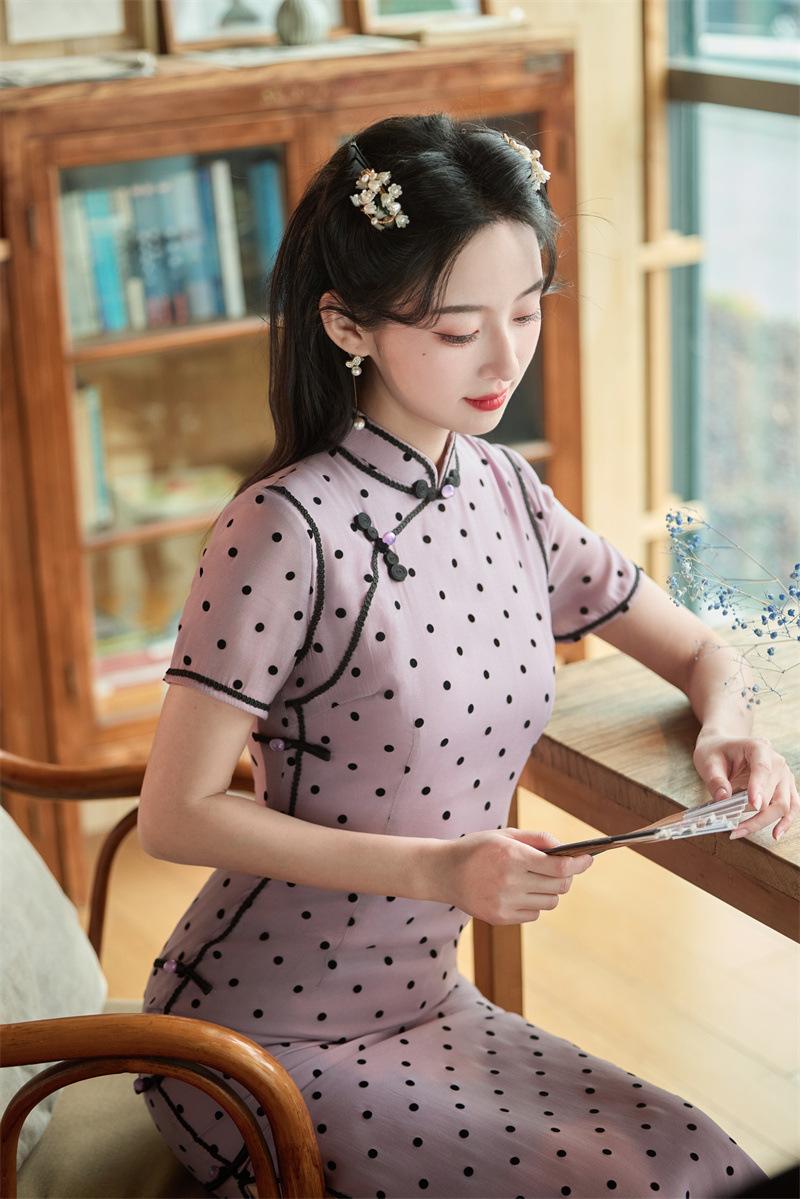 Características:Cheongsam nuevo, tela, textura suave, buena caída, no se encoge, no se decolora, no hace bolitas, ligera elasticidad, más característico de la nación china, bienvenido a comprar,