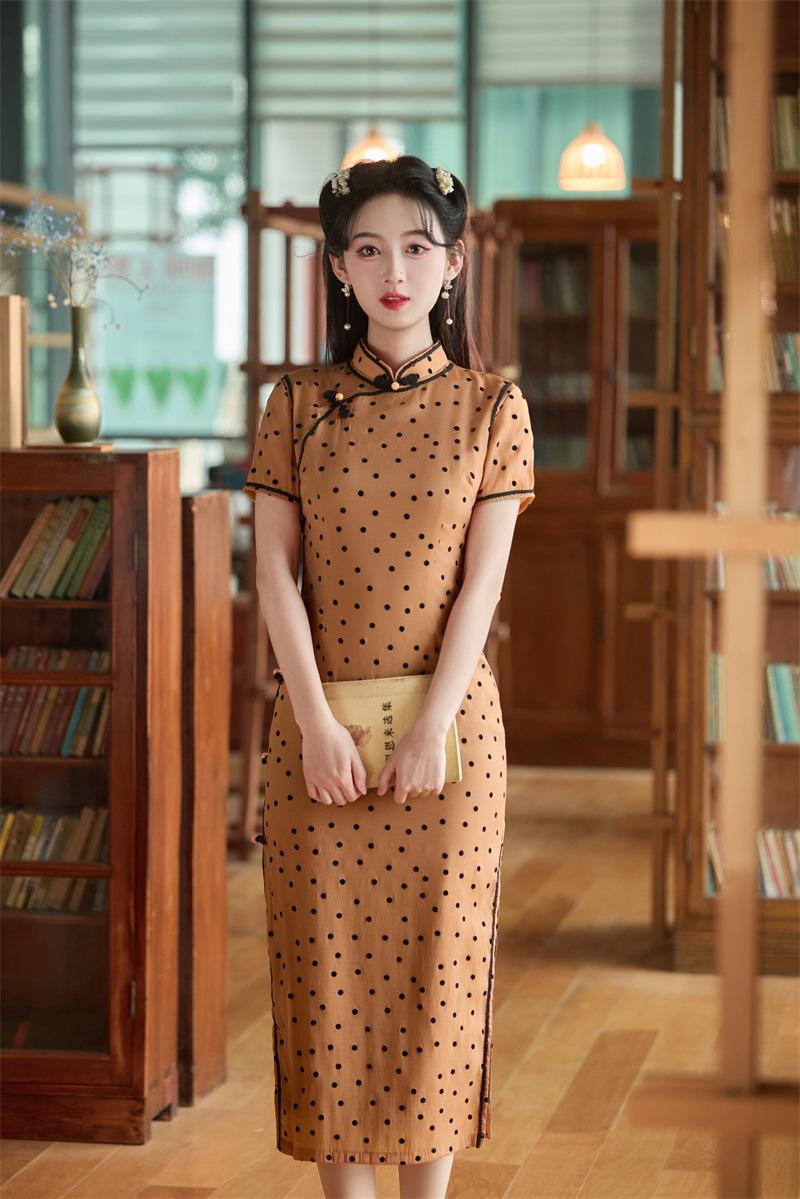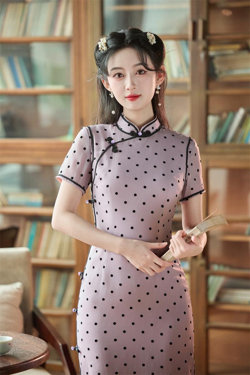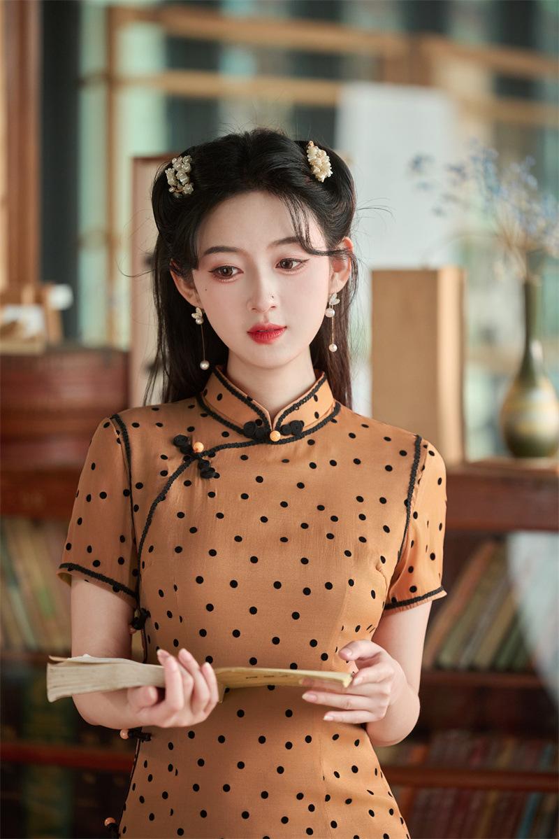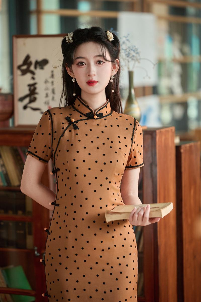 Características:Cheongsam nuevo, tela, textura suave, buena caída, no se encoge, no se decolora, no hace bolitas, ligera elasticidad, más característico de la nación china, bienvenido a comprar,