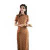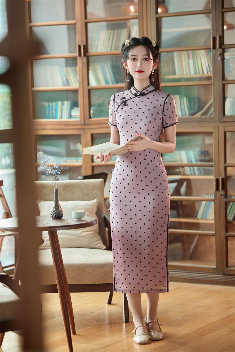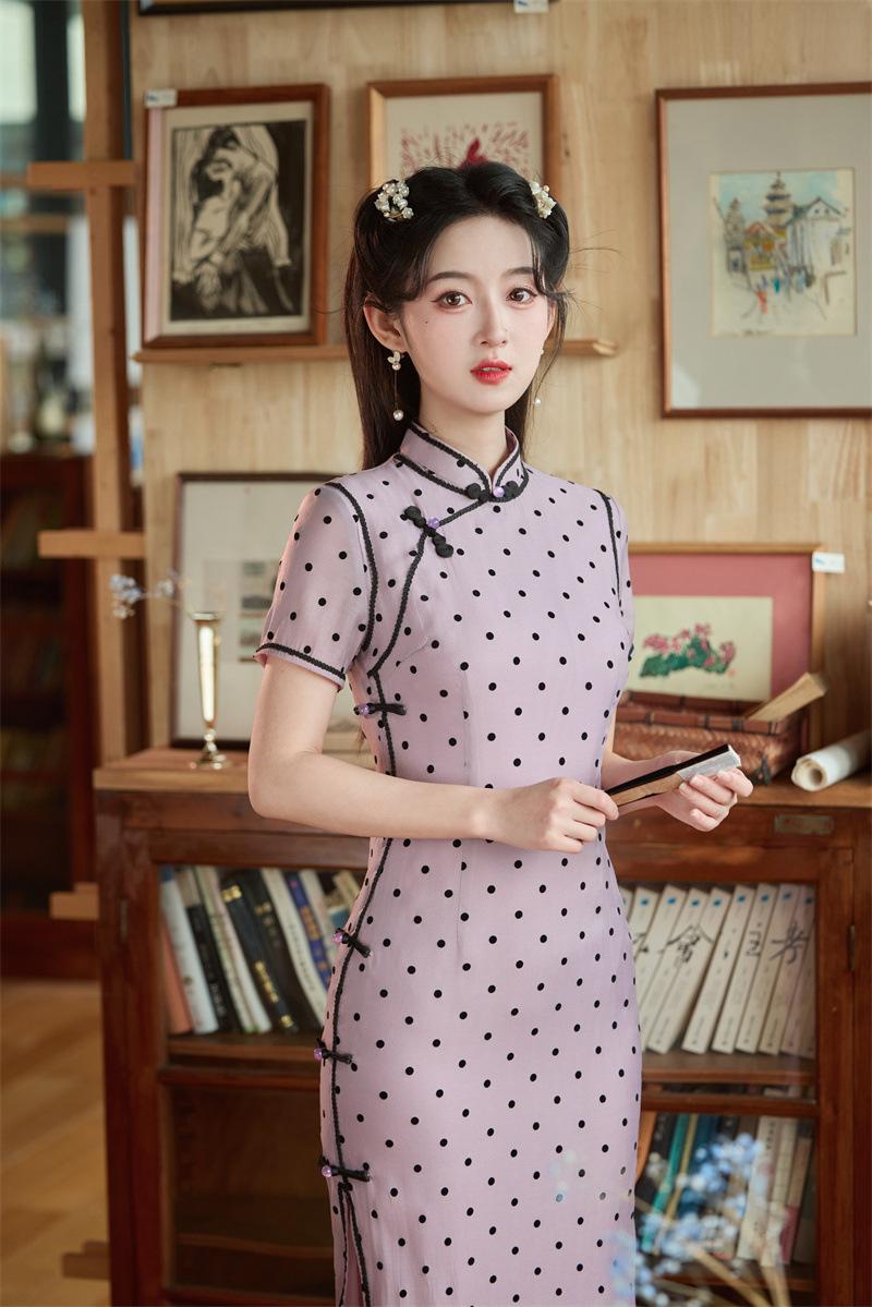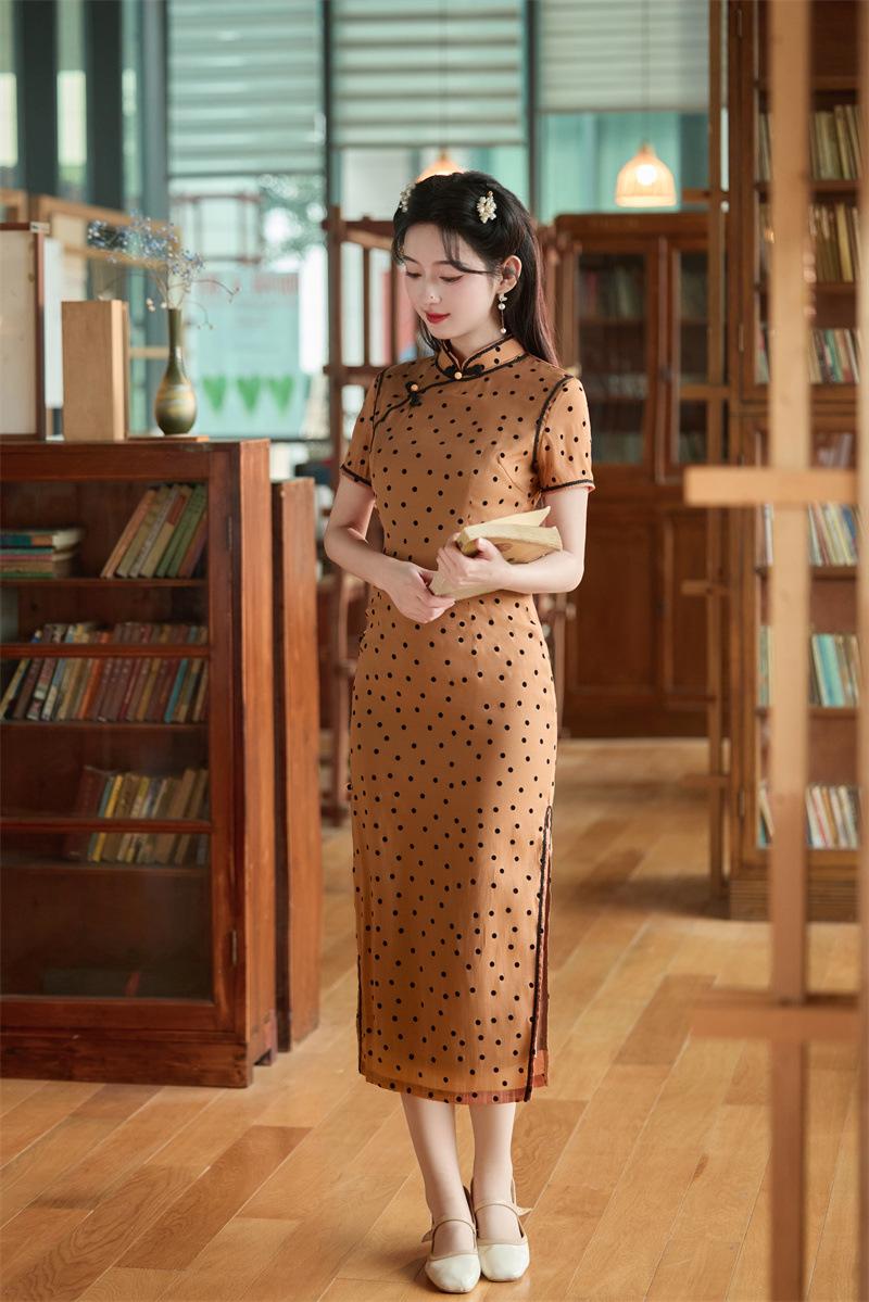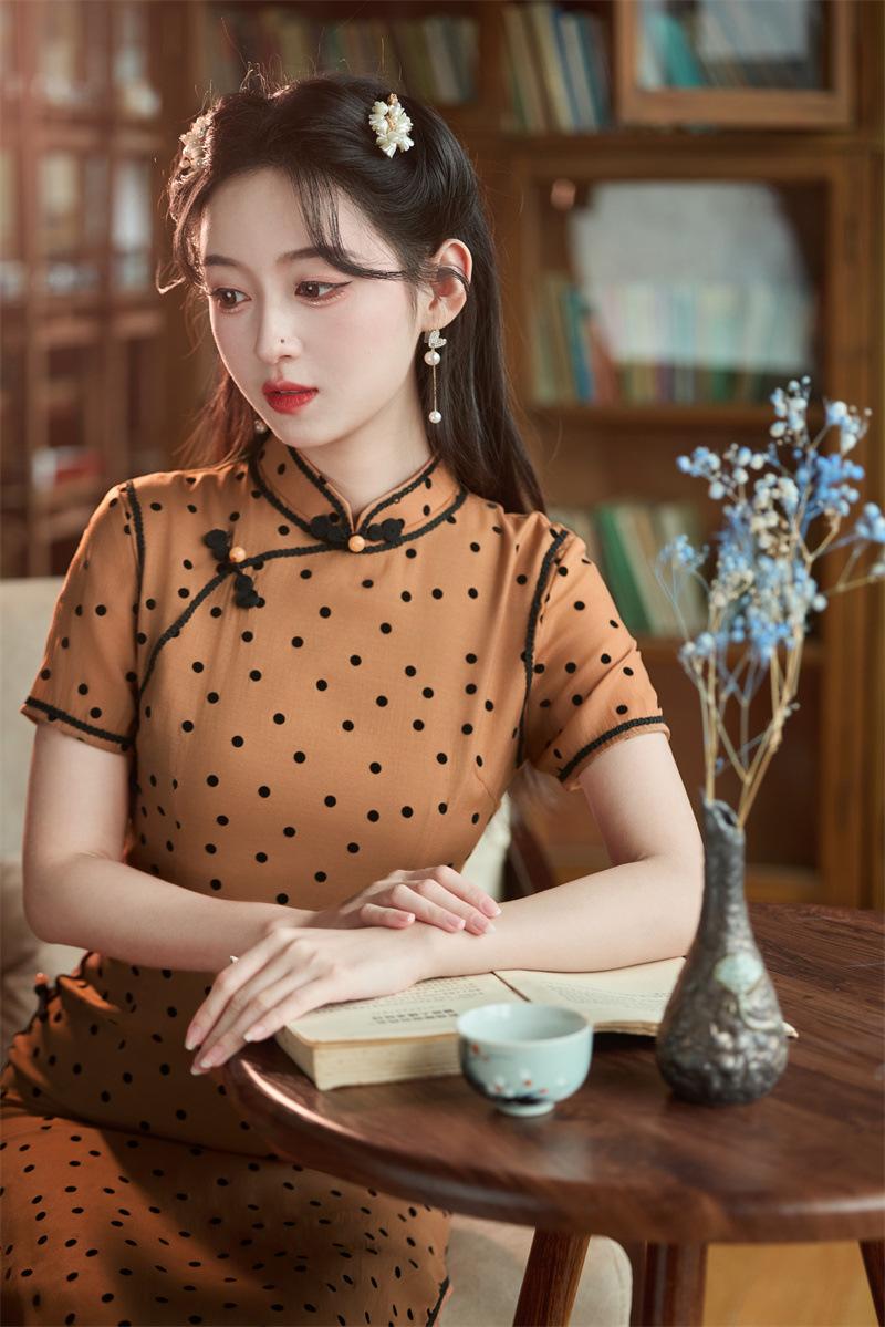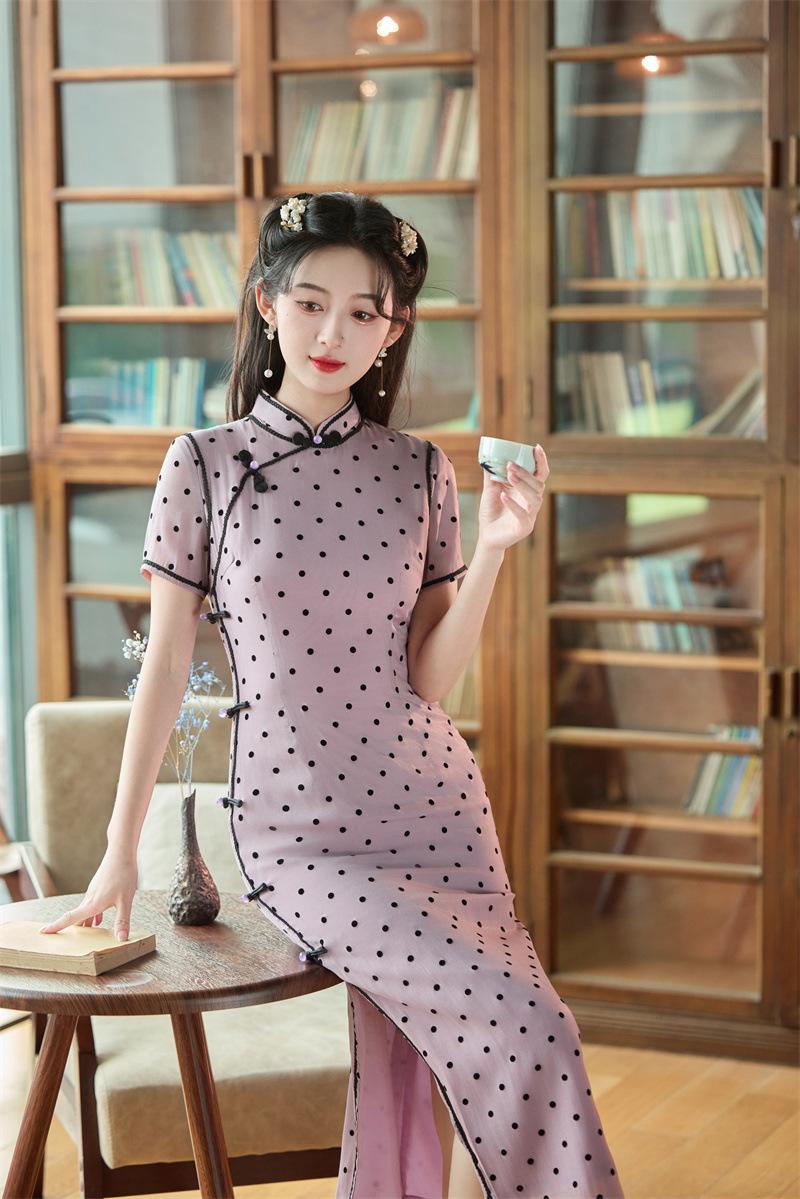 Características:Cheongsam nuevo, tela, textura suave, buena caída, no se encoge, no se decolora, no hace bolitas, ligera elasticidad, más característico de la nación china, bienvenido a comprar,