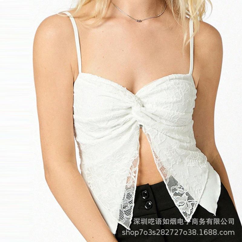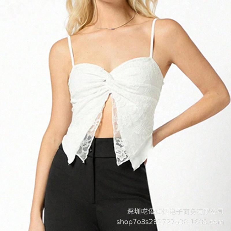 Compra Top corto sin mangas con tirantes cortos, estilo Spice Girls, estilo europeo y americano, con encaje de color liso, ajustado y sexy, para verano, 2025 al por mayor en Joom.pro