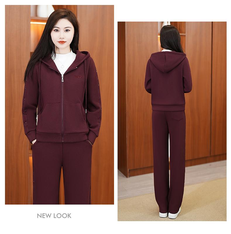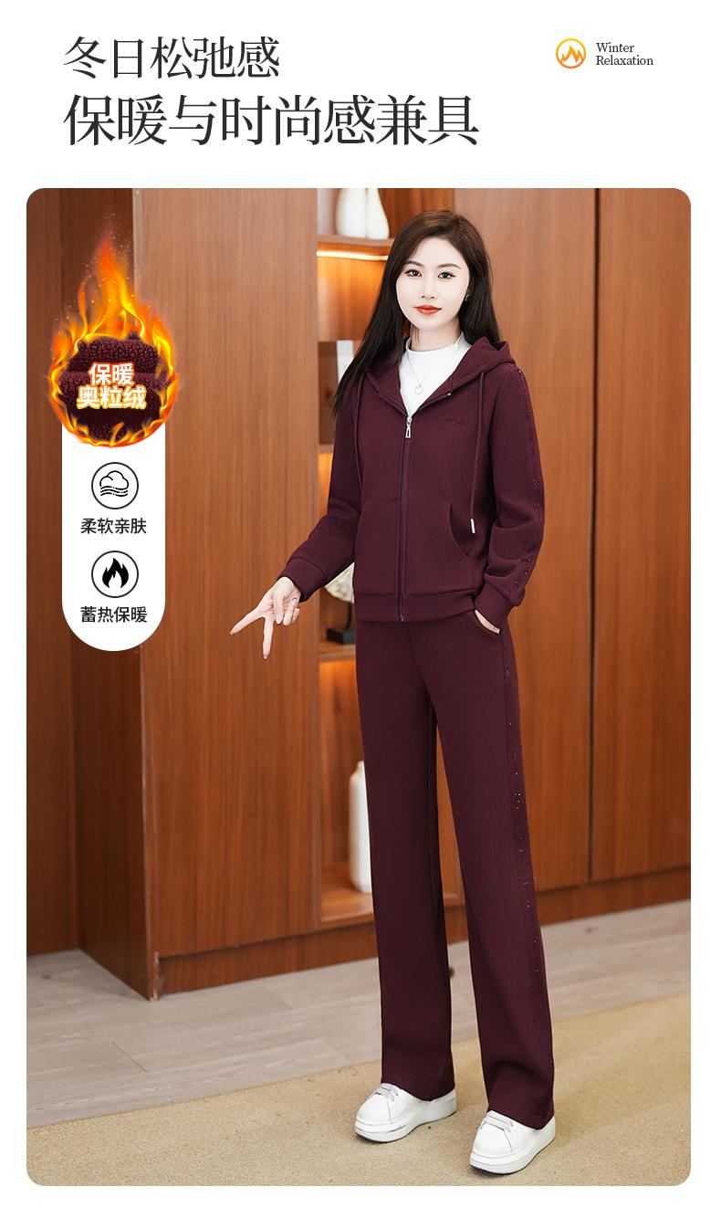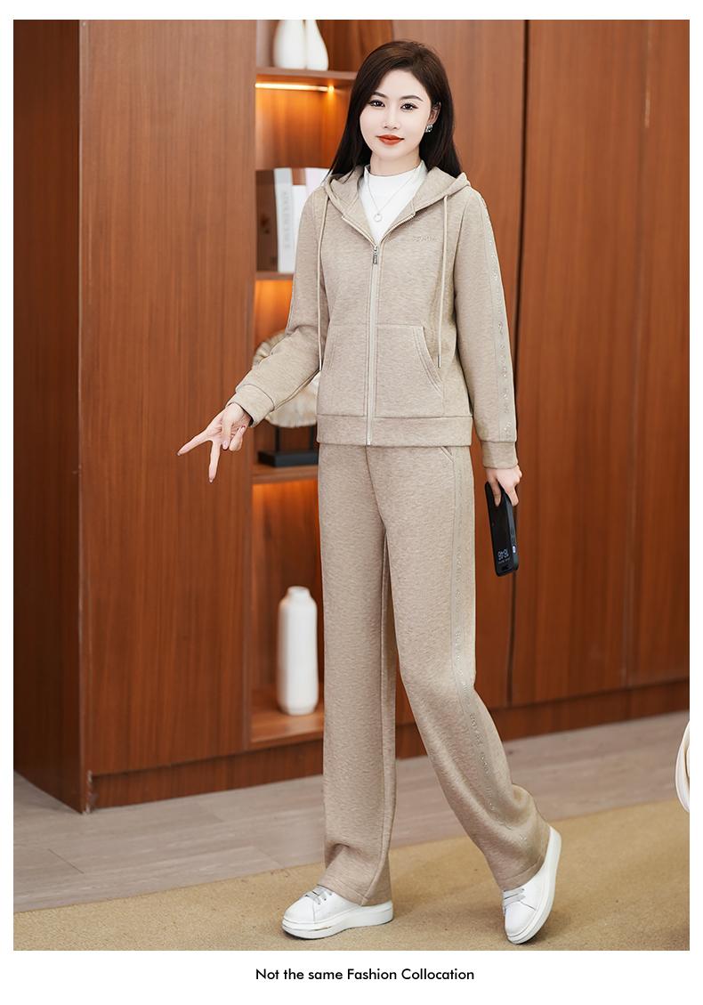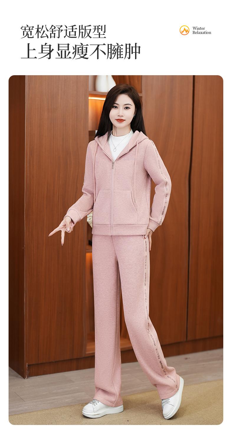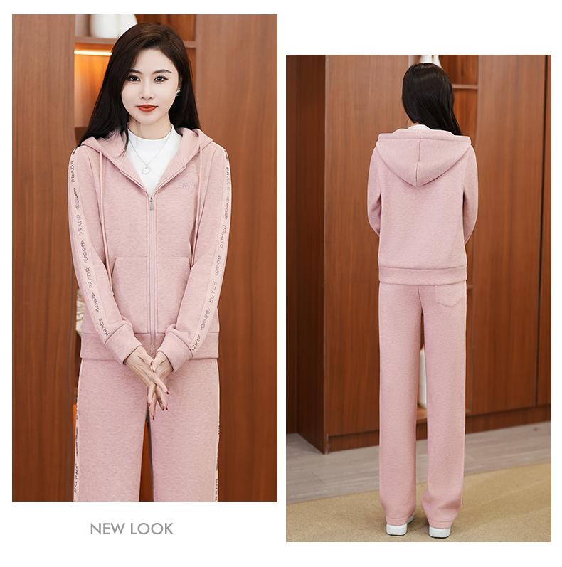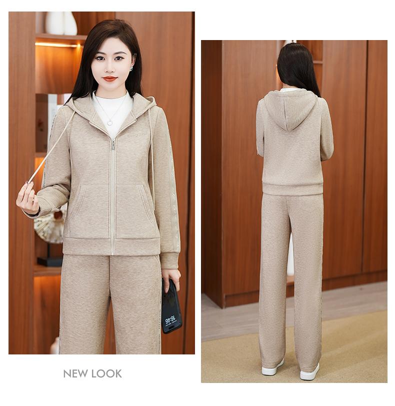 Traje deportivo para mujer, otoño e invierno 2024, nueva moda, suelto, estilo occidental, para mujer, forro polar, grueso, con capucha, conjunto informal de dos piezas