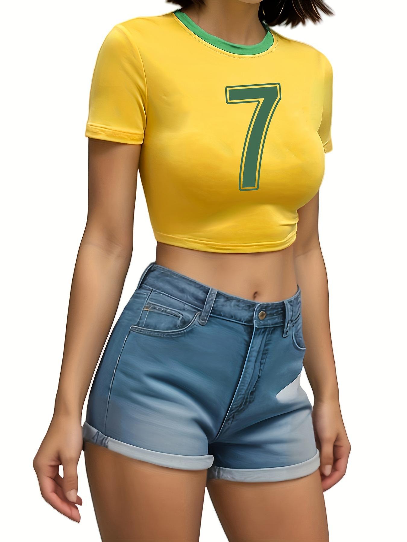 Camiseta corta ajustada con estampado para mujer