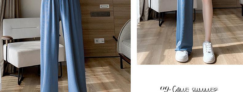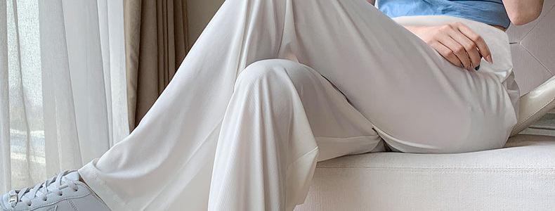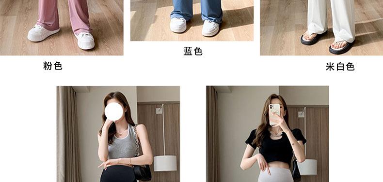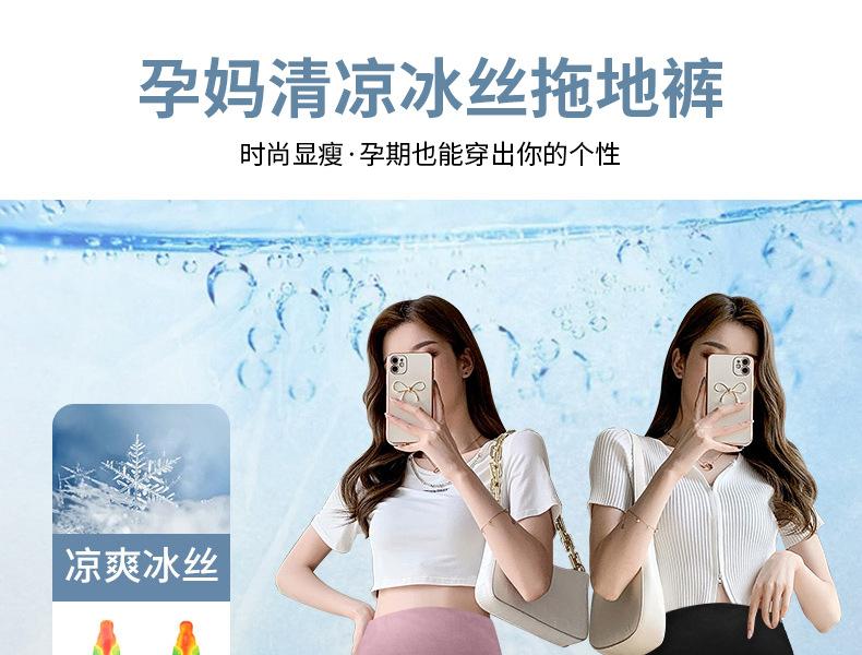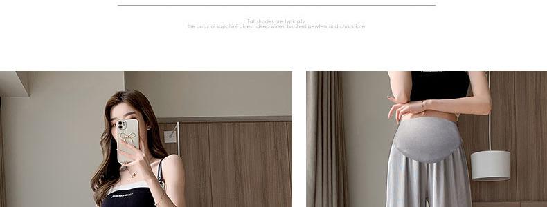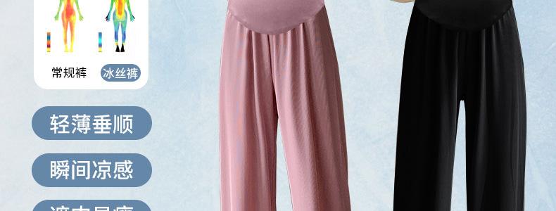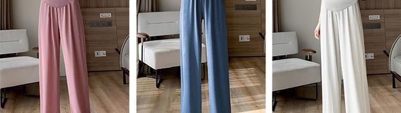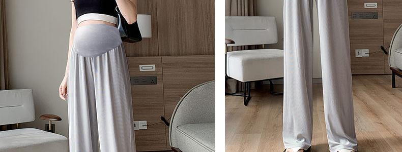 Pantalones anchos de seda helada para embarazadas, verano 2025, finos, de cintura alta, rectos, sueltos, para primavera y otoño, pantalones casuales para embarazadas.