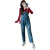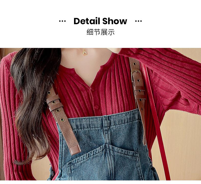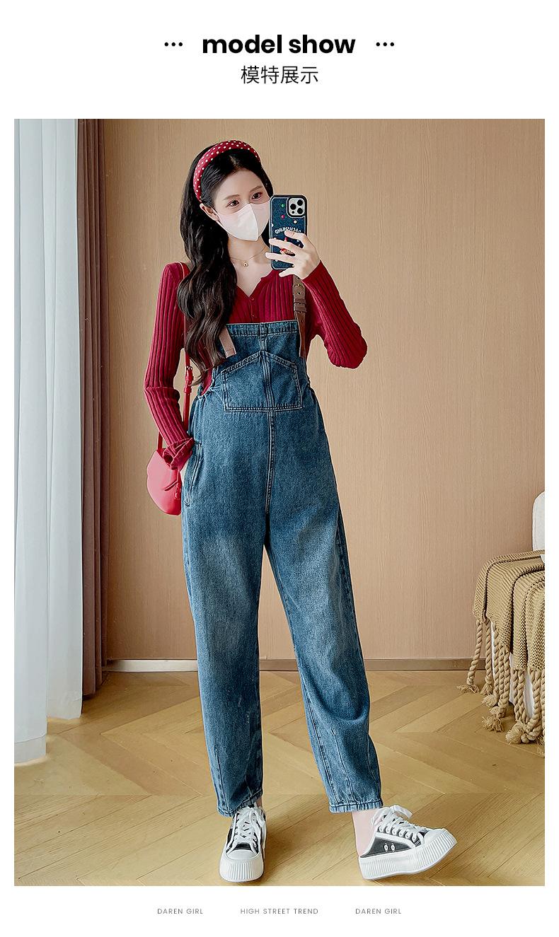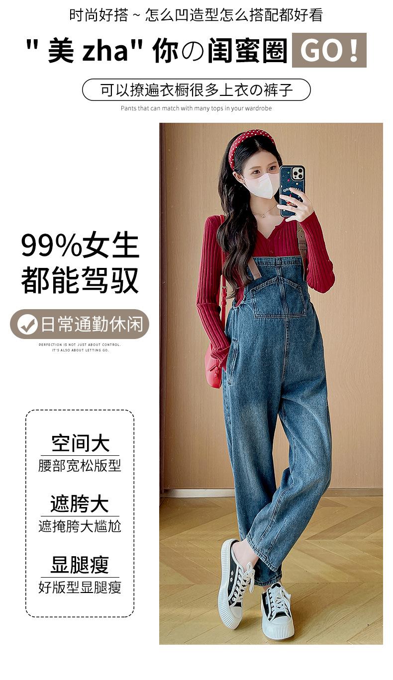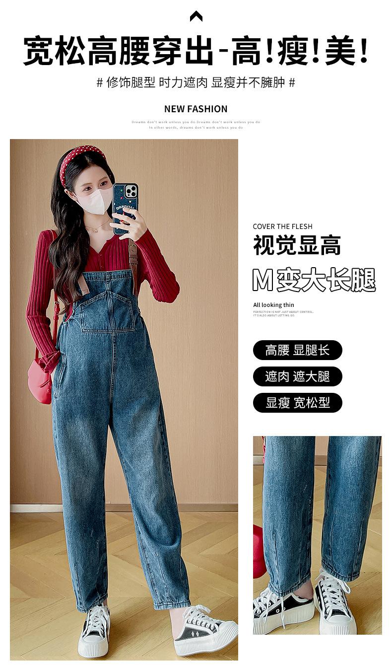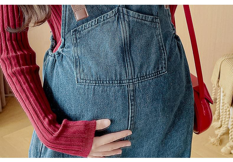 Ropa de maternidad de tiro real, nuevos tirantes casuales vintage, de moda, de pierna ancha, tirantes de mezclilla, traje de suéter rojo
