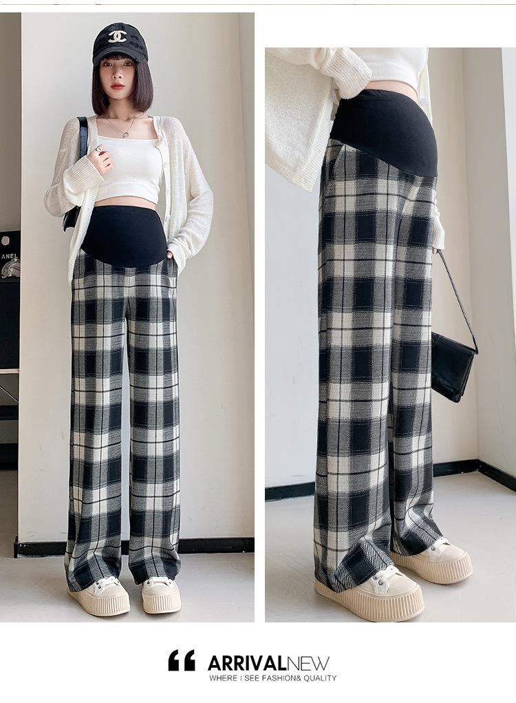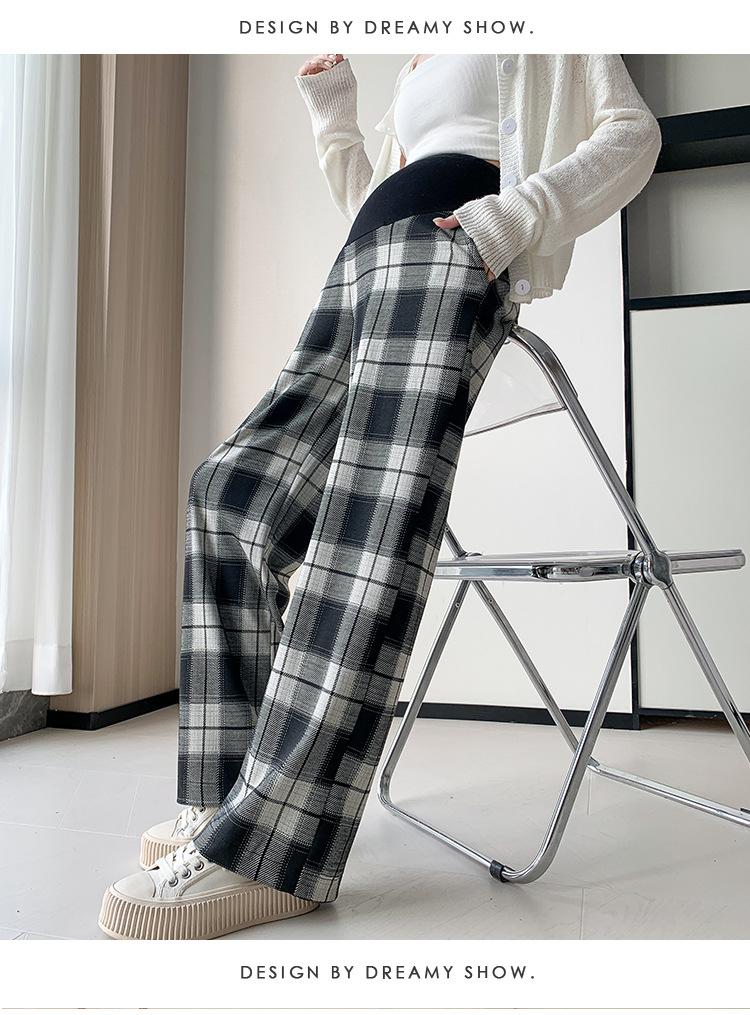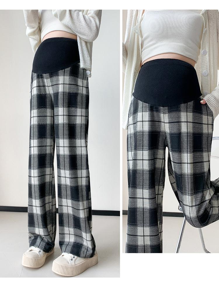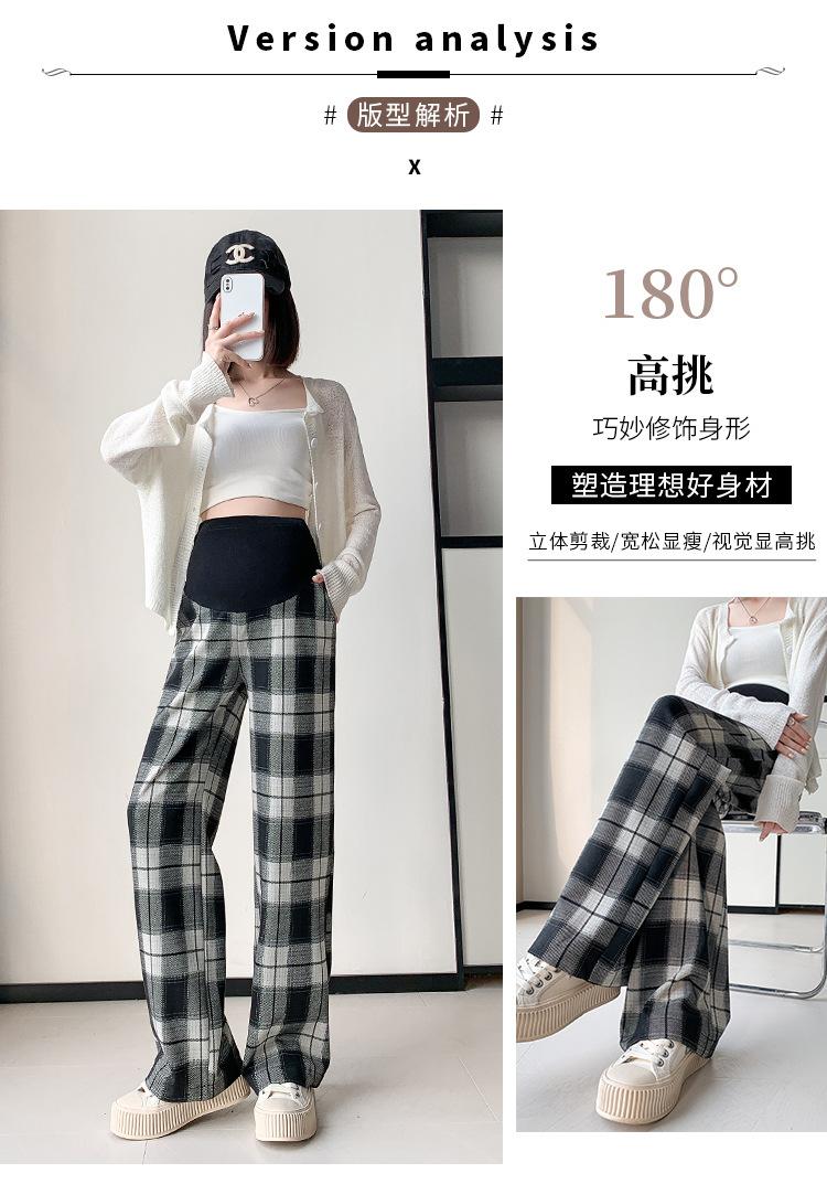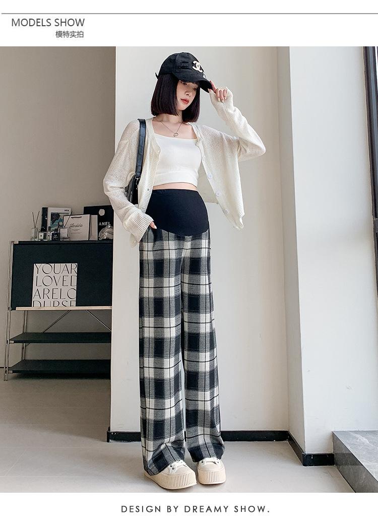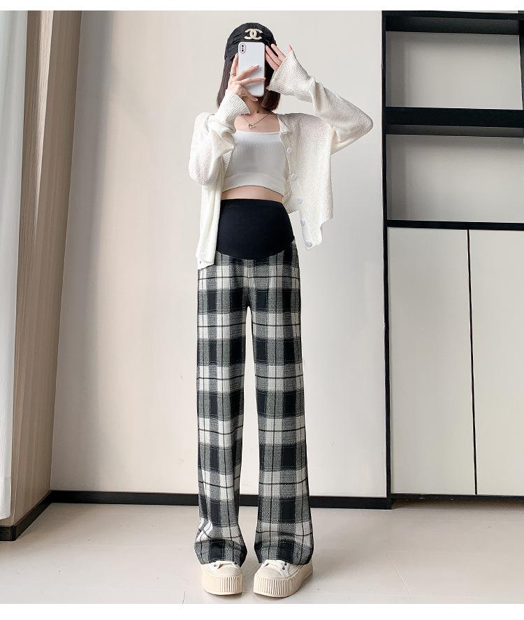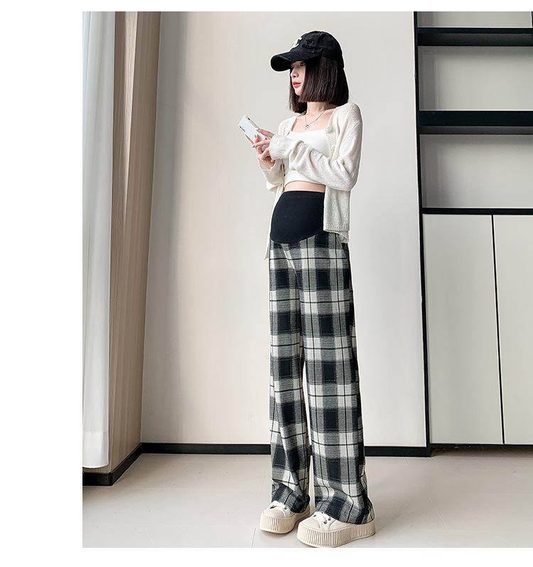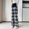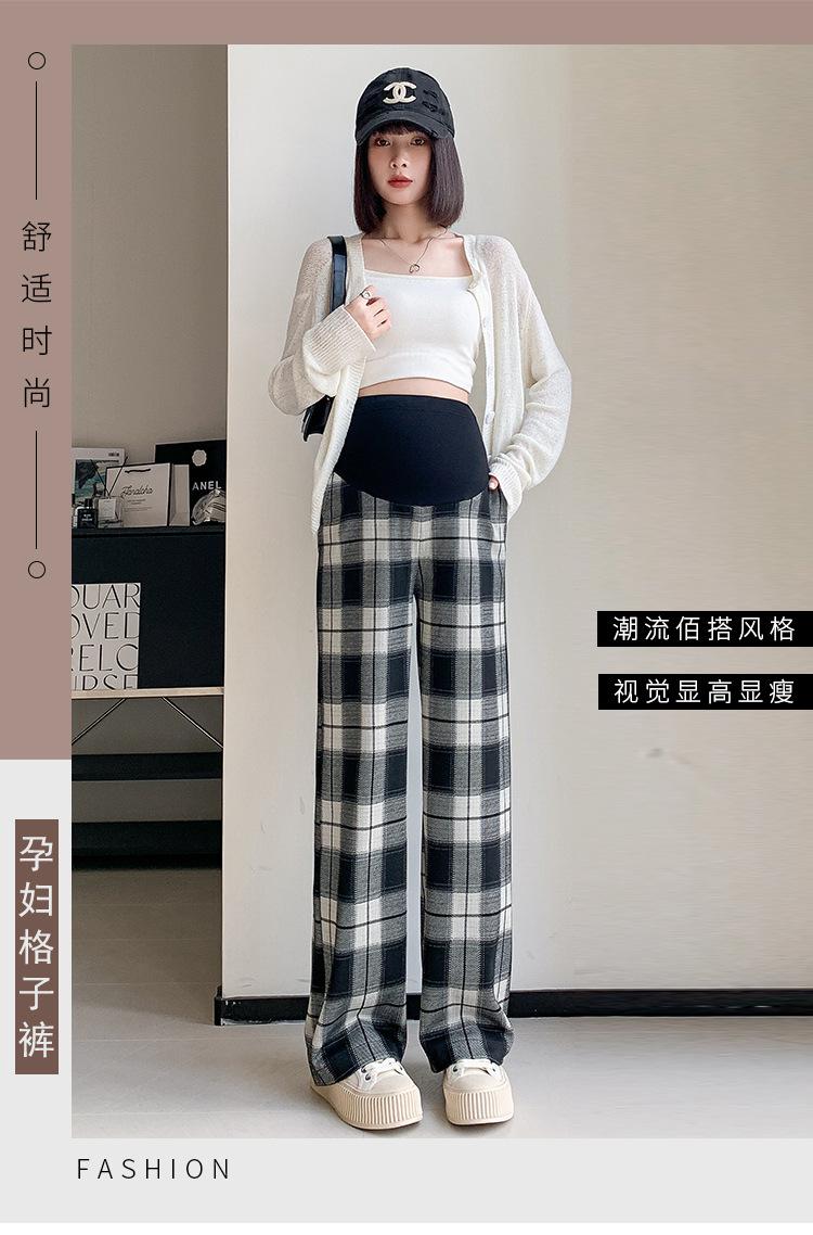Pantalones anchos de punto a cuadros para embarazadas, ropa infantil de primavera y otoño 2024, pantalones finos, rectos y holgados.