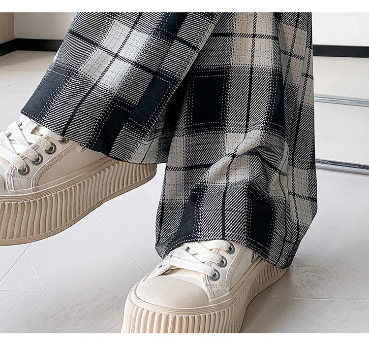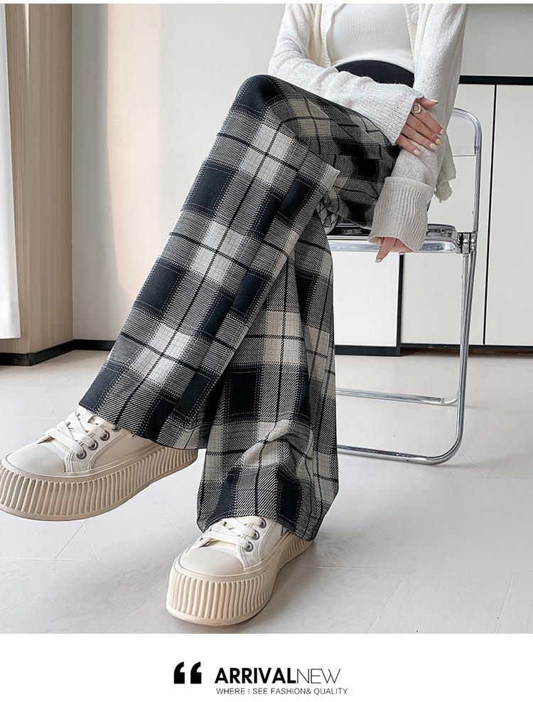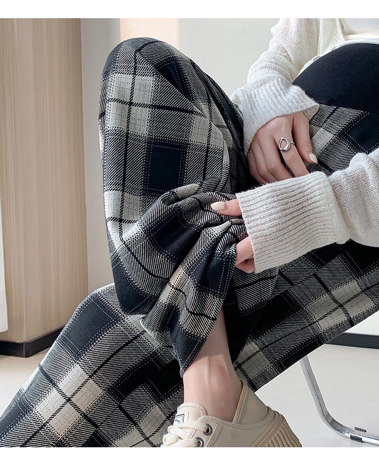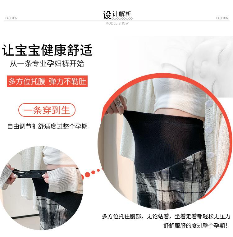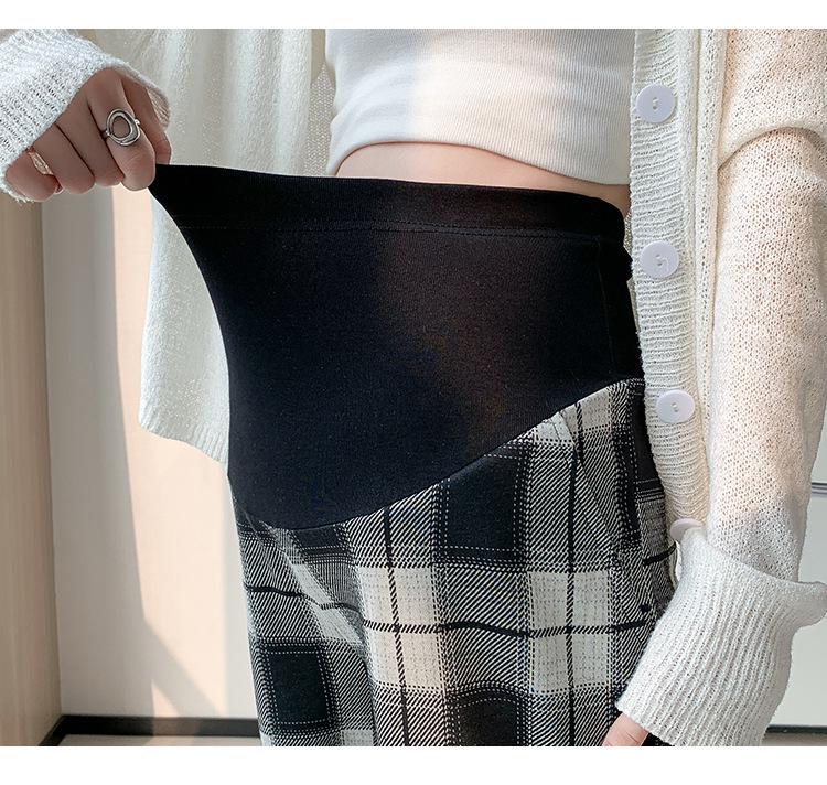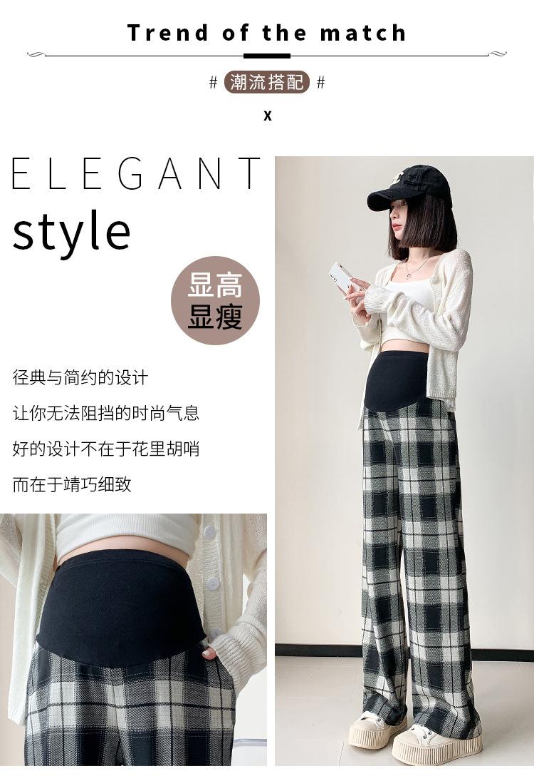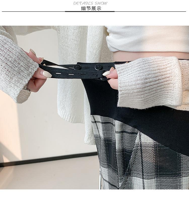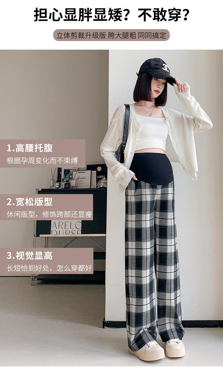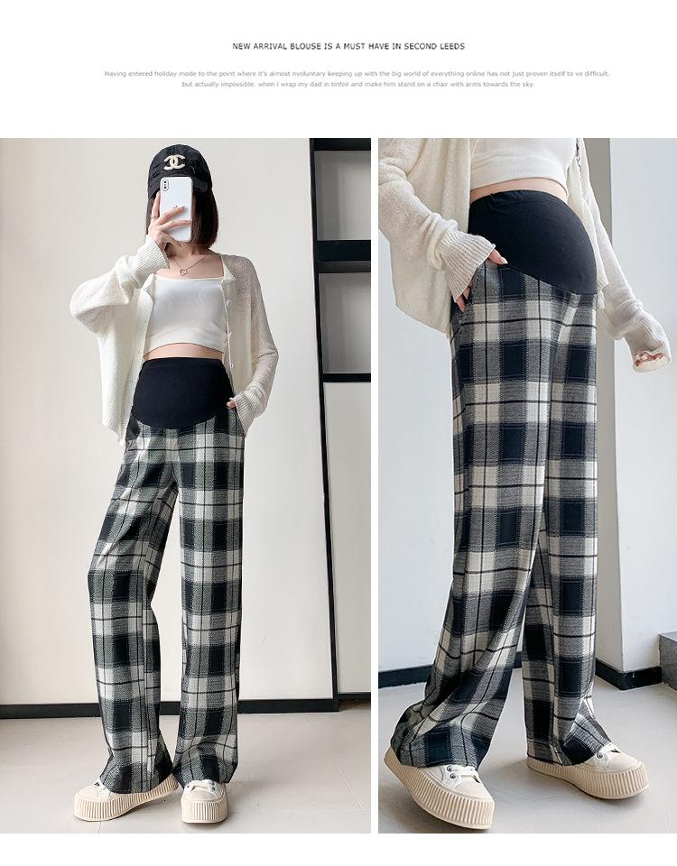 Pantalones anchos de punto a cuadros para embarazadas, ropa infantil de primavera y otoño 2024, pantalones finos, rectos y holgados.