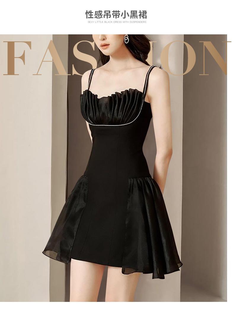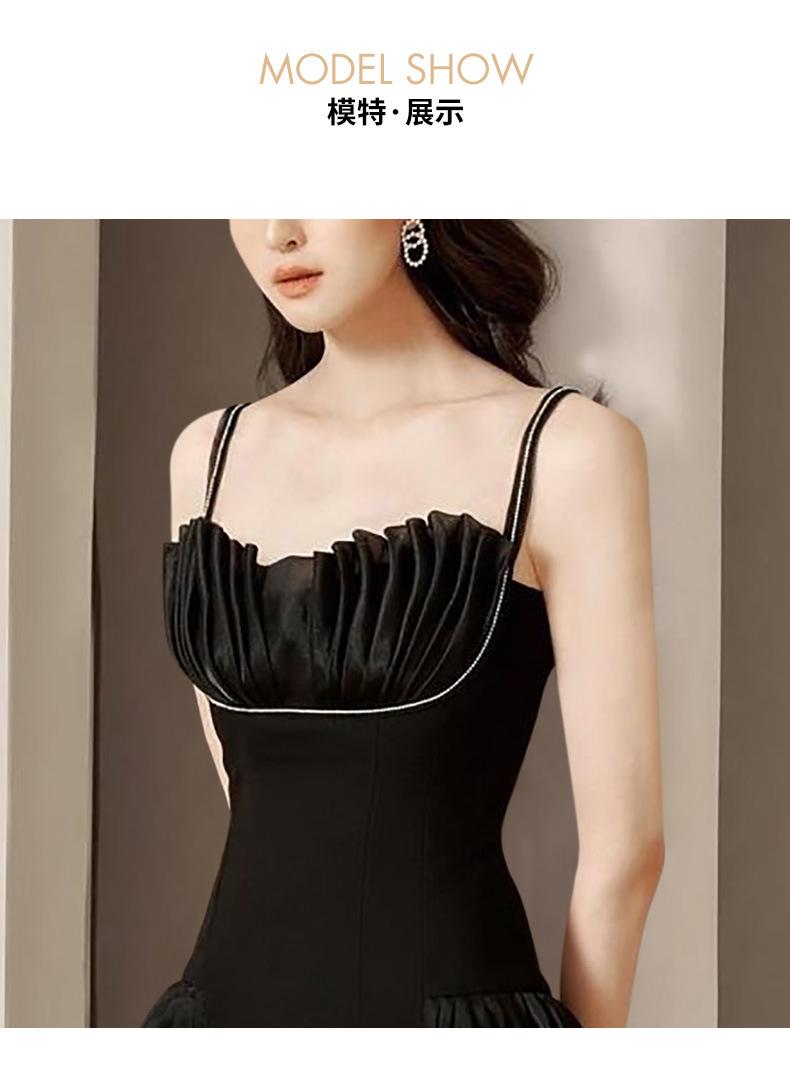 Temperamento Vestido Pequeño 2025 Nuevo Sexy Tirantes Pequeño Negro A-Línea Vestido Fiesta de Cumpleaños Banquete Vestido de Noche