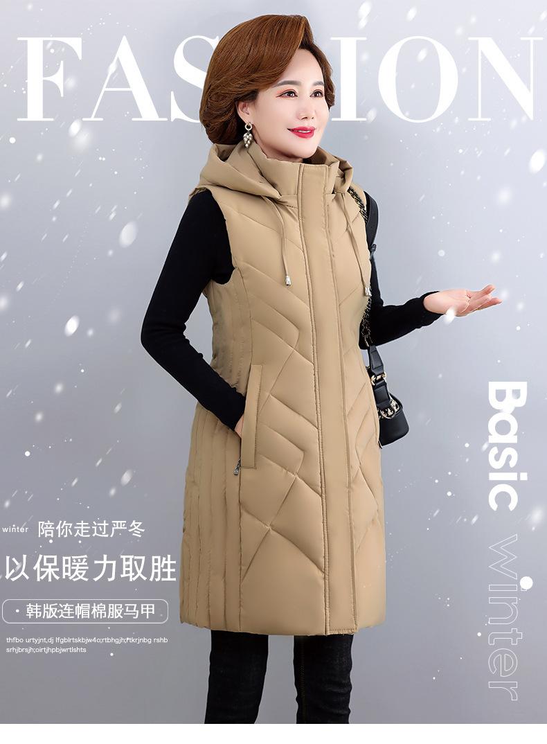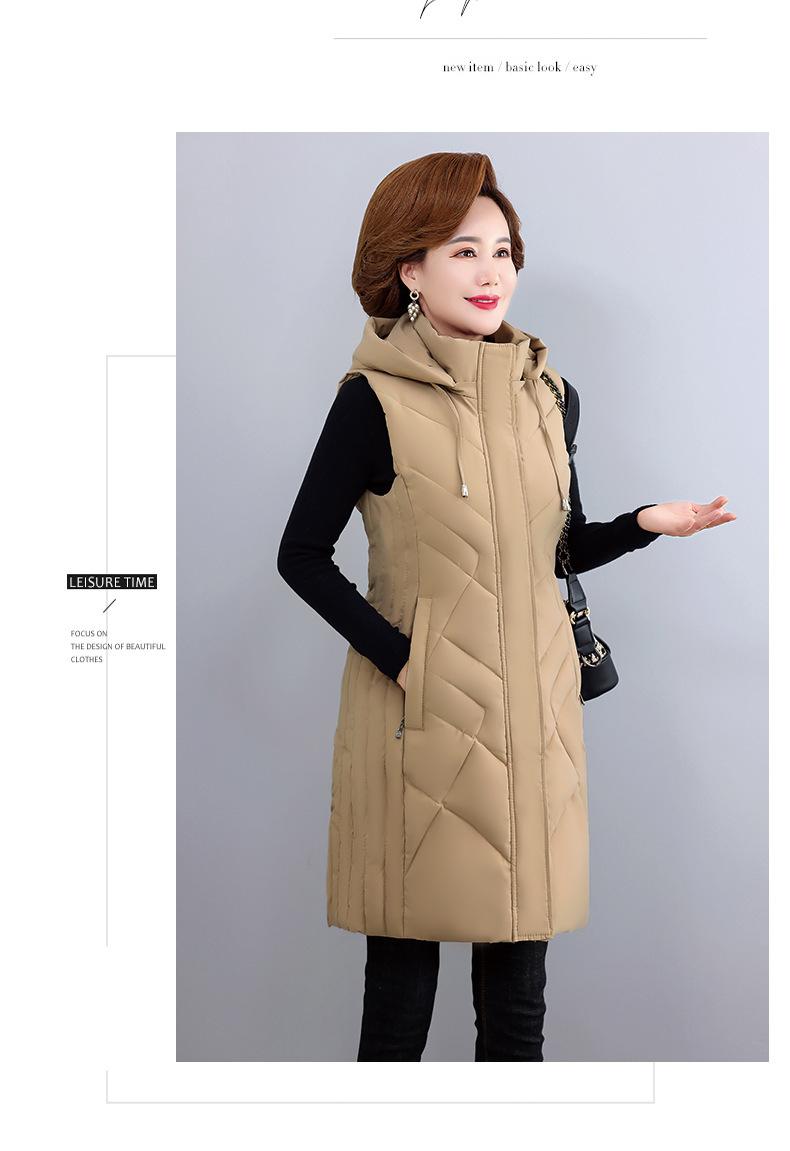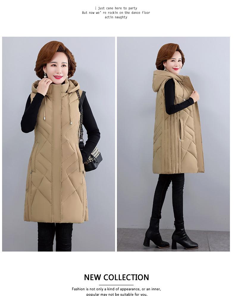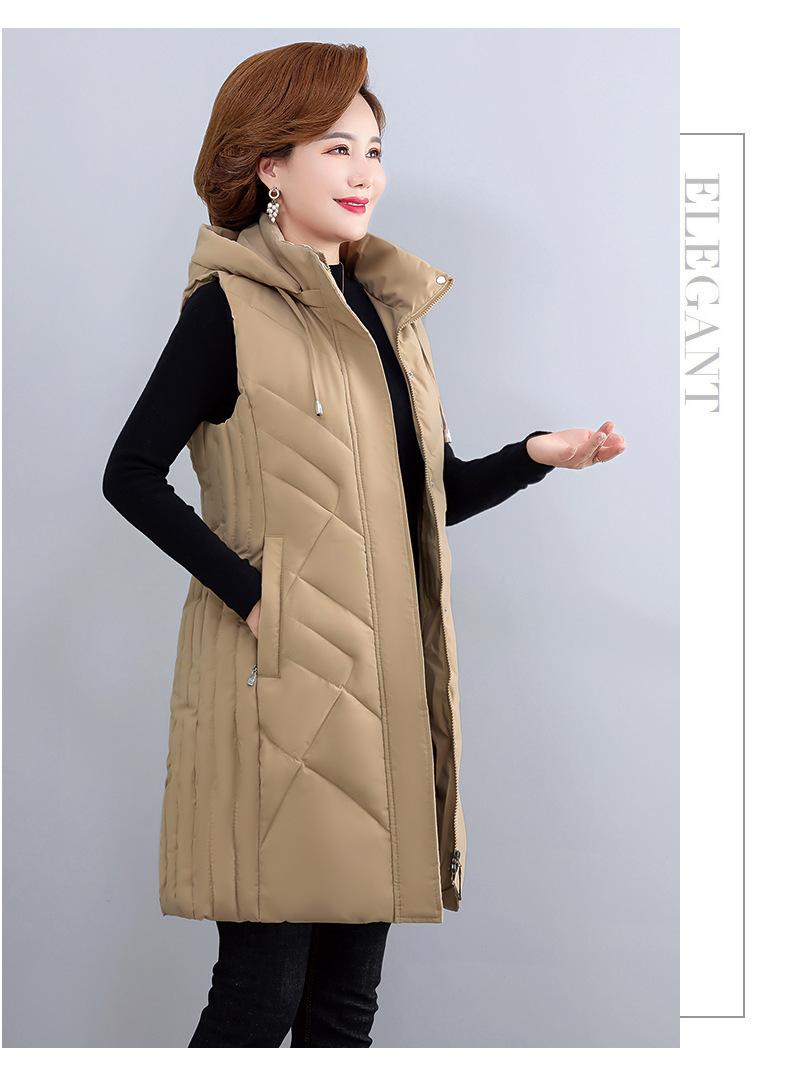 Chaqueta acolchada de algodón para madres de mediana edad y mayores, otoño e invierno de 2023, talla grande, larga, cálida y con capucha, para mujer