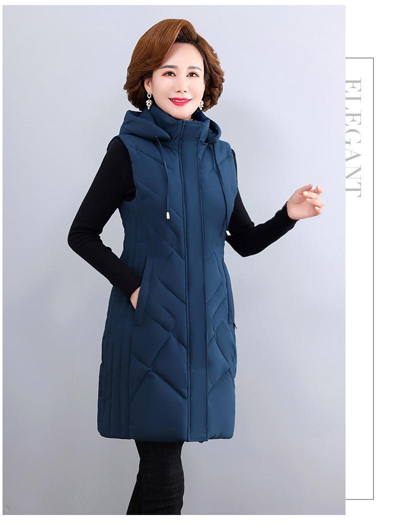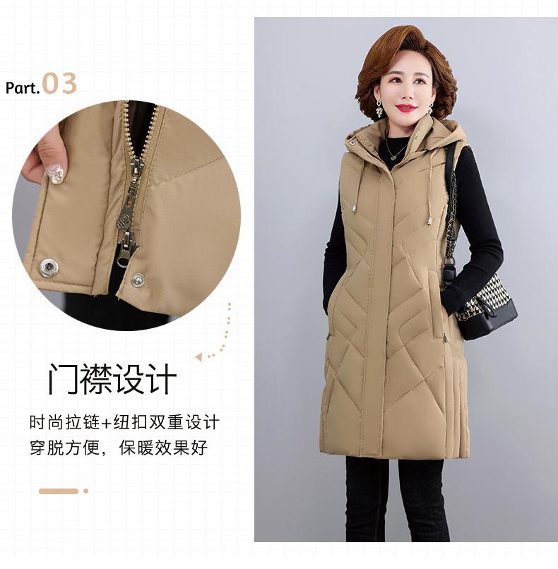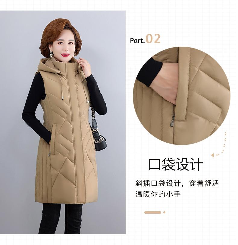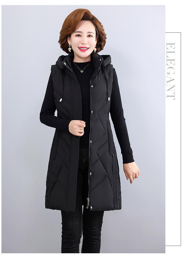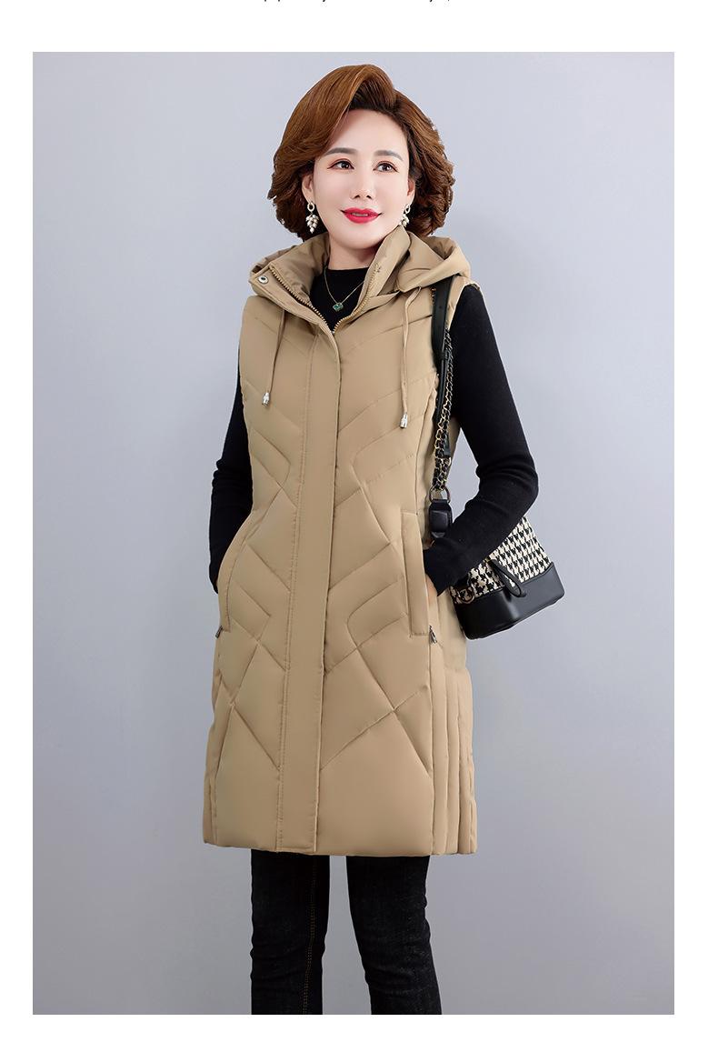 Chaqueta acolchada de algodón para madres de mediana edad y mayores, otoño e invierno de 2023, talla grande, larga, cálida y con capucha, para mujer
