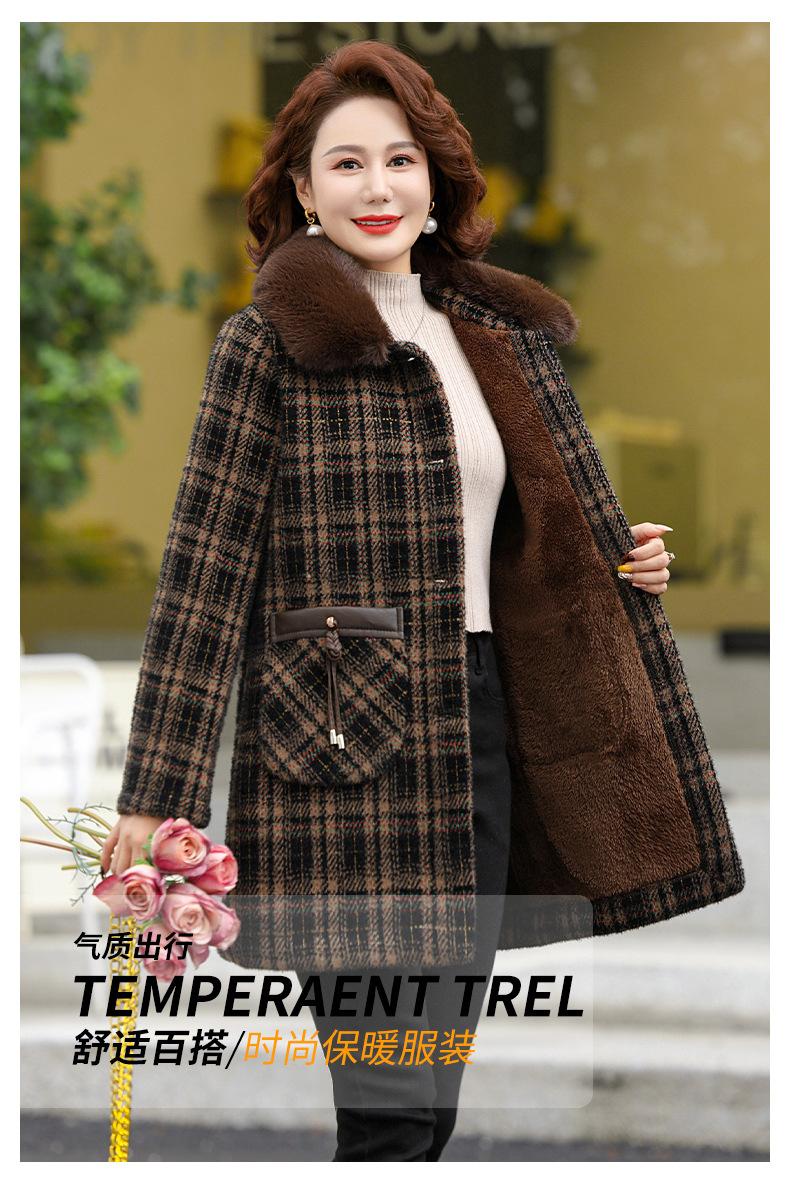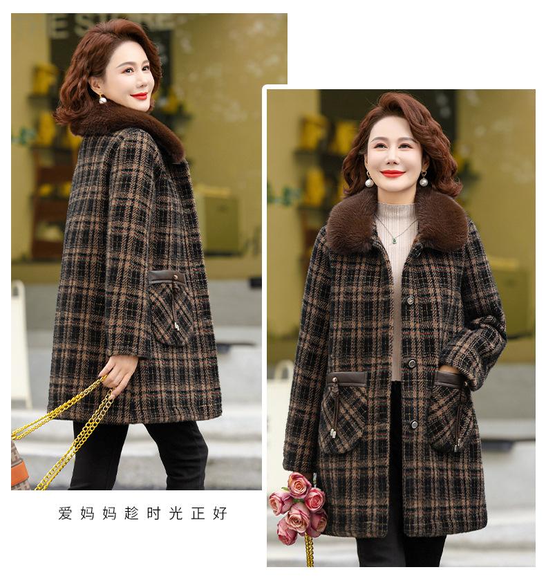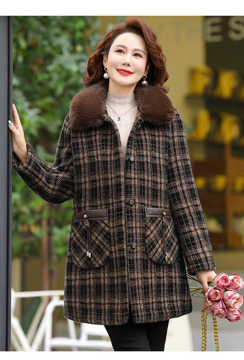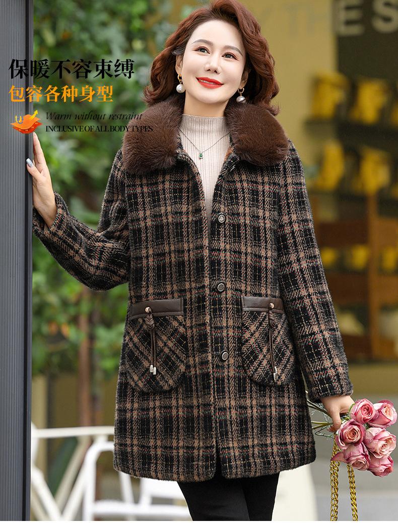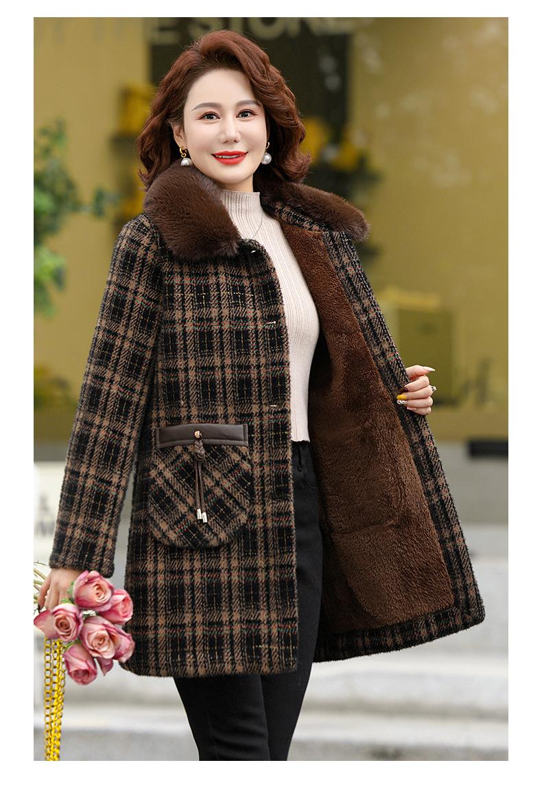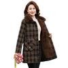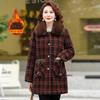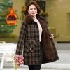 Abrigo de lana estilo occidental para madres, abrigo de invierno con forro polar, nuevo abrigo a cuadros de longitud media para mujeres de mediana edad y mayores, para otoño e invierno.