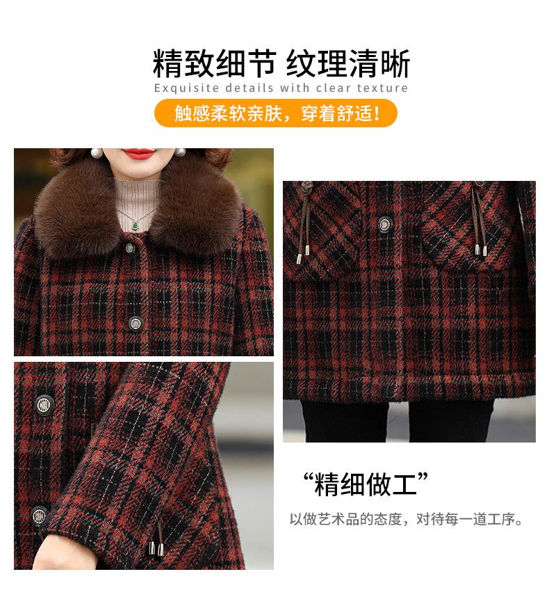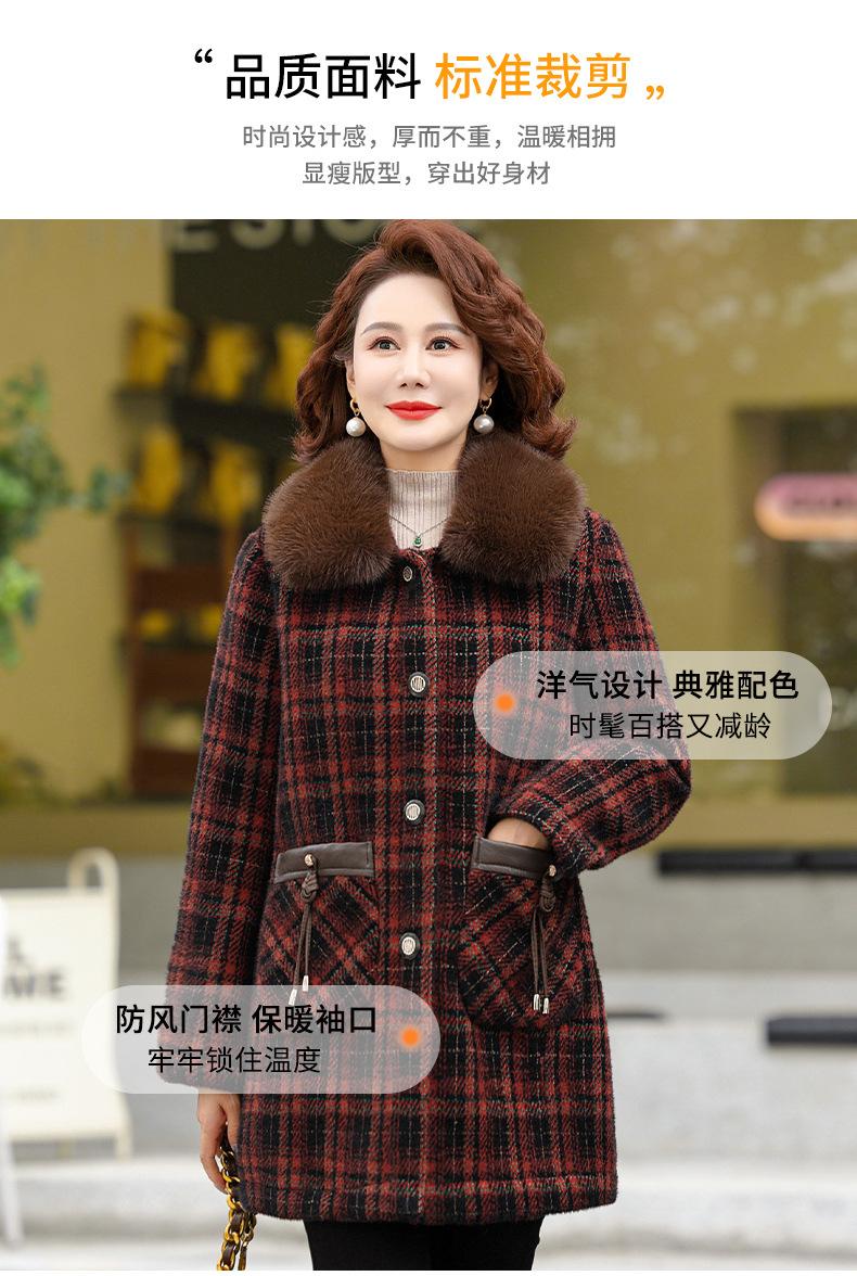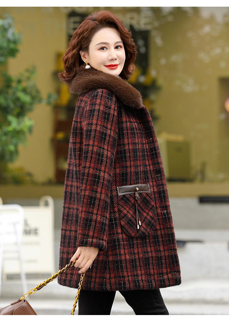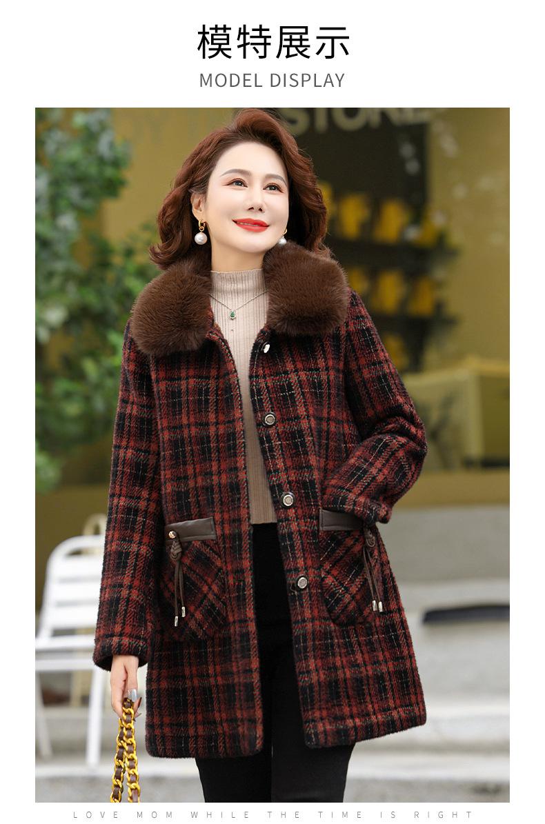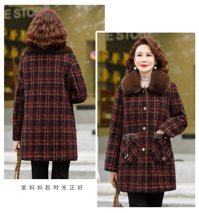 Abrigo de lana estilo occidental para madres, abrigo de invierno con forro polar, nuevo abrigo a cuadros de longitud media para mujeres de mediana edad y mayores, para otoño e invierno.