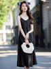 Vestido de tirantes verde oscuro para mujer, de verano, de alta gama, de satén acético, de longitud media, elegante, con falda interior fina