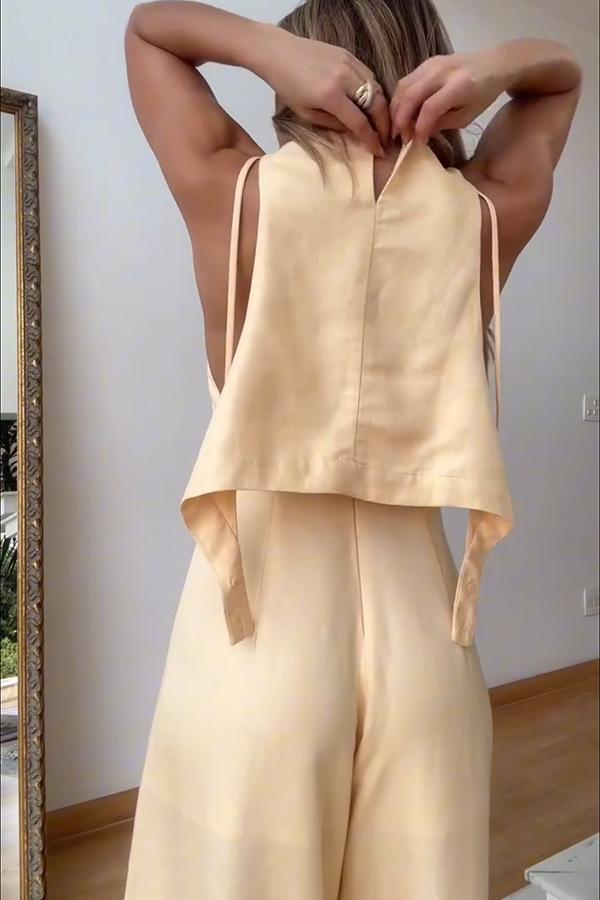 Europa y Estados Unidos, estación independiente de comercio exterior transfronterizo Amazon 2025, nuevo verano, sexy, color sólido, pantalones sueltos, mono para mujer