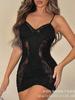 2025 Nuevo Europeo y Americano Transfronterizo Hottie Lujurioso Puro Color Puro Ajustado Encaje Tirantes Vestido de Verano Falda Corta para Mujer