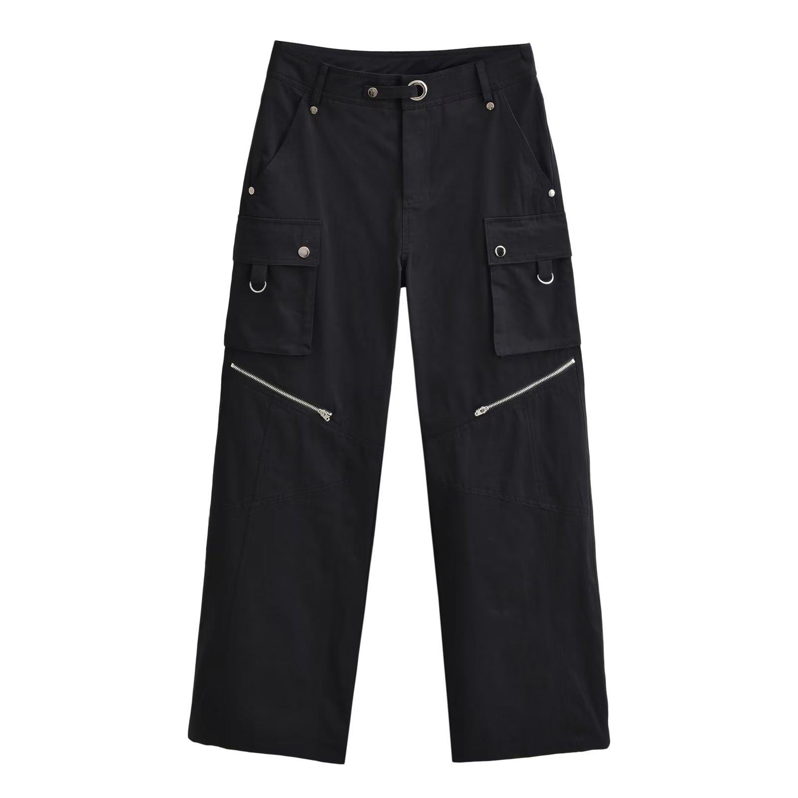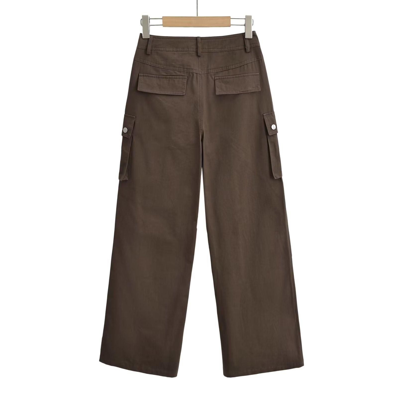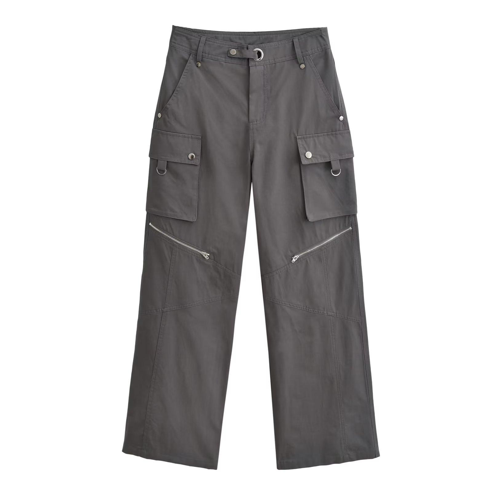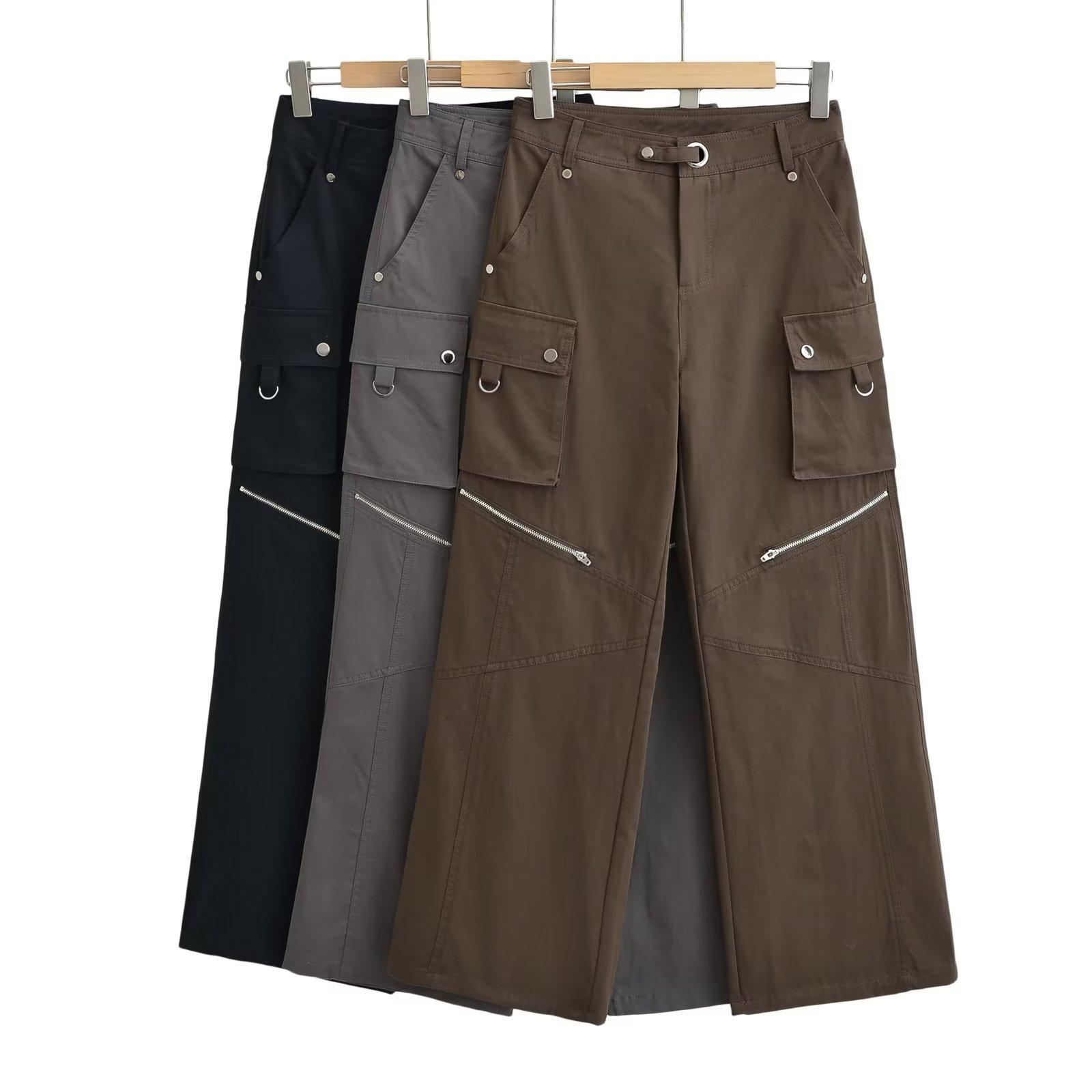 Pantalones cargo con remaches, cintura alta, rectos, pierna ancha y diseño europeo retro para mujer, estilo deportivo informal, otoño 2023