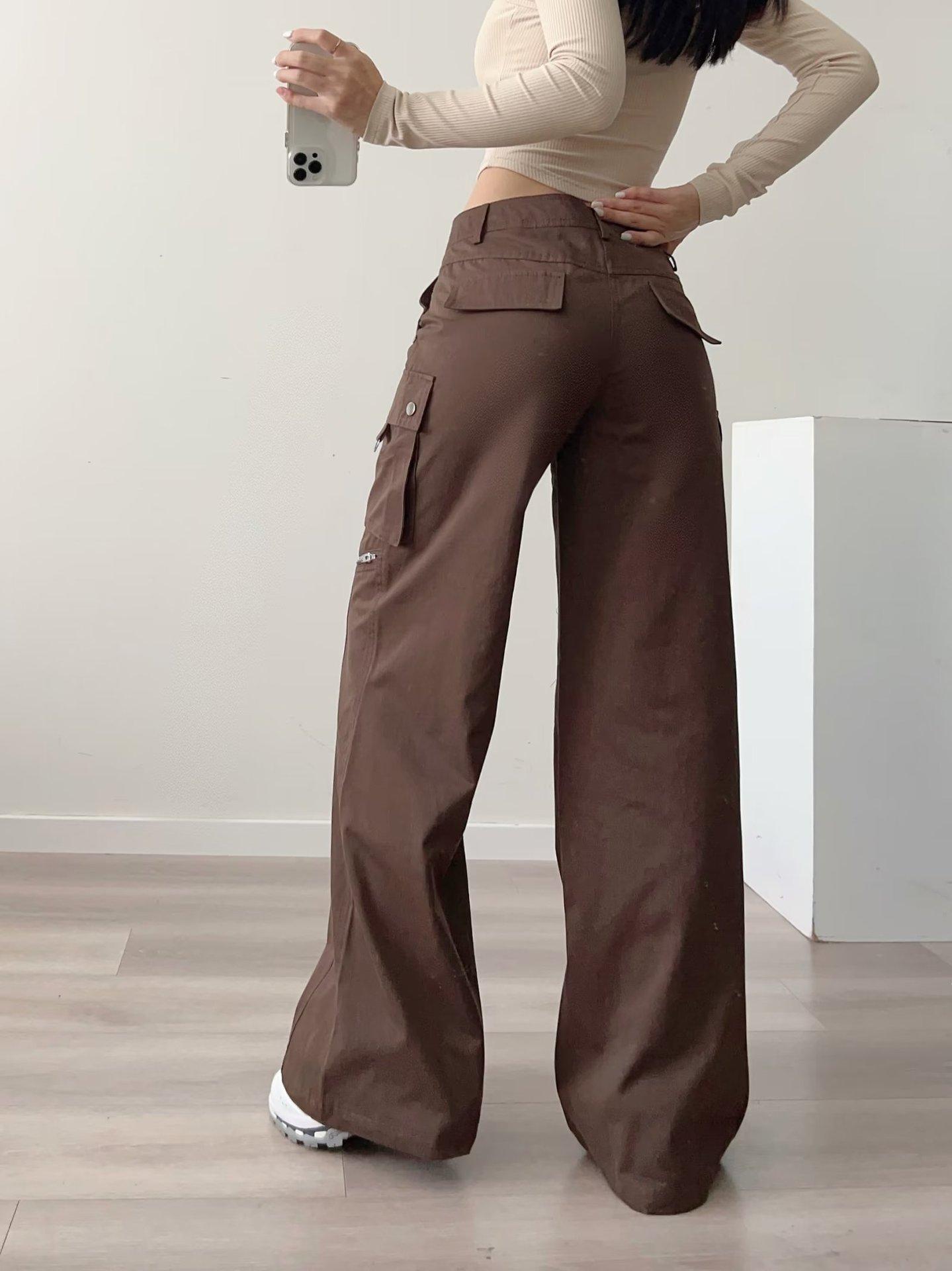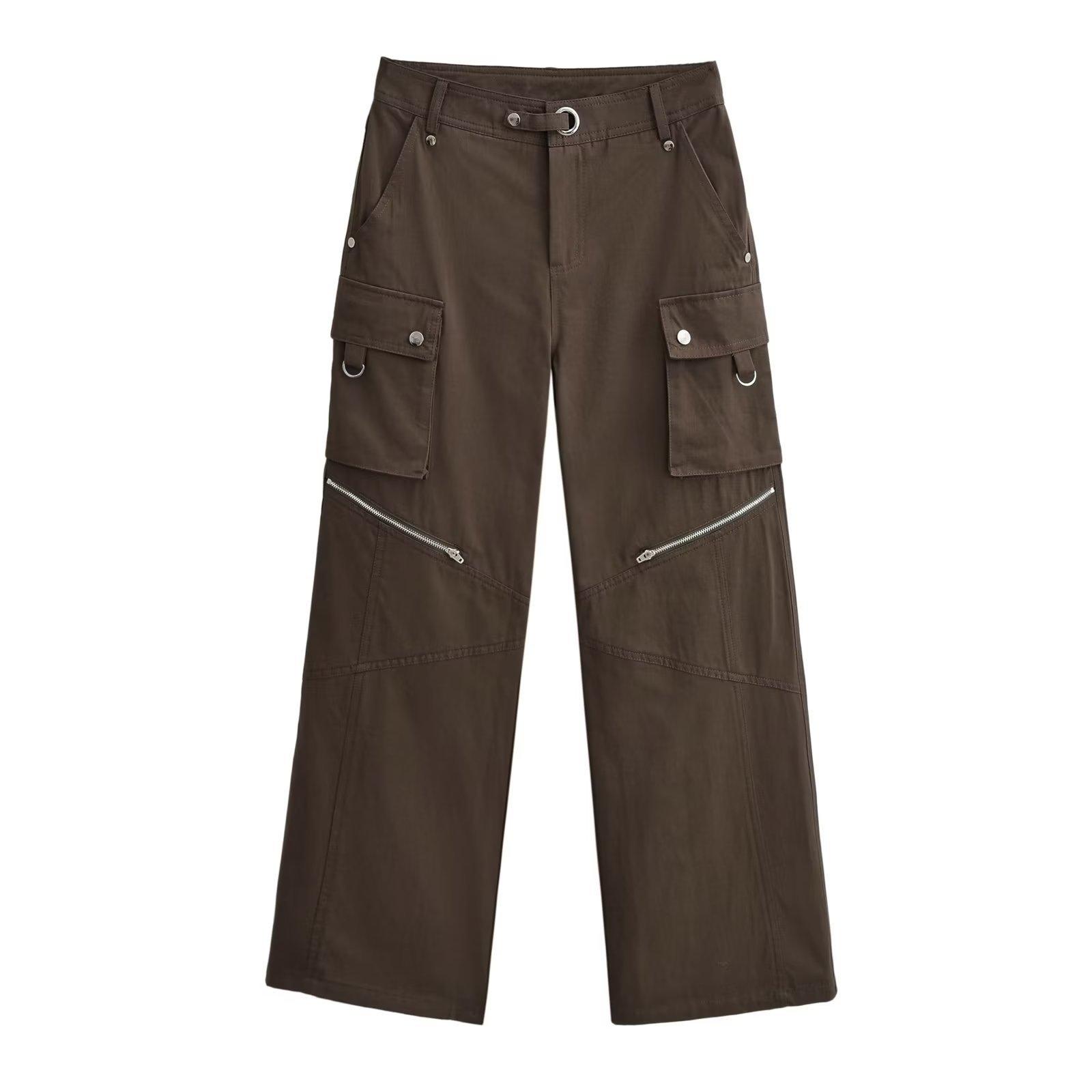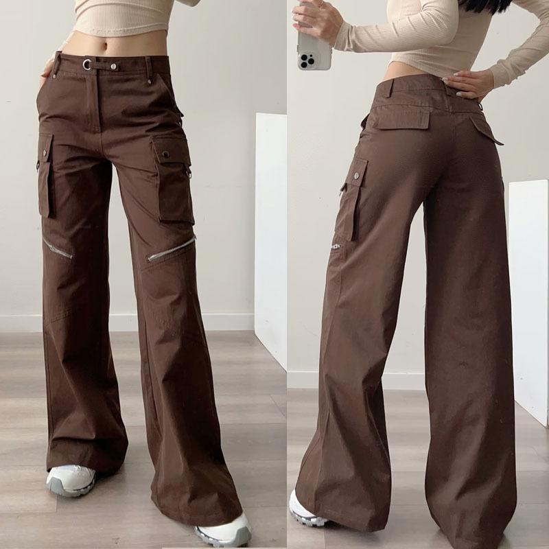 Pantalones cargo con remaches, cintura alta, rectos, pierna ancha y diseño europeo retro para mujer, estilo deportivo informal, otoño 2023