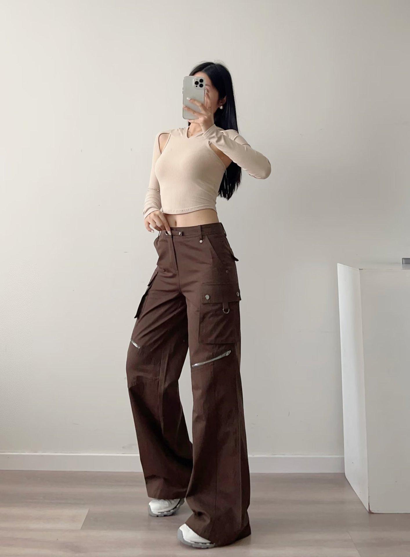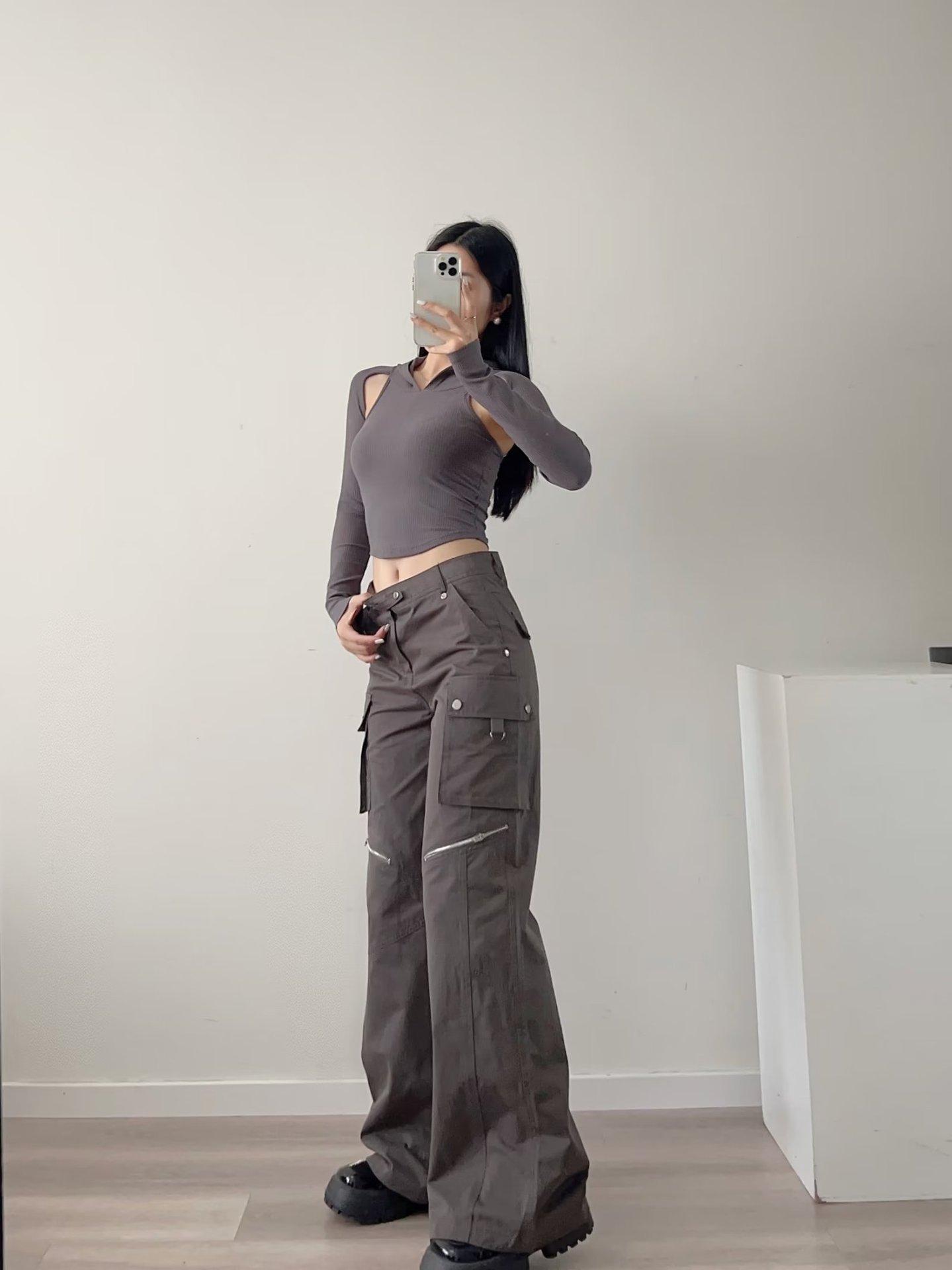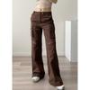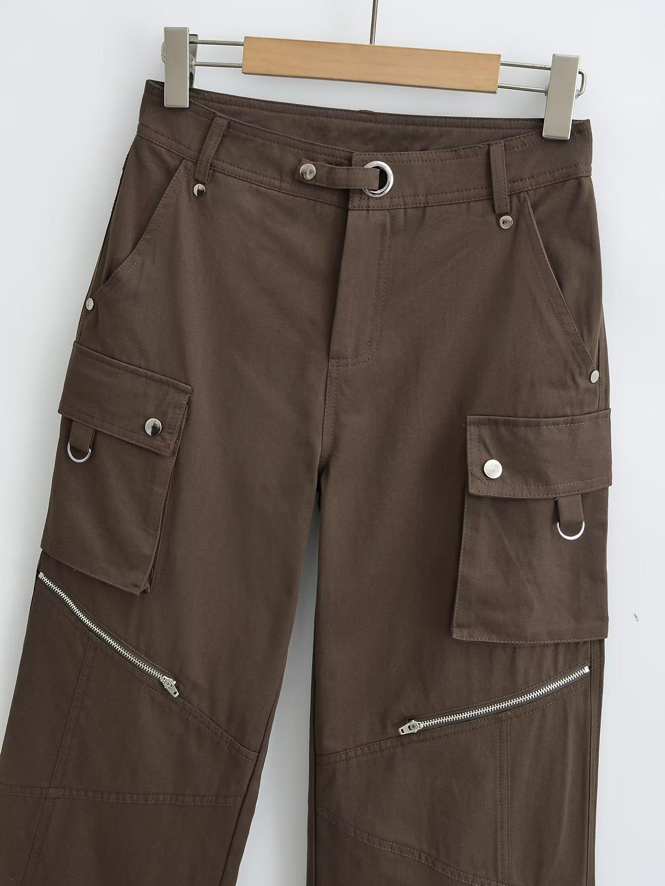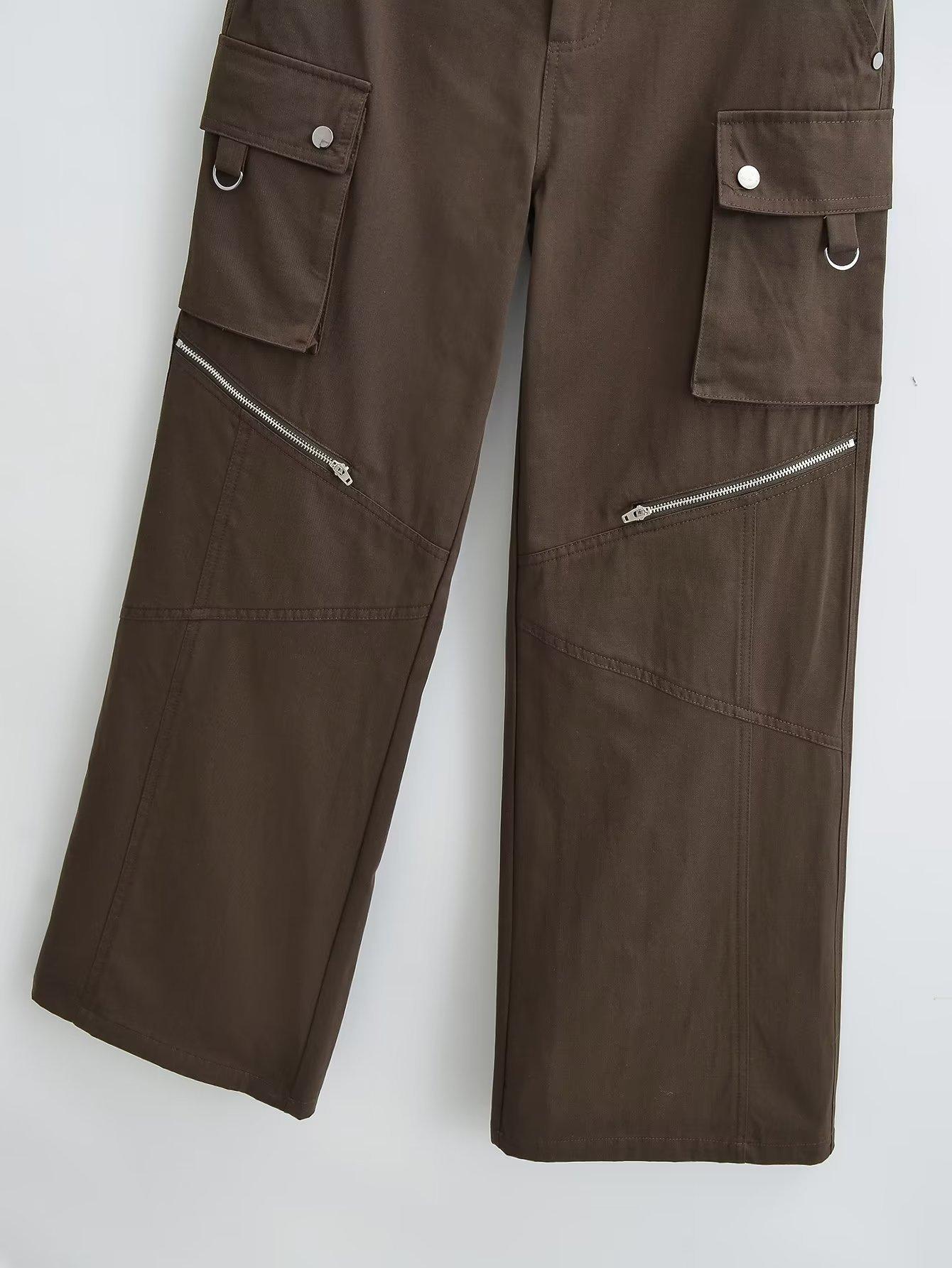 Pantalones cargo con remaches, cintura alta, rectos, pierna ancha y diseño europeo retro para mujer, estilo deportivo informal, otoño 2023