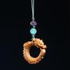 Palo de rosa Sándalo Sándalo verde Anillo de dragón tallado Cadena para teléfono móvil DIY Accesorio colgante para mochila