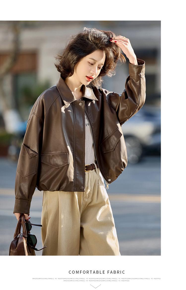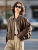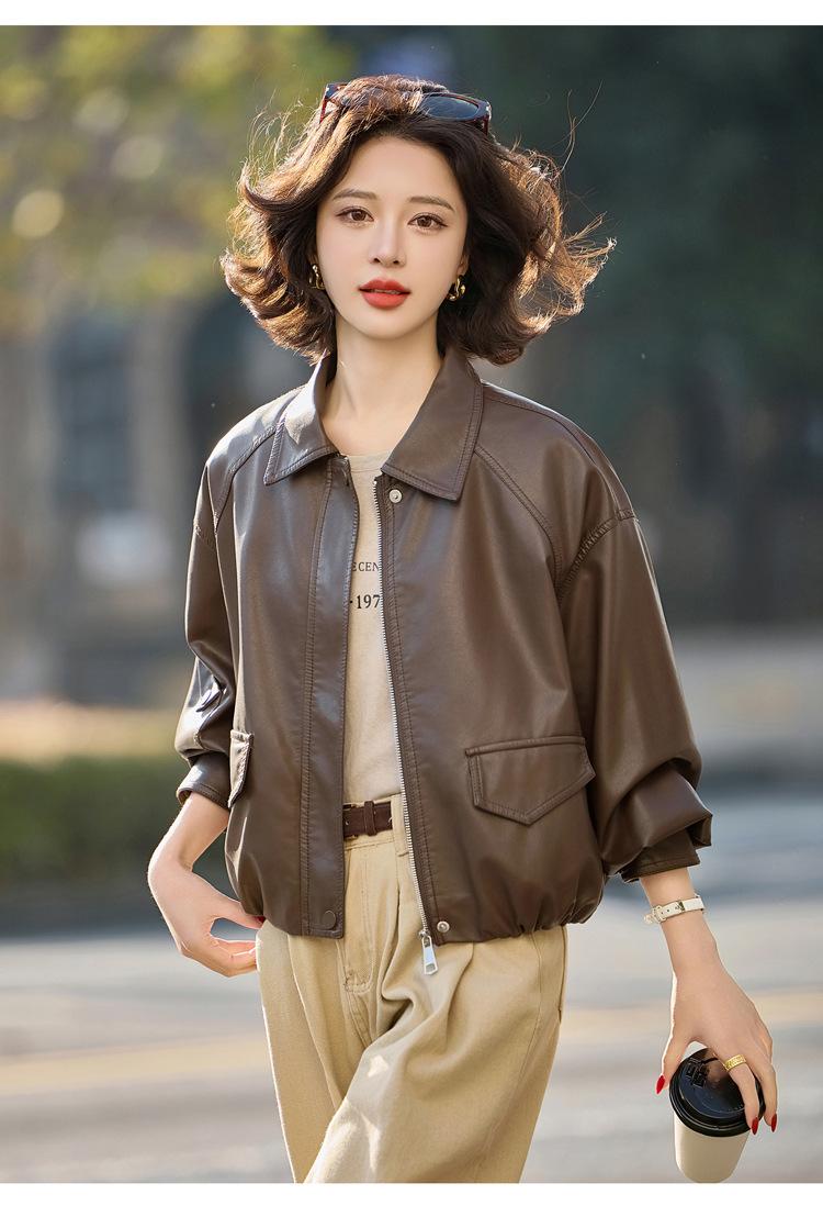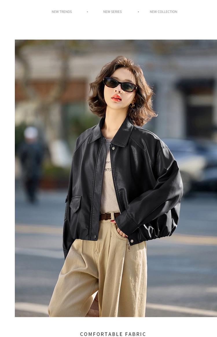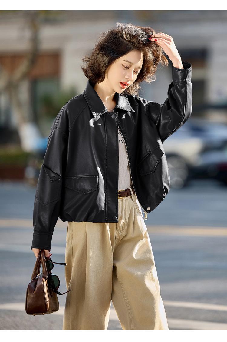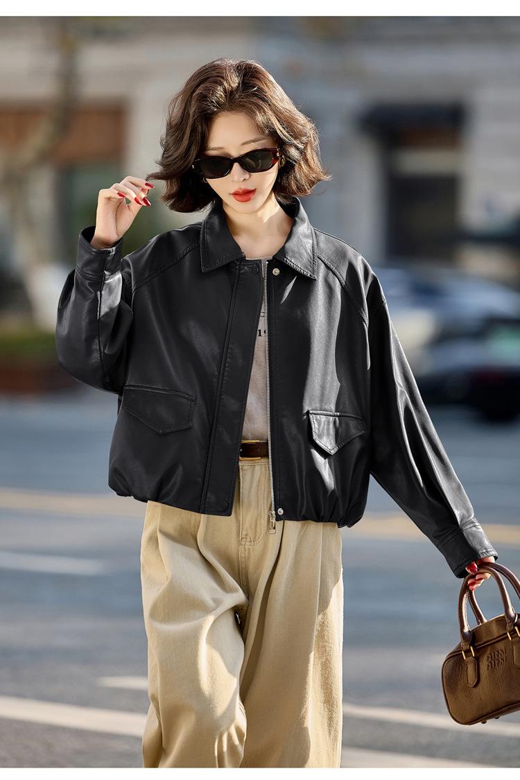Haining Cuero Combinable para Mujer Corto Primavera y Otoño 2025 Nuevo Abrigo de Piel de Oveja Pequeño y Moderno para Mujer Negro