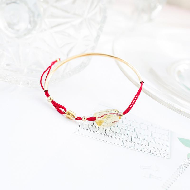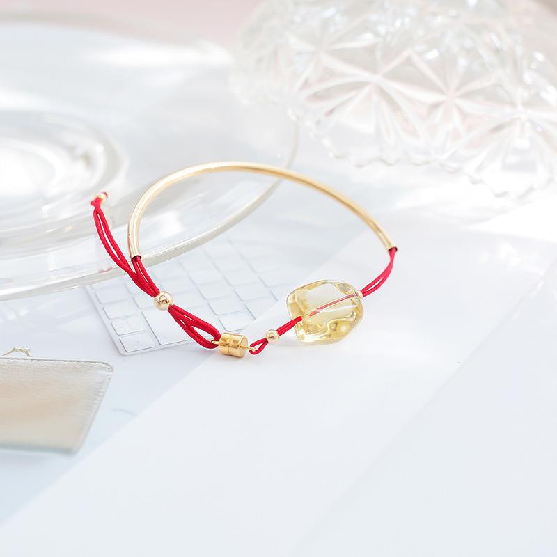 Pulsera de cristal natural amarillo caramelo pulsera de agua accesorios DIY joyería pulsera roja dorada de 14k pulsera para mujer
