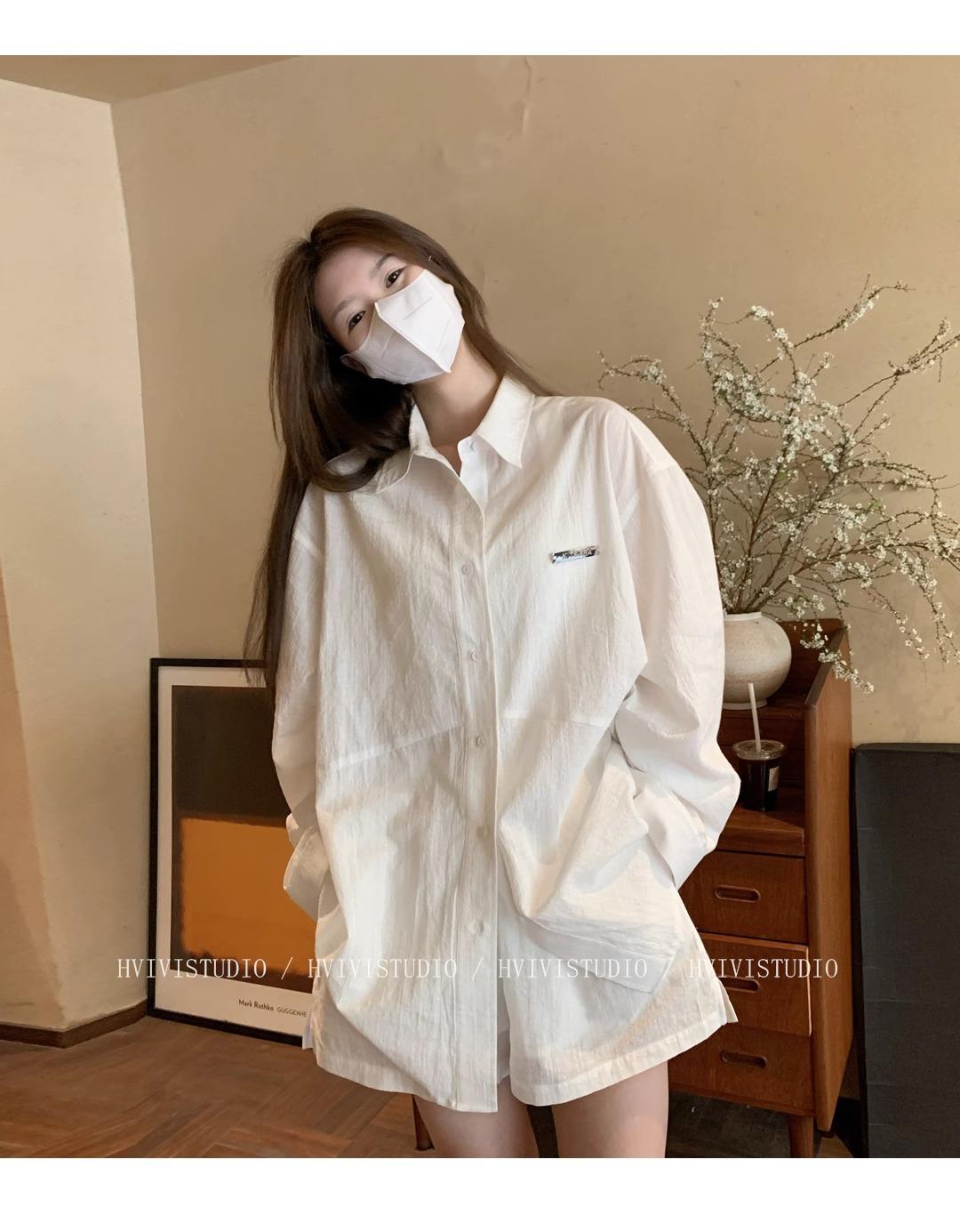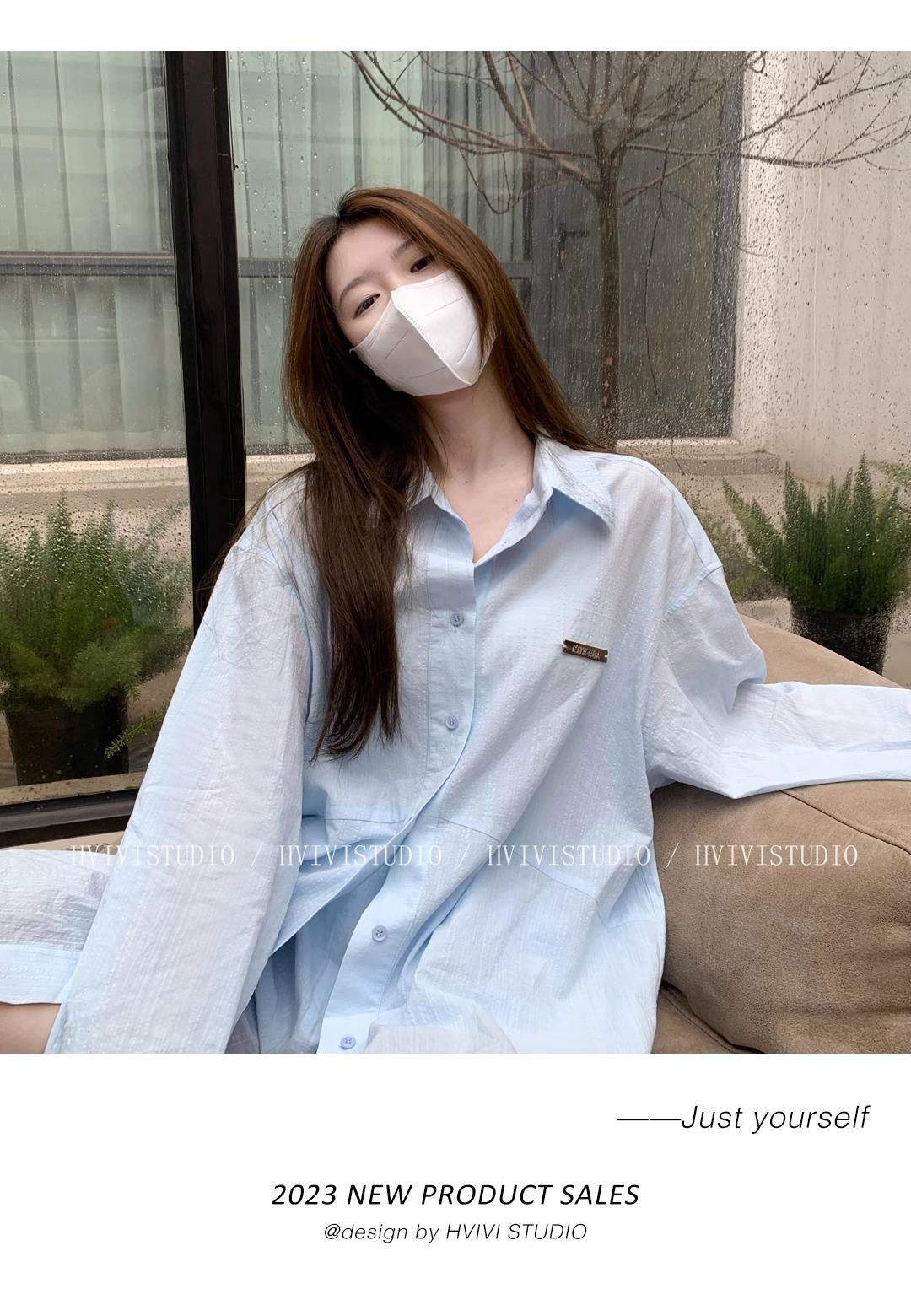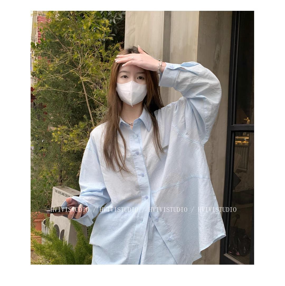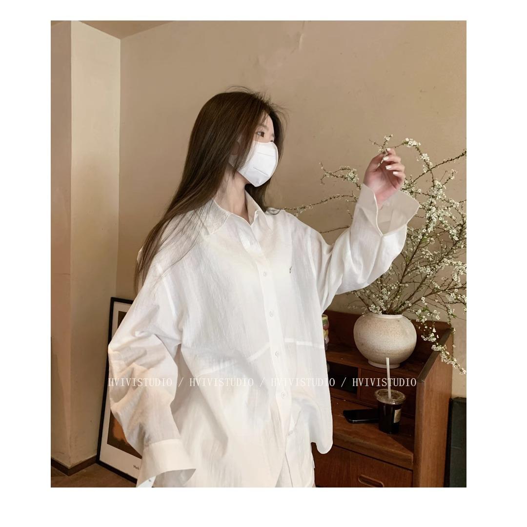 Camisa informal de manga larga drapeada, holgada y fina para mujer con protección solar Design Sense Niche