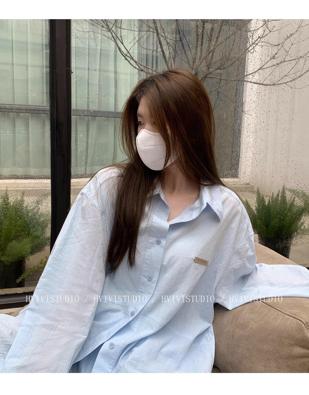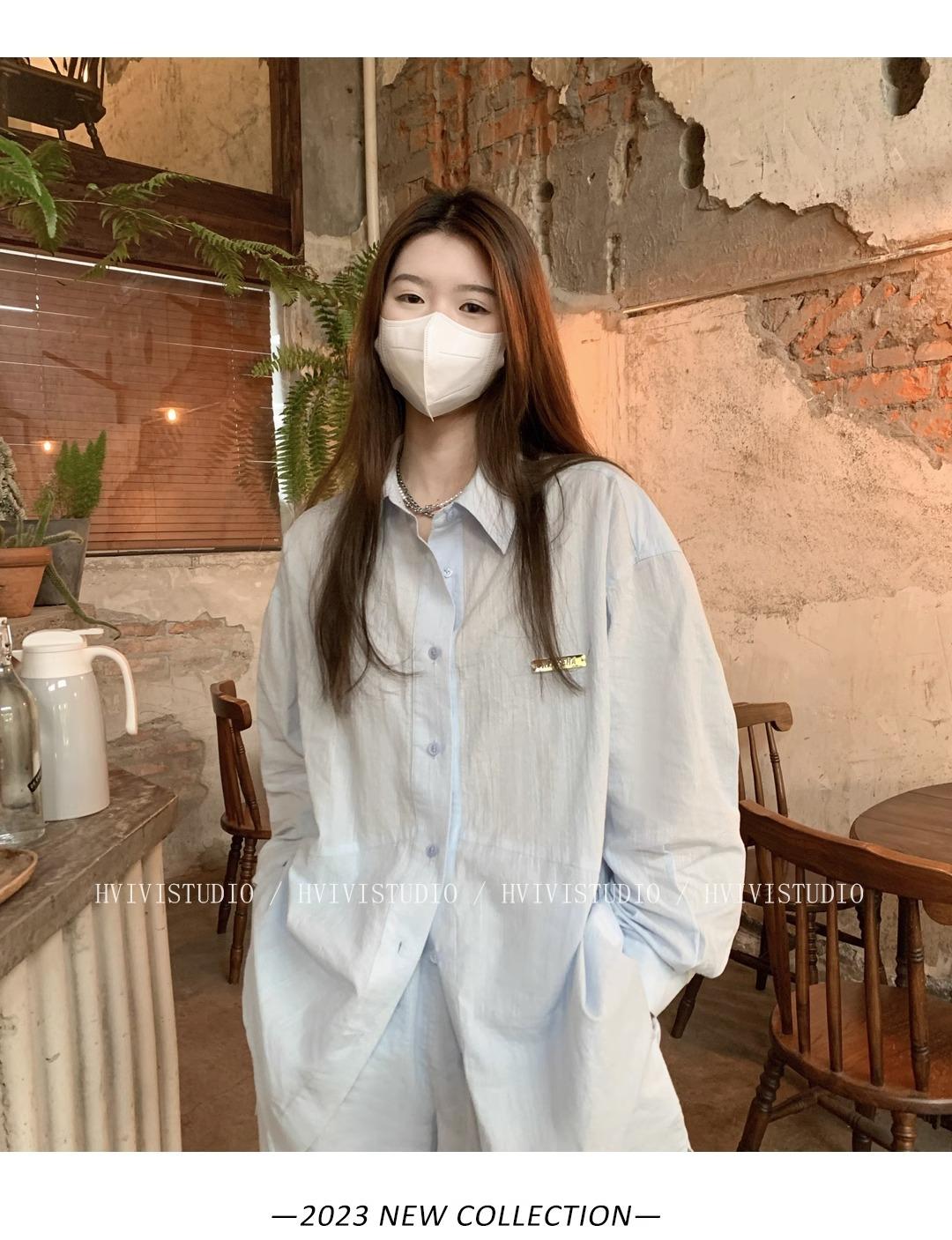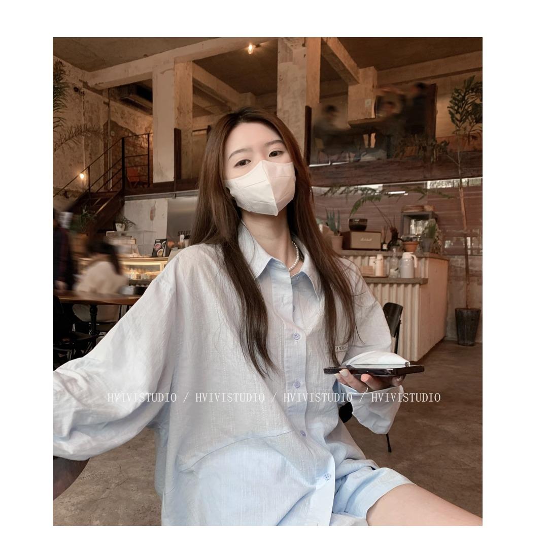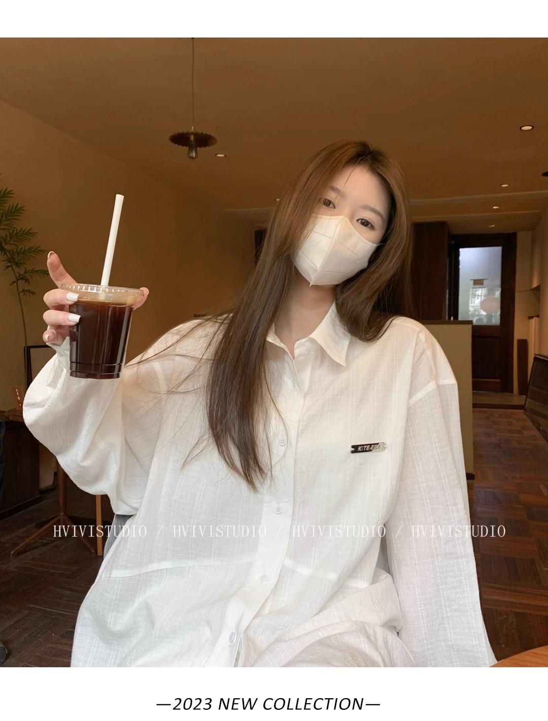 Camisa informal de manga larga drapeada, holgada y fina para mujer con protección solar Design Sense Niche