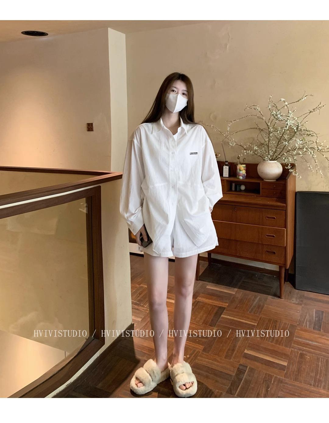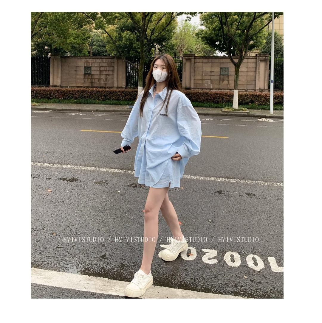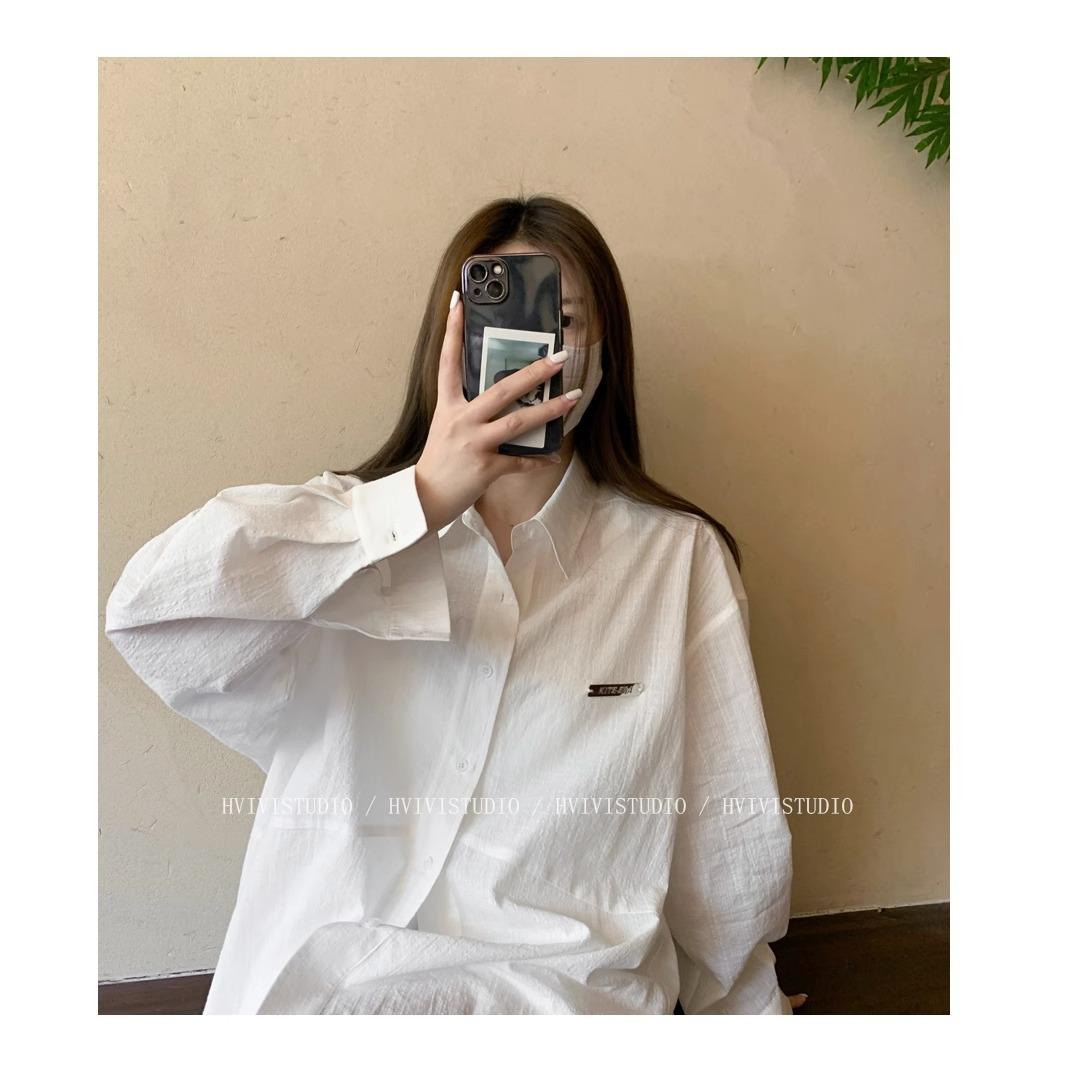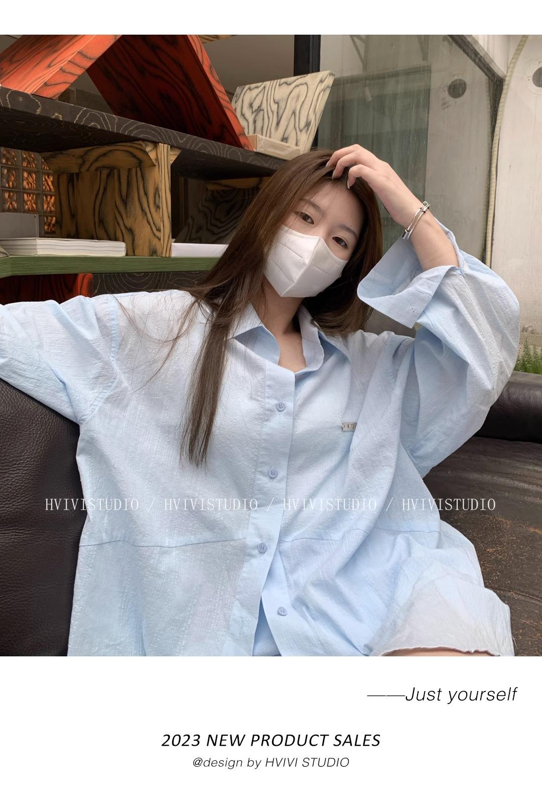 Camisa informal de manga larga drapeada, holgada y fina para mujer con protección solar Design Sense Niche