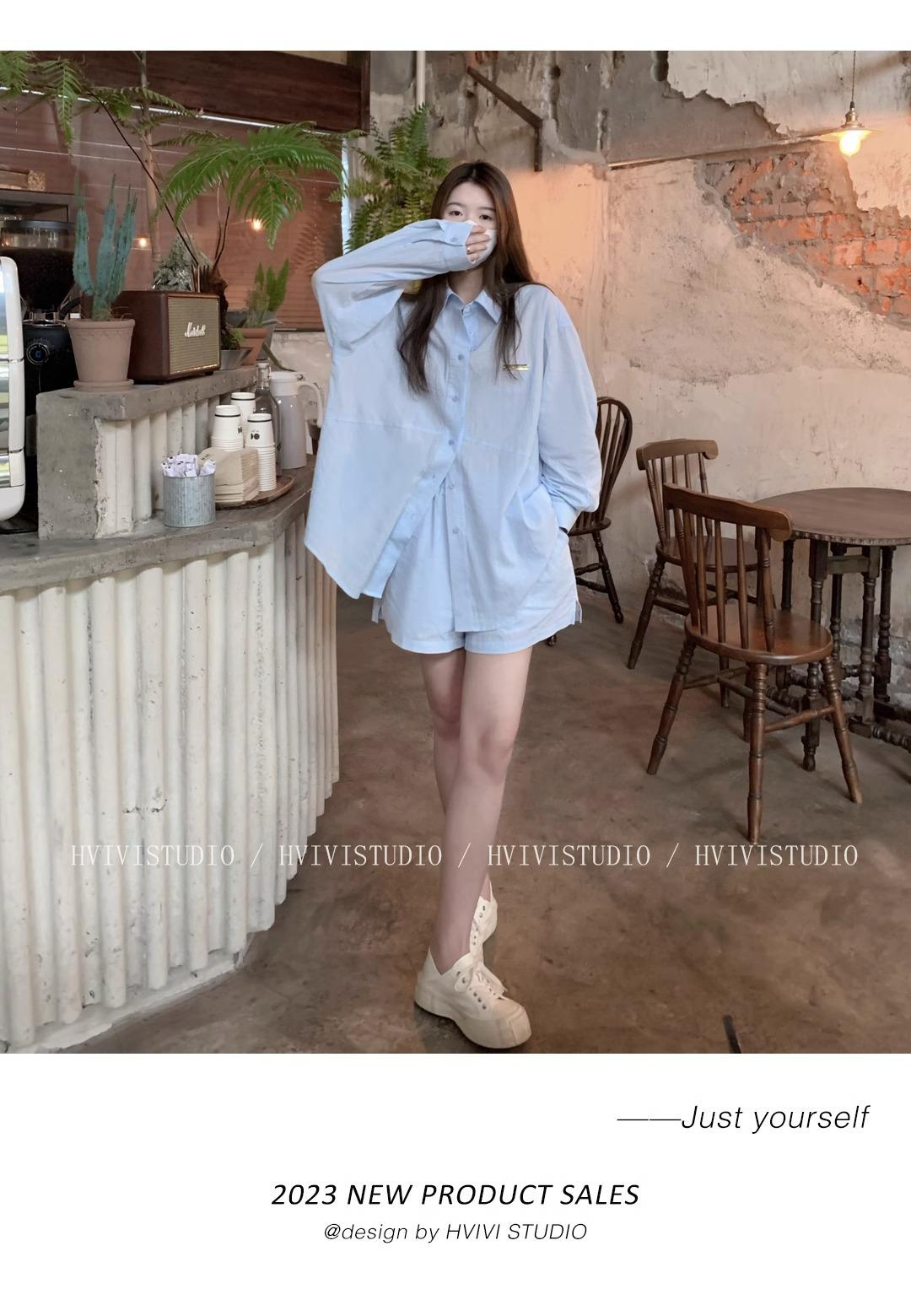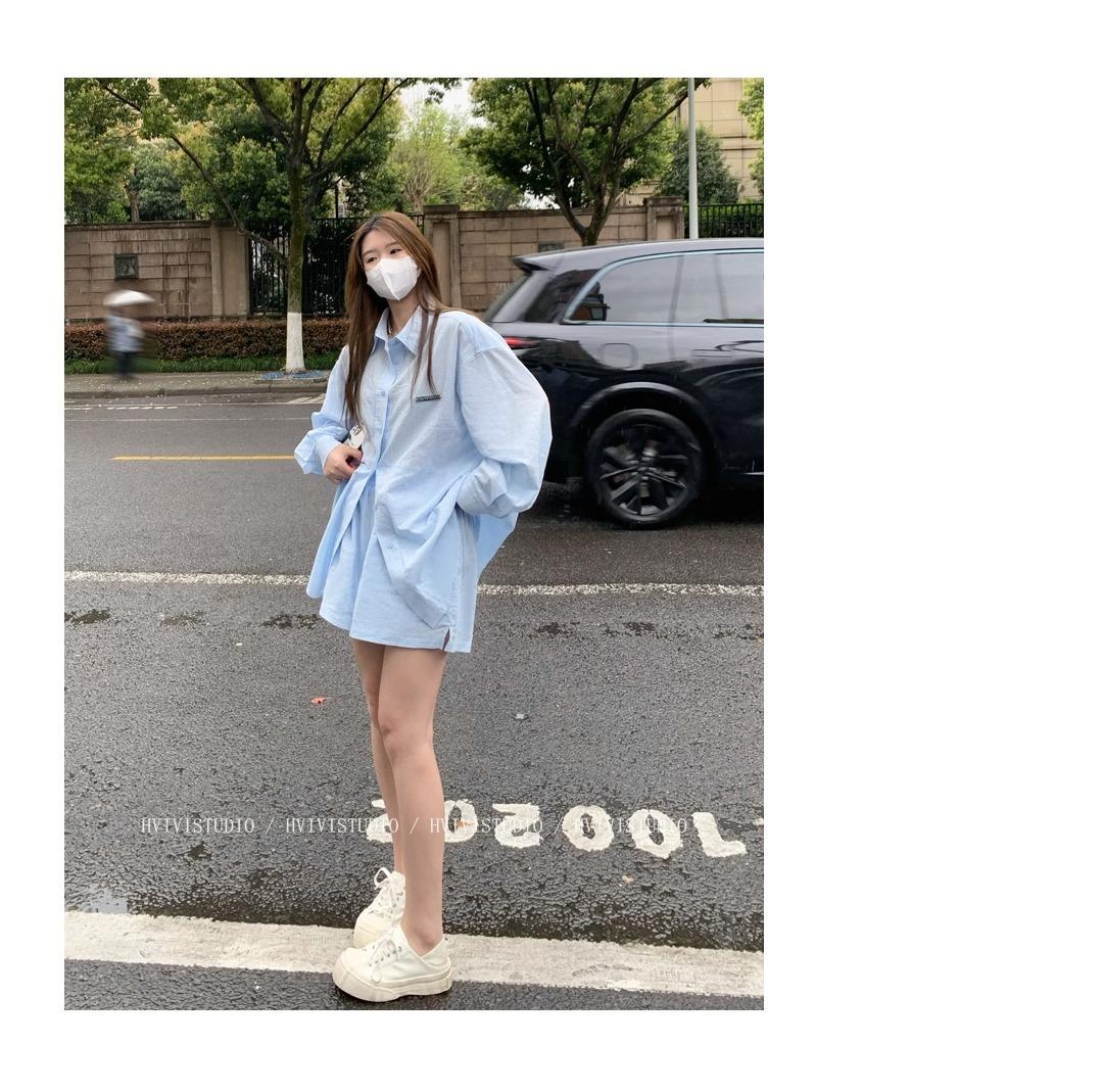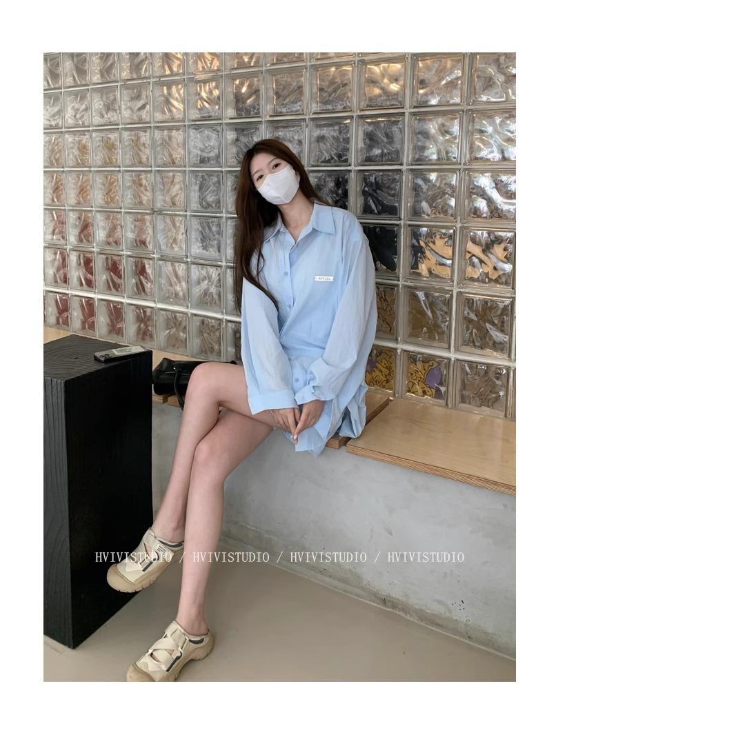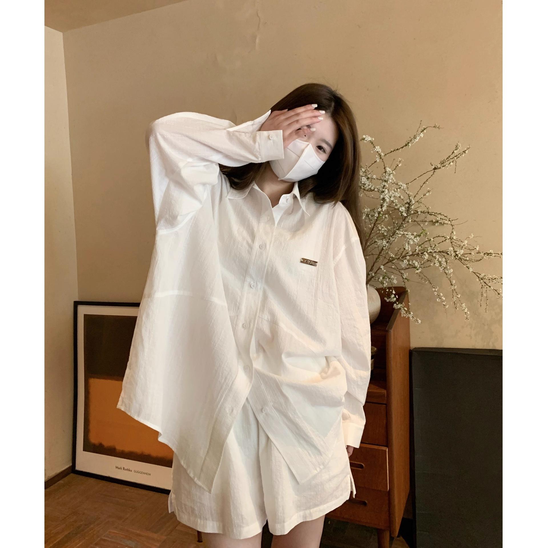 Camisa informal de manga larga drapeada, holgada y fina para mujer con protección solar Design Sense Niche