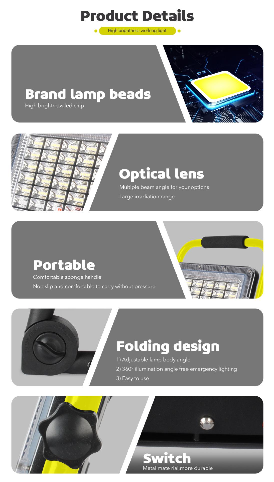 Led100W200W Iluminación de Emergencia Portátil Foco Exterior Impermeable Luz de Puesto Callejero Móvil