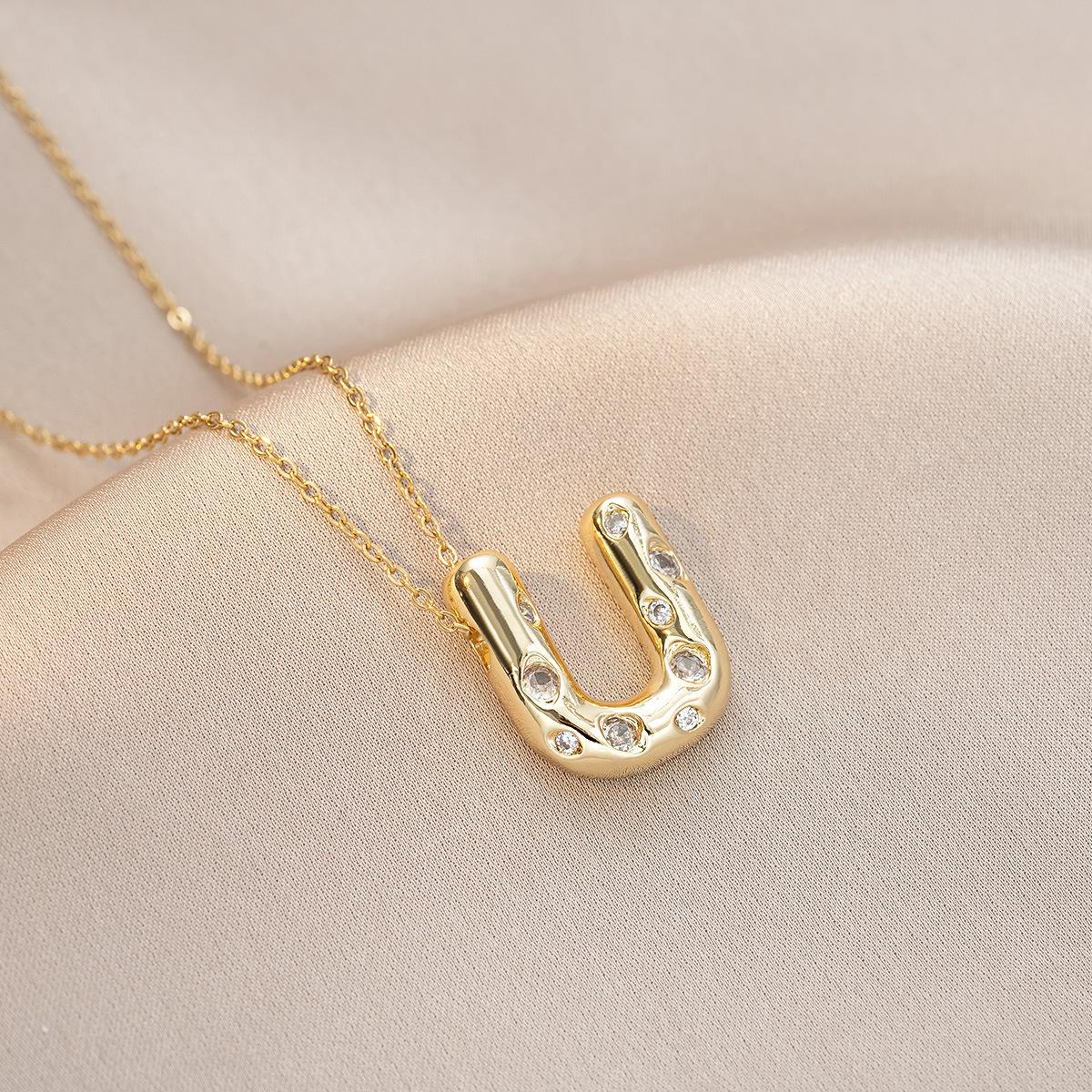 Collar Mujer Transfronterizo Internet Rojo Color 26 Letras Nicho Nuevo Estilo Sentido del Diseño Elegante Simple Inglés Acero de Titanio Collar