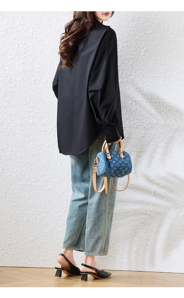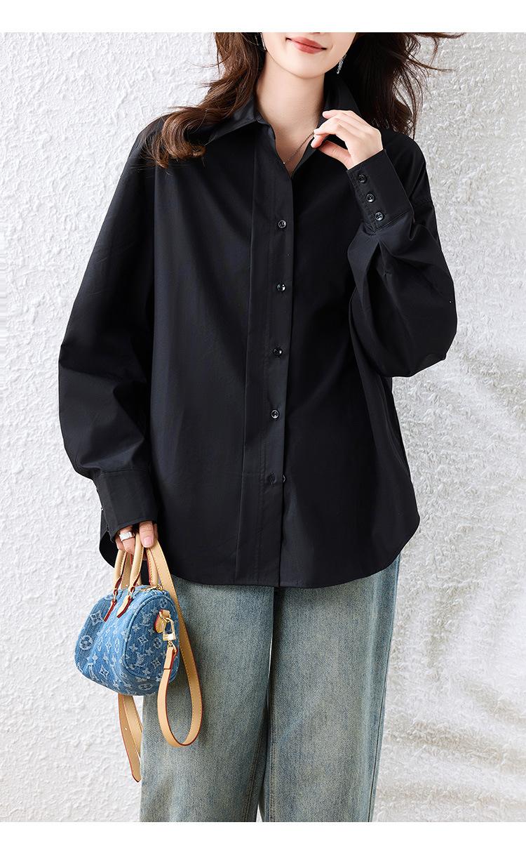 Camisa negra de manga larga para mujer, estilo nicho, disponible en stock, estilo francés, primavera 2025, nueva blusa.