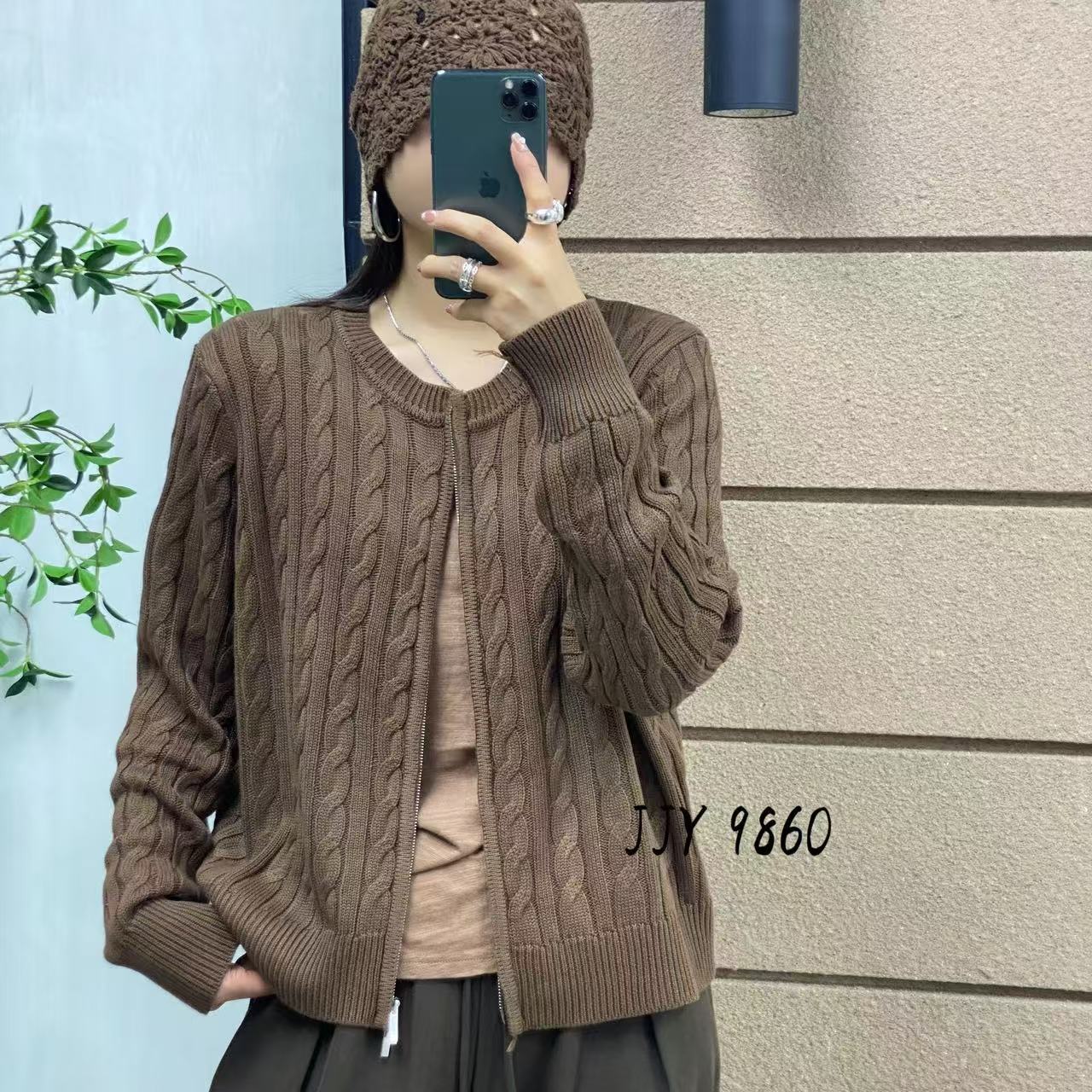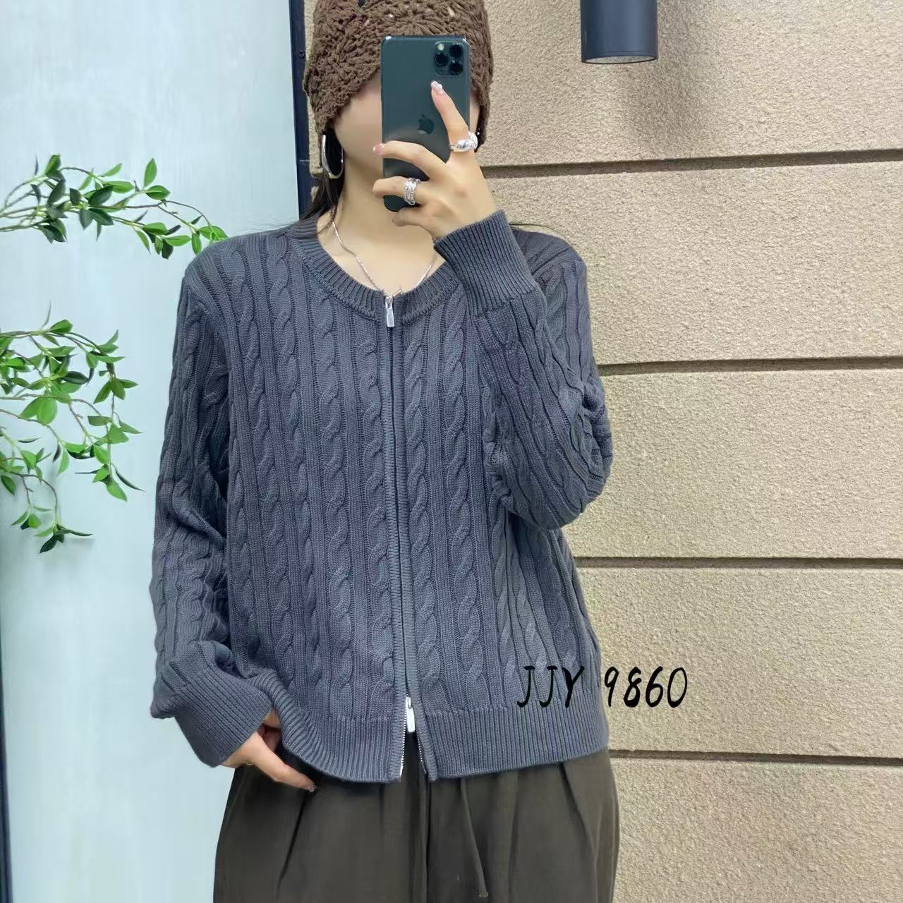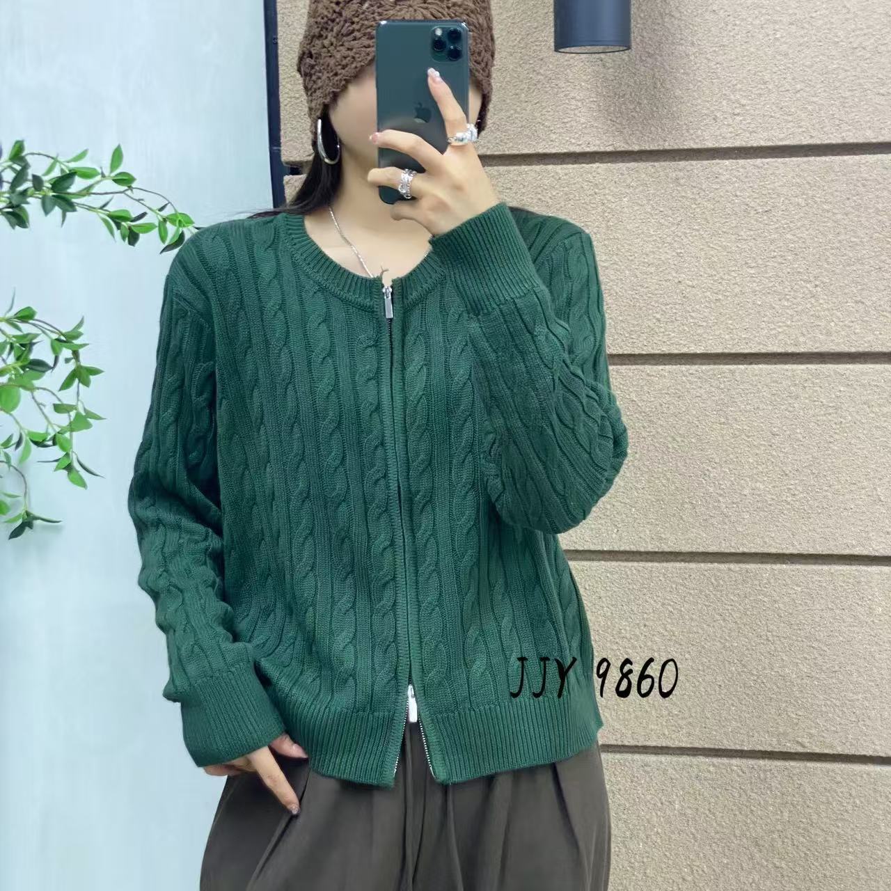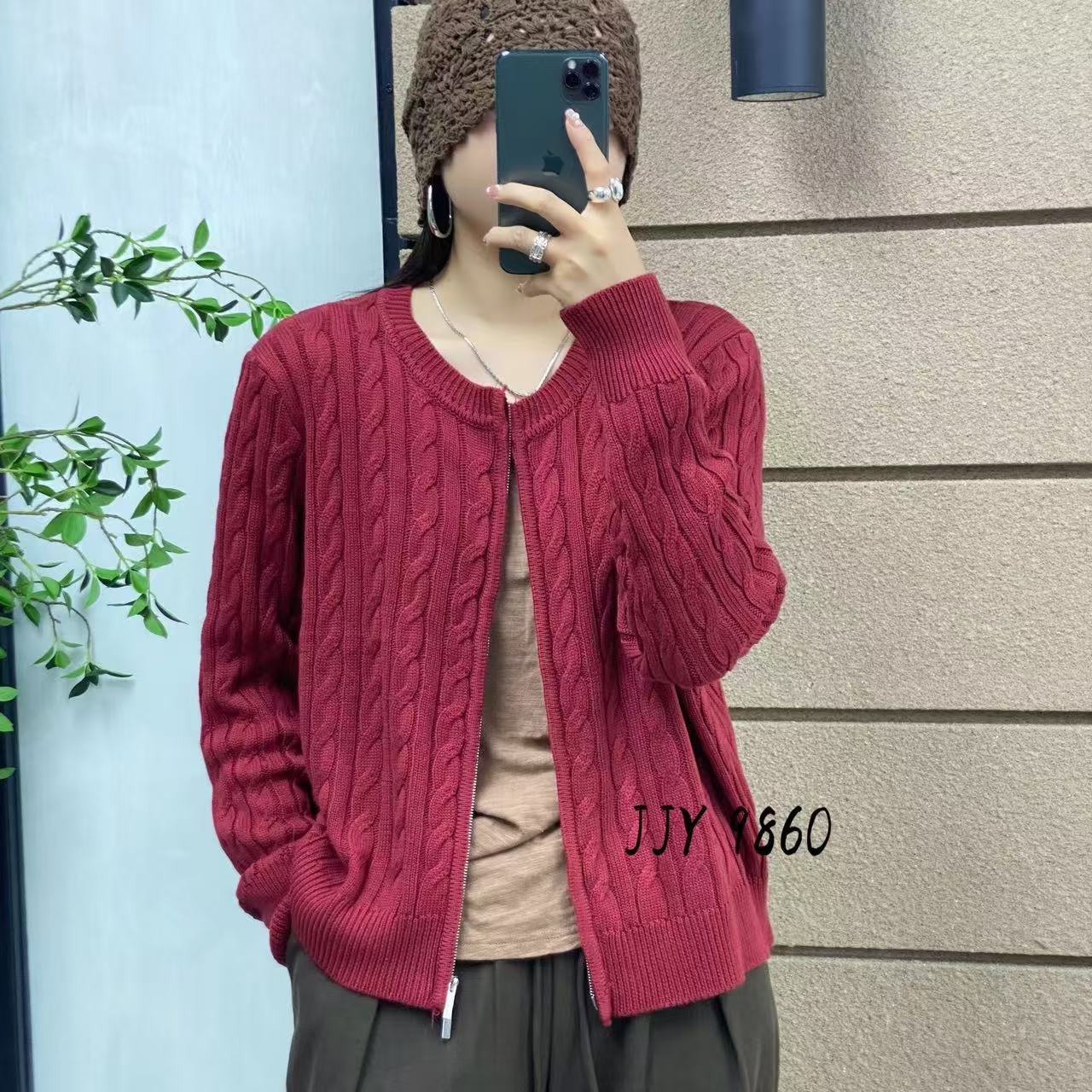 Cárdigan de punto con cremallera de doble cabeza, nueva moda de otoño e invierno 2024, chaqueta holgada de algodón de manga larga, top grueso para mujer