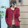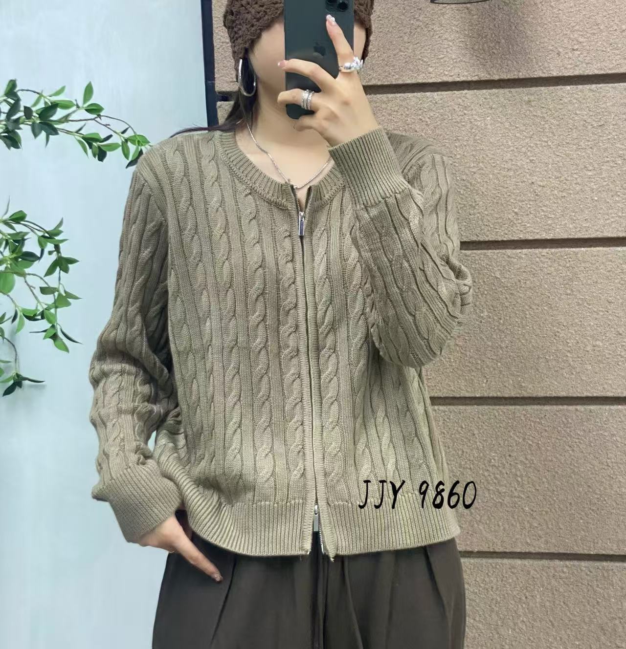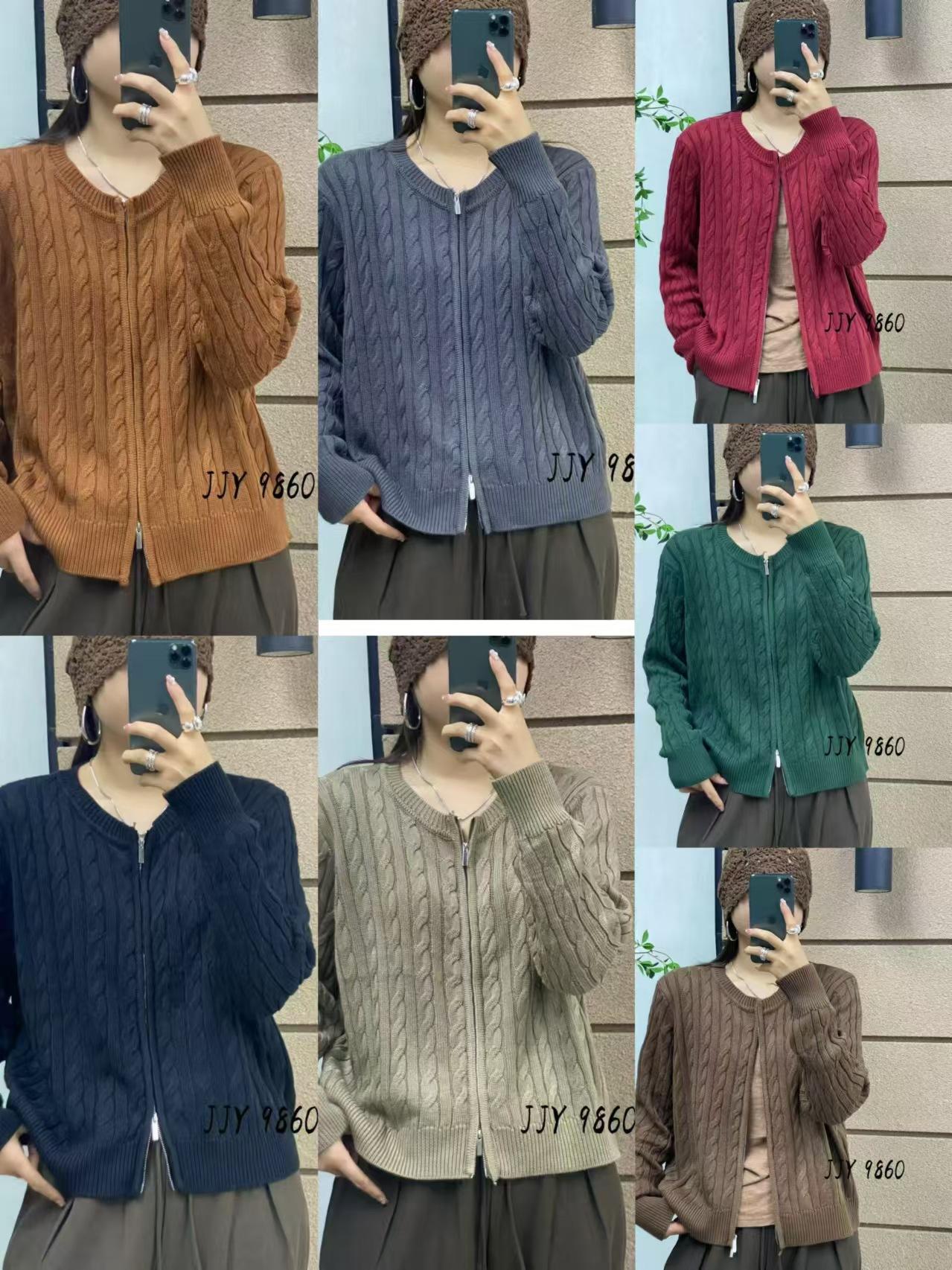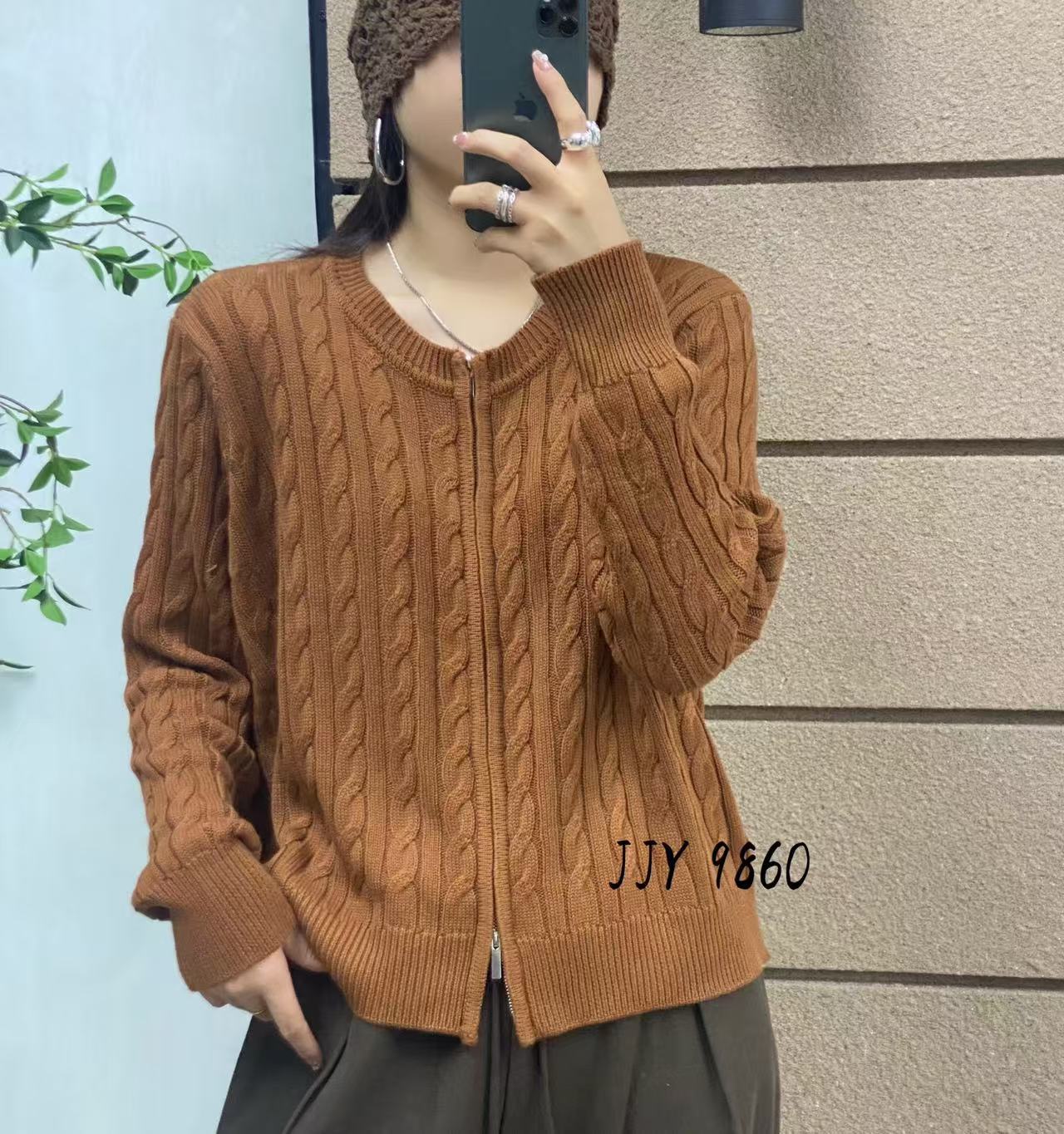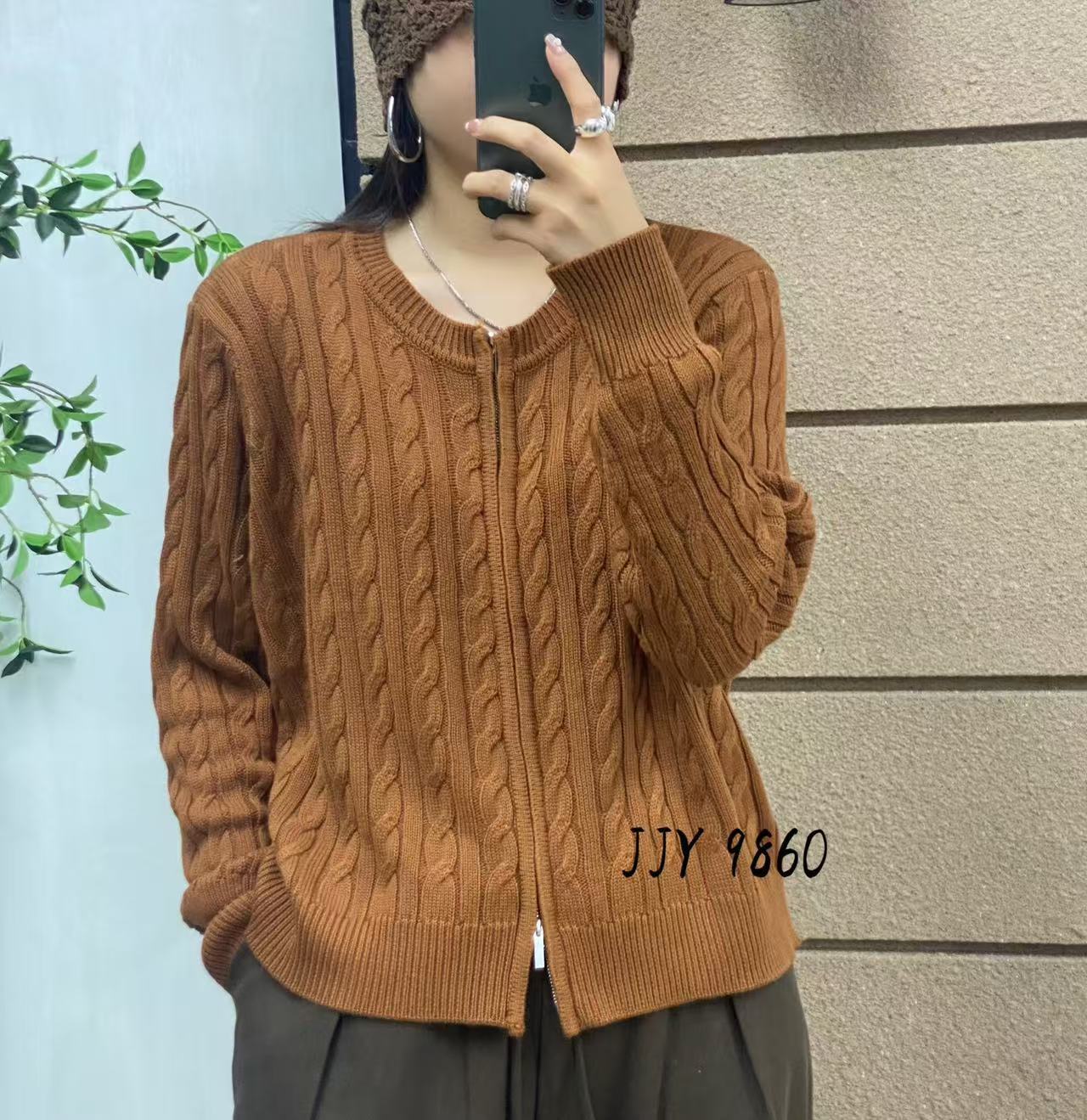 Cárdigan de punto con cremallera de doble cabeza, nueva moda de otoño e invierno 2024, chaqueta holgada de algodón de manga larga, top grueso para mujer