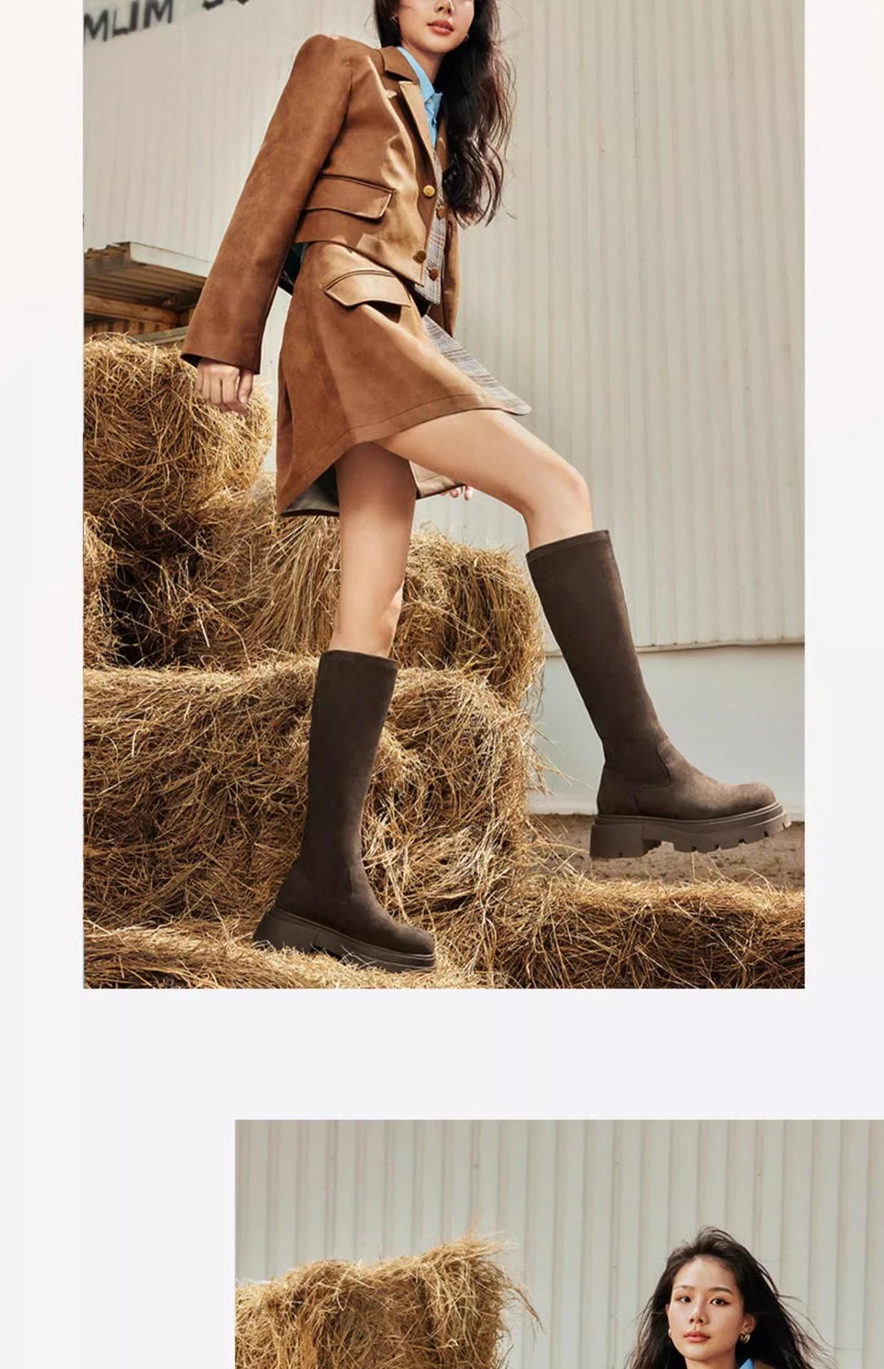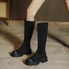 Botas elásticas de suela gruesa para mujer Otoño e Invierno 2023 Nuevas botas retro por encima de la rodilla Botas finas