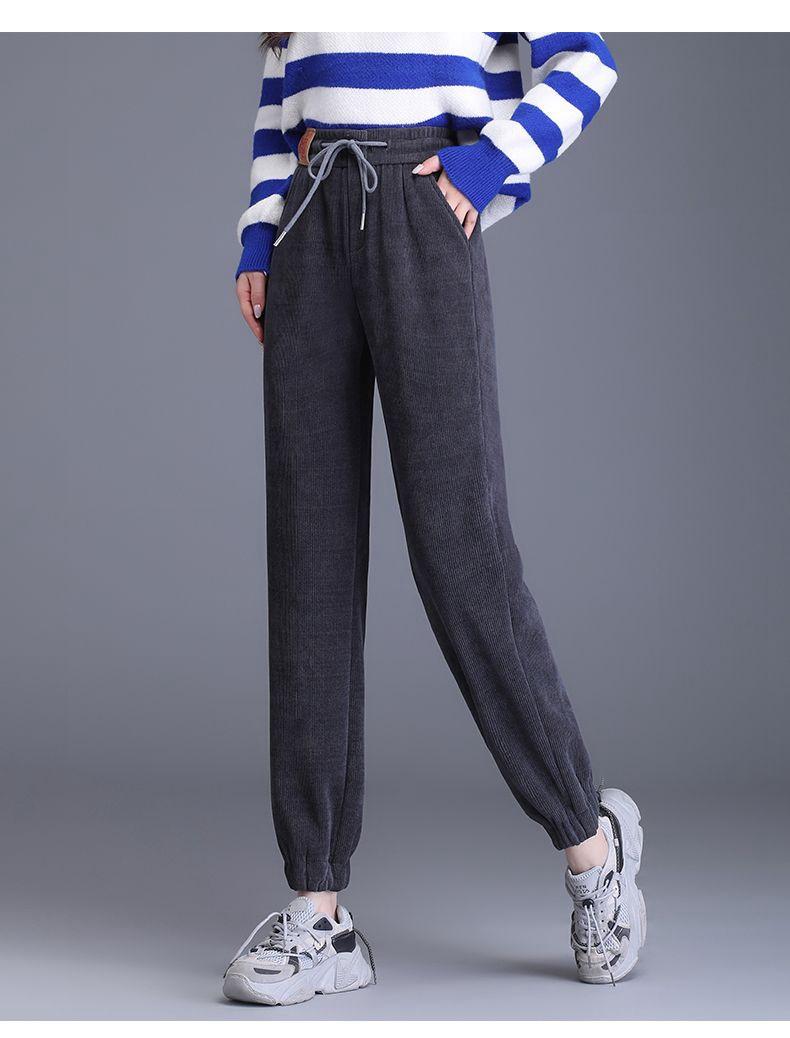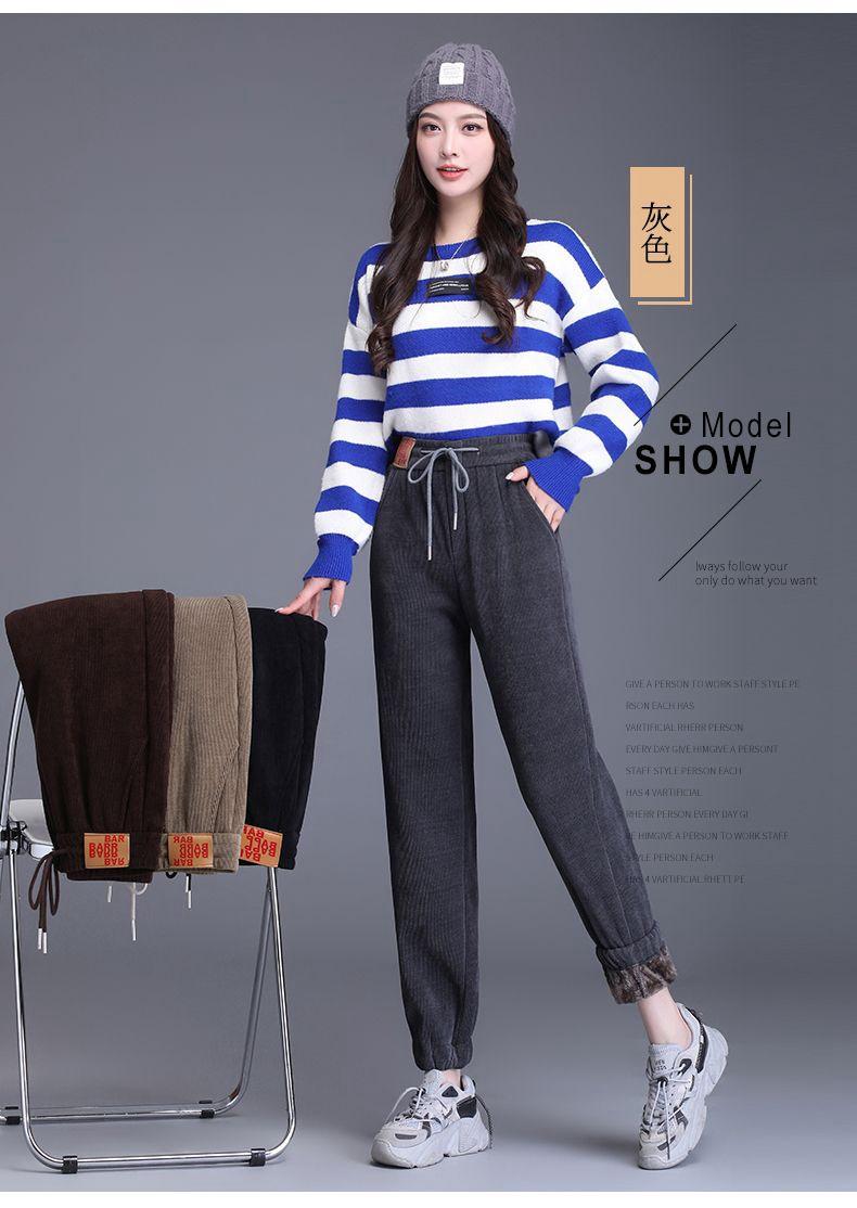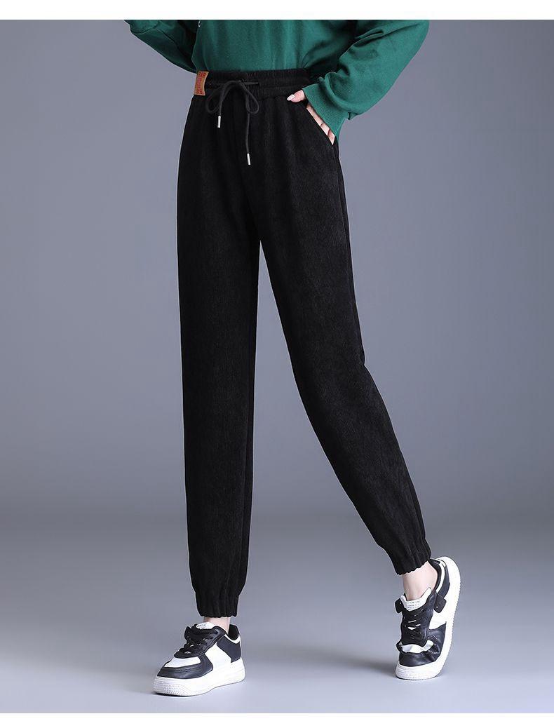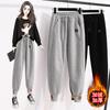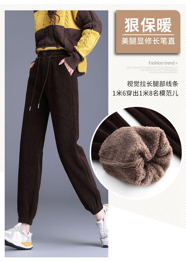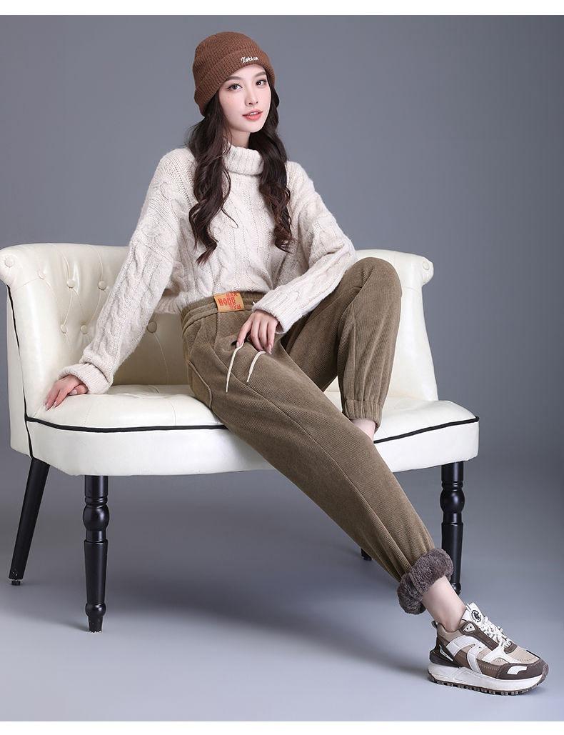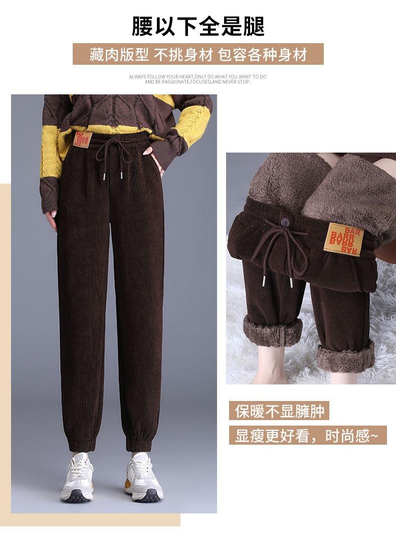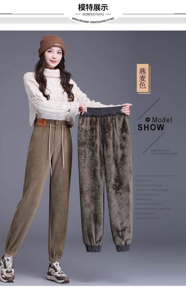 Pantalones Harlan Wei Gruesos con Forro Polar para Mujer Primavera Otoño e Invierno Ropa Exterior Cálidos Combinan con Todo Holgados Adelgazantes Pierna-dedo Casuales