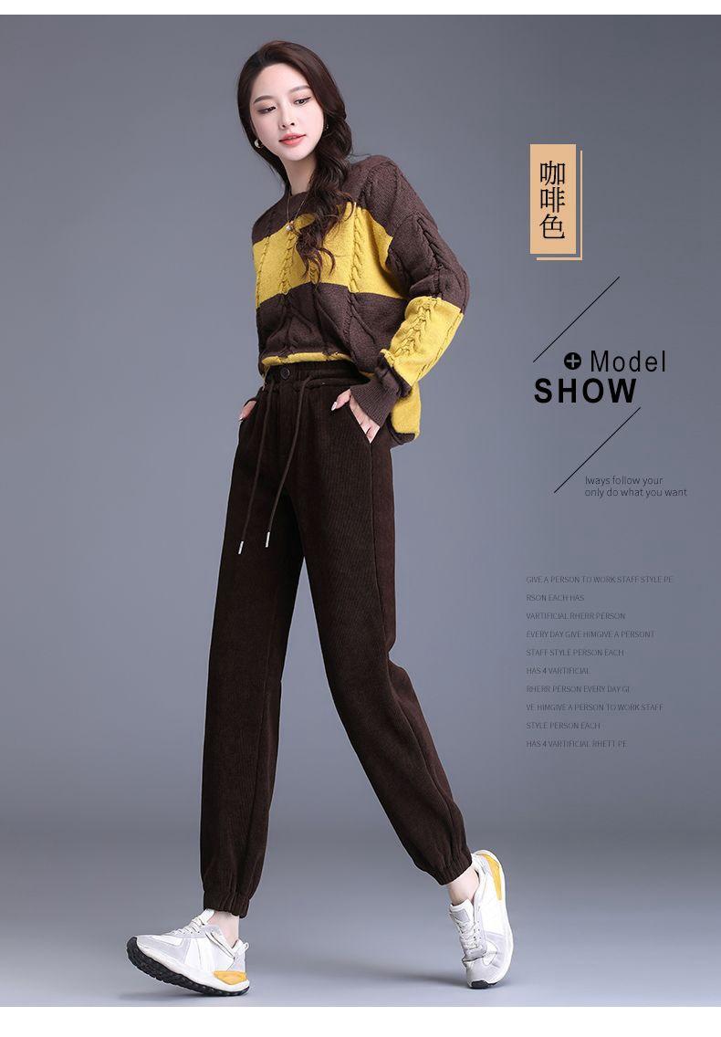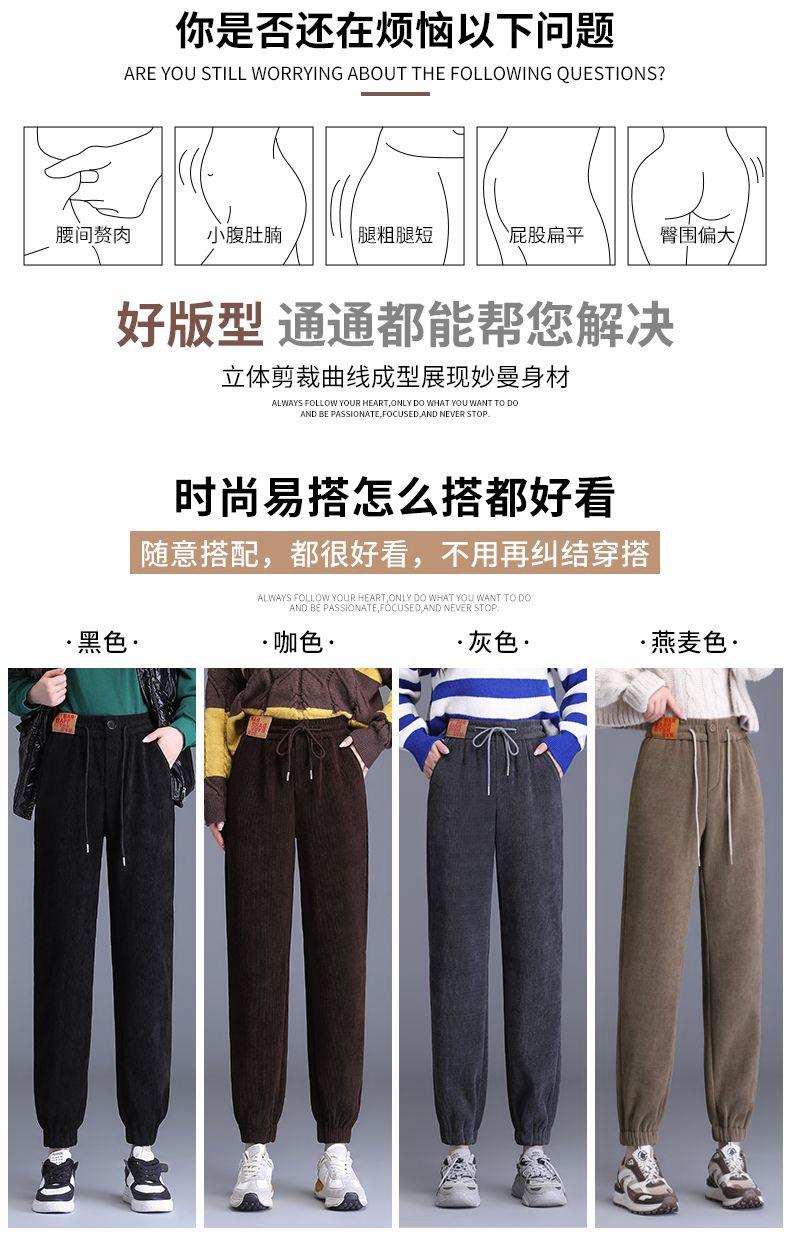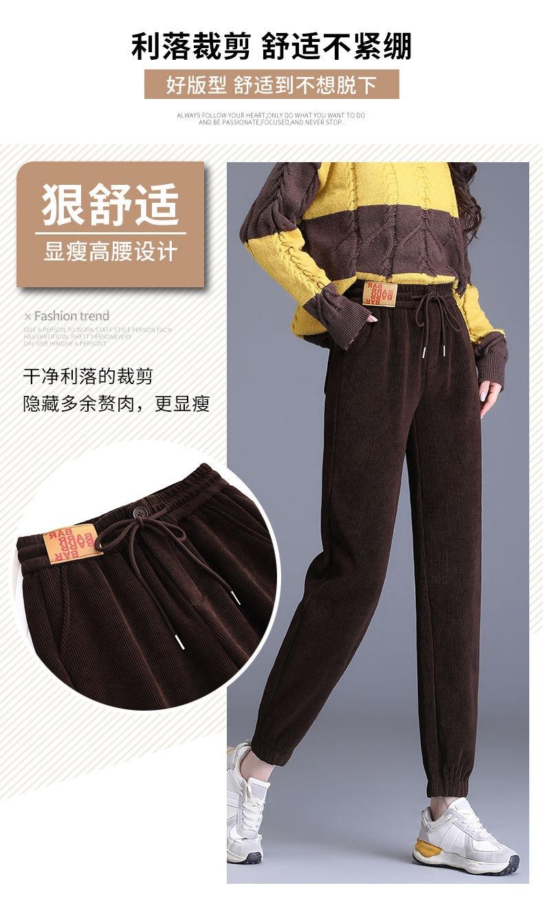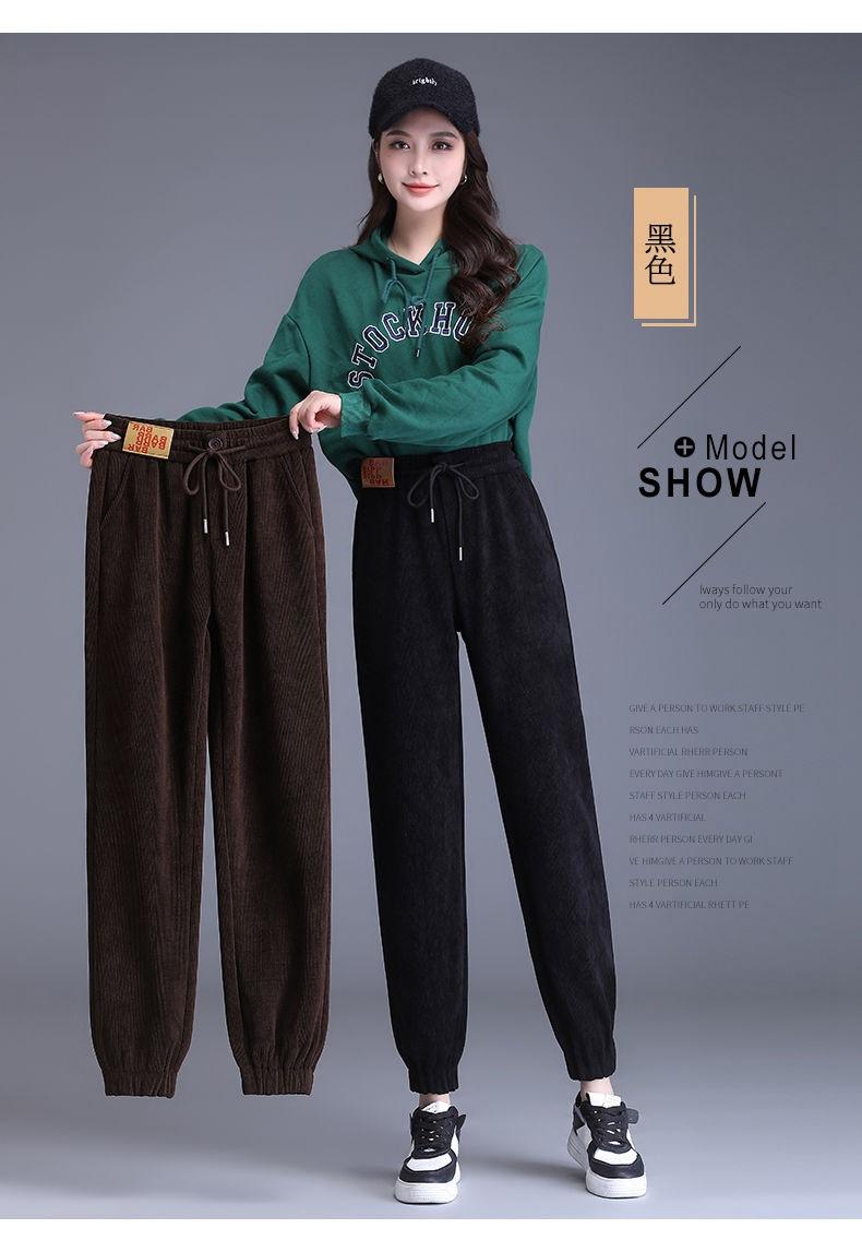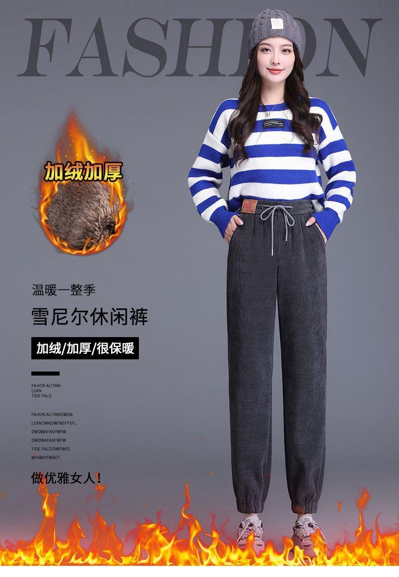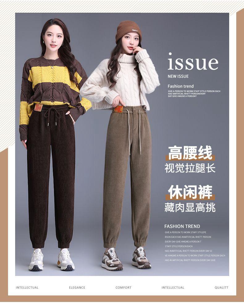 Pantalones Harlan Wei Gruesos con Forro Polar para Mujer Primavera Otoño e Invierno Ropa Exterior Cálidos Combinan con Todo Holgados Adelgazantes Pierna-dedo Casuales