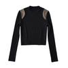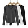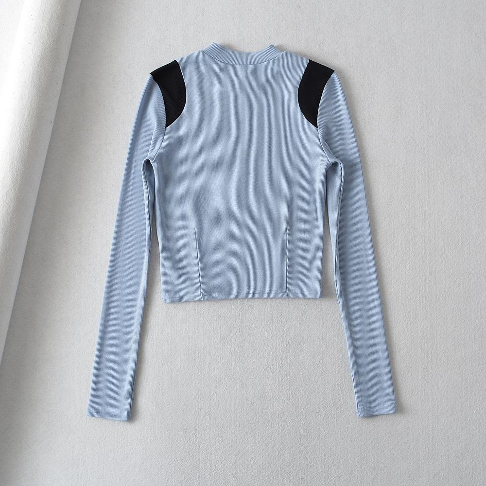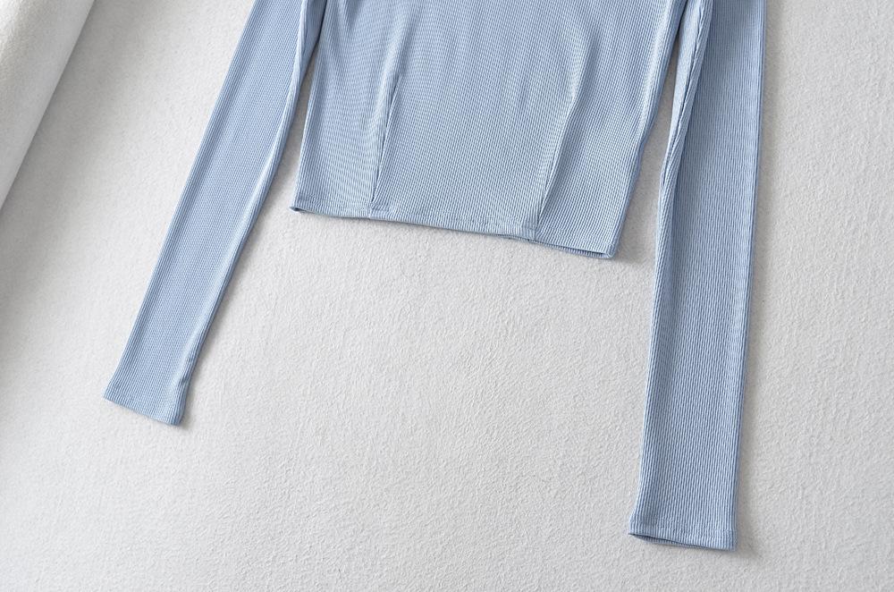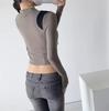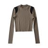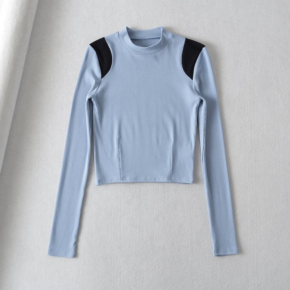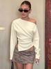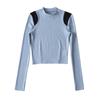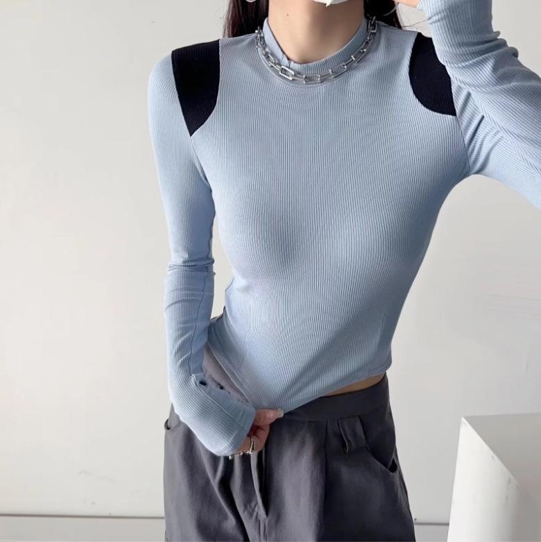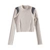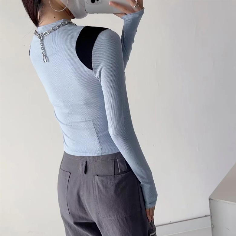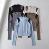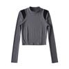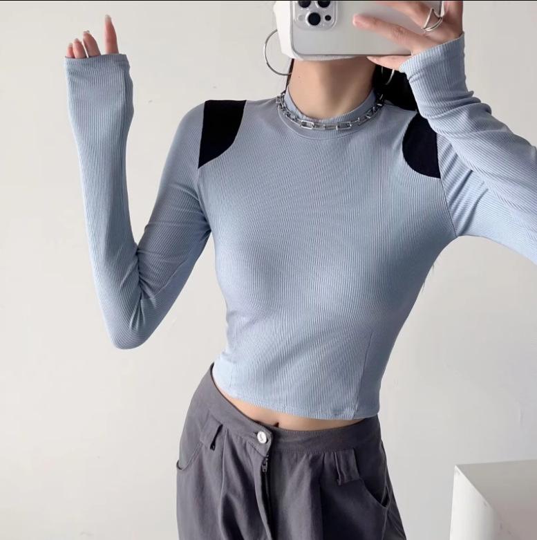 Camiseta de manga larga con cuello redondo y hombros descubiertos para mujer, ajustada, elástica, corta, hasta el ombligo, 2024