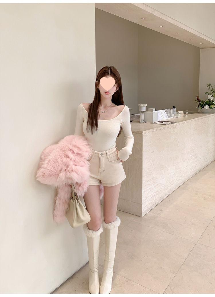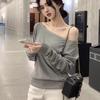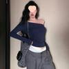 Camiseta de tubo corta ajustada con hombros descubiertos y manga larga de punto para mujer de Spice Girls, nueva camiseta de otoño