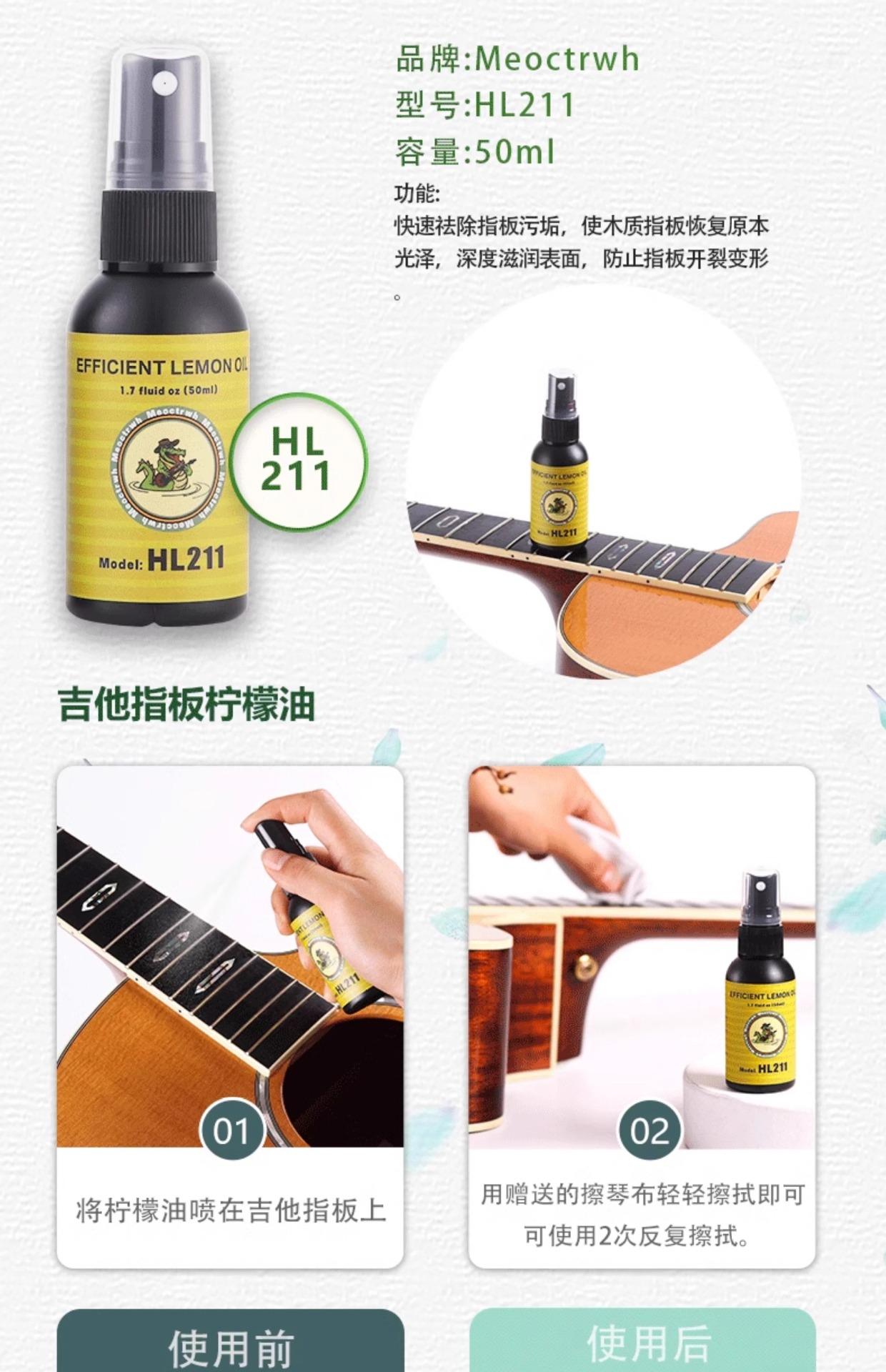 50ml guitar panel cleaning solution, 50ml guitar fingerboard lemon oil, 50ml string anti-rust oil (comes with ...