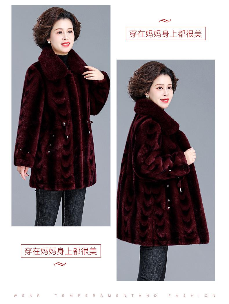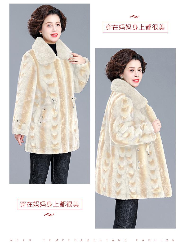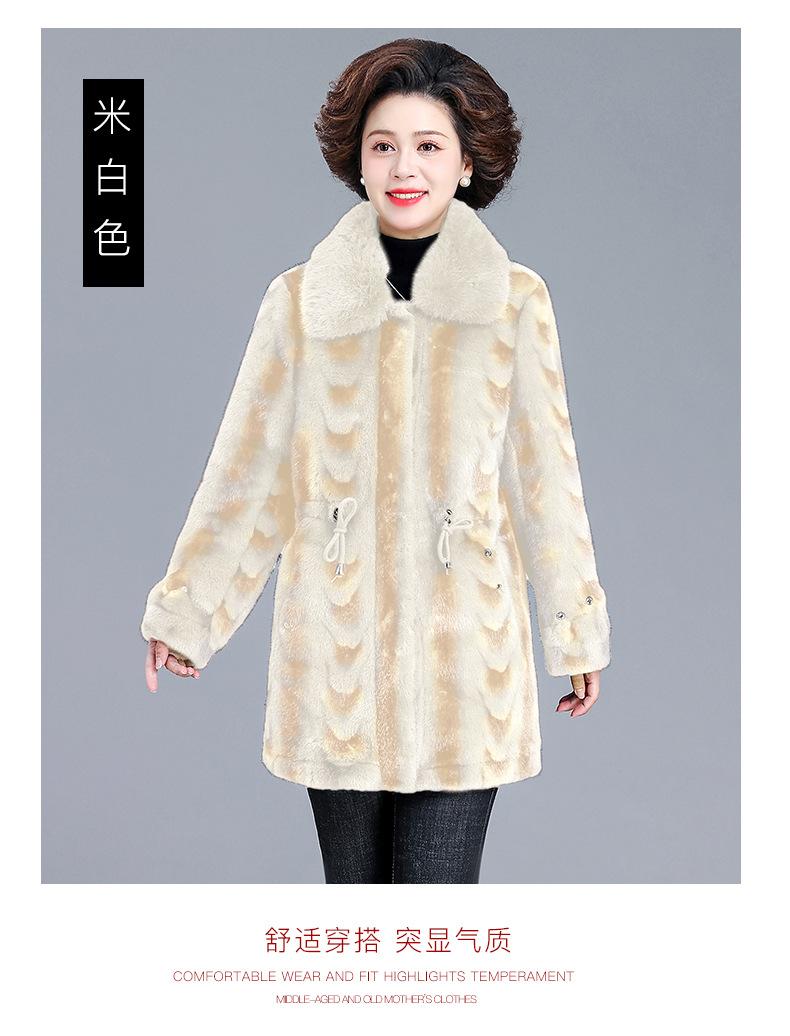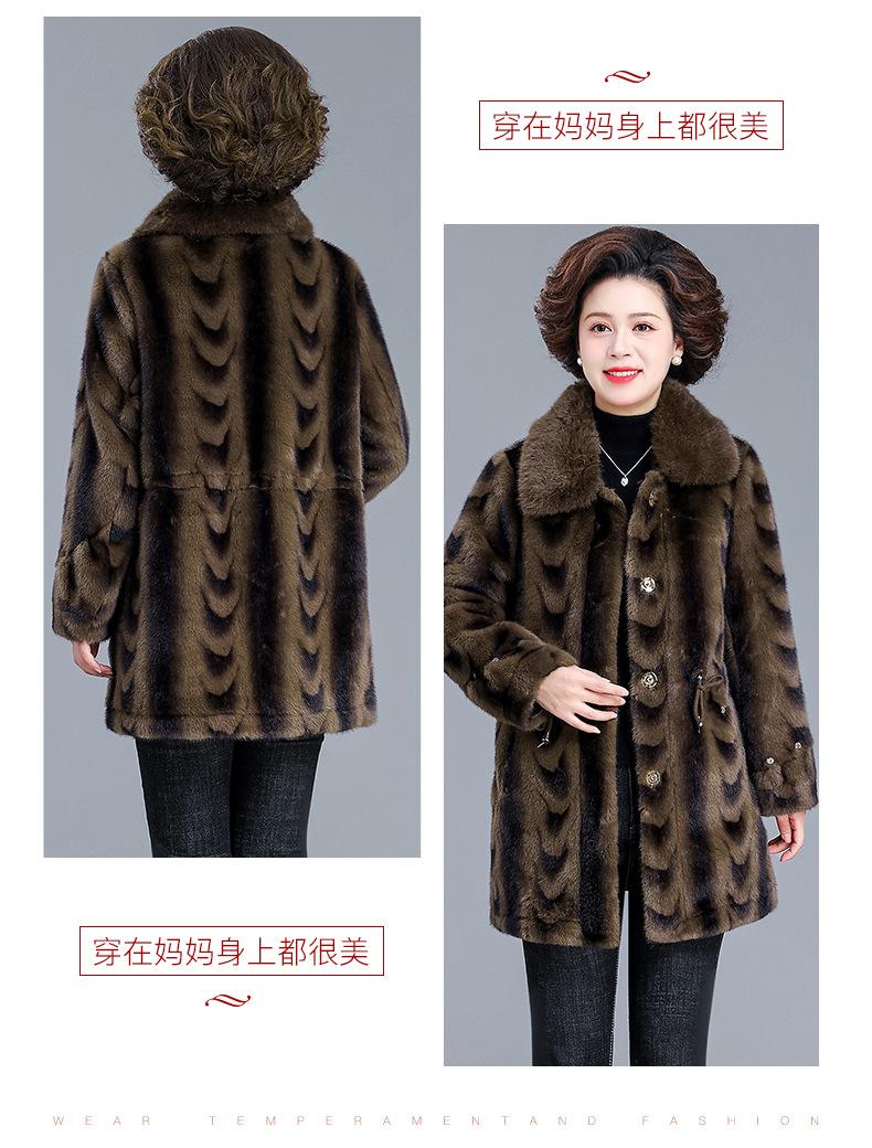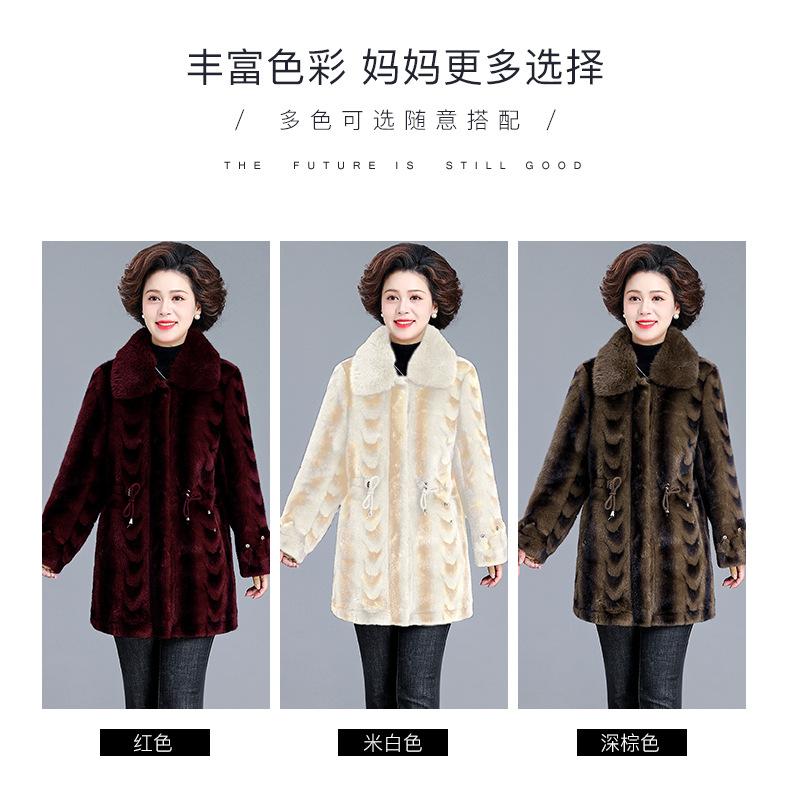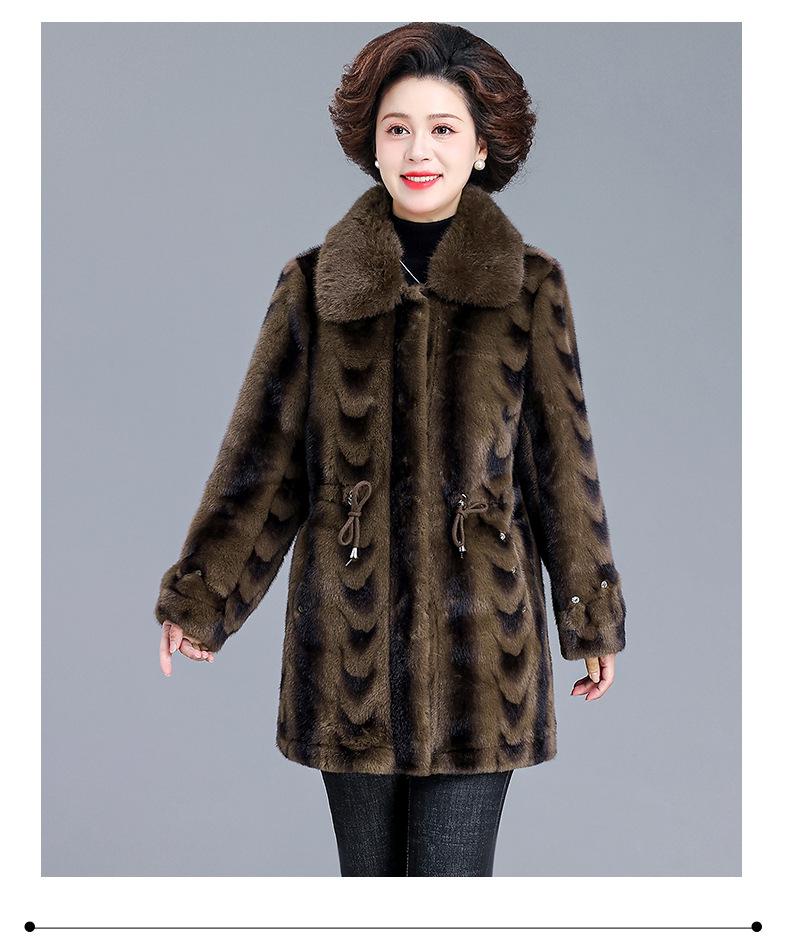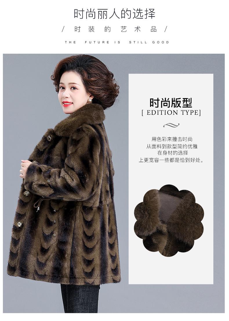 Abrigo largo de visón y menta para otoño e invierno de mamá, nuevo y elegante abrigo de invierno de una pieza con cuello de piel para mujeres de mediana edad y mayores.