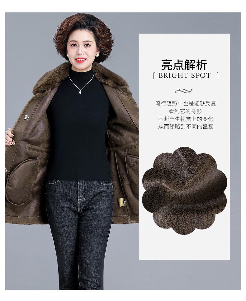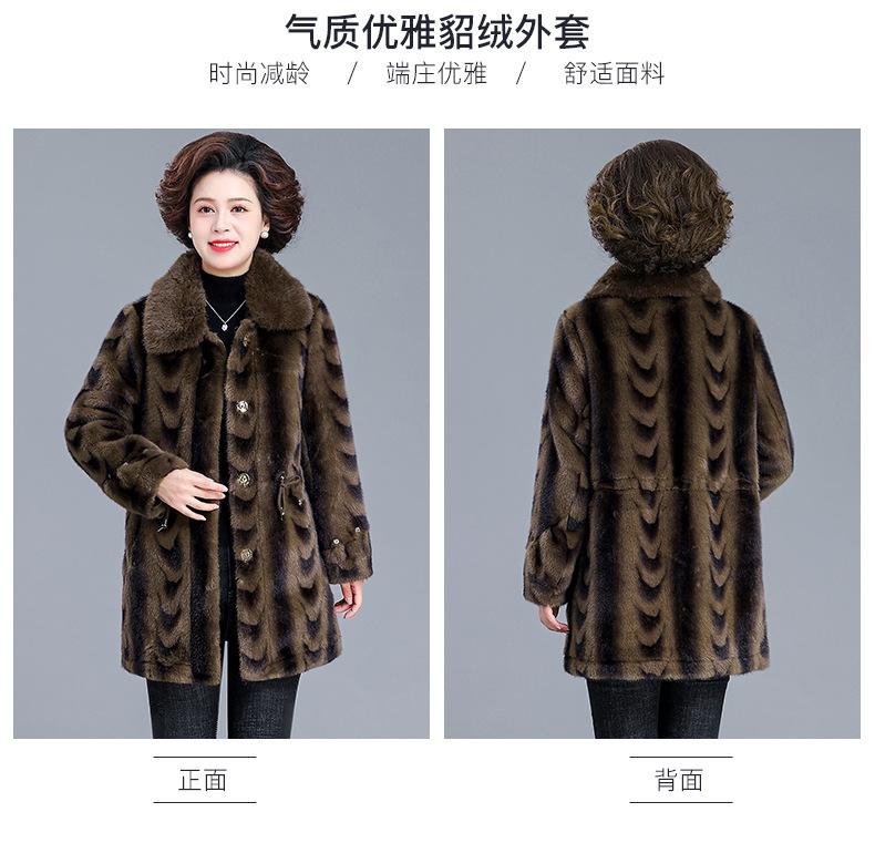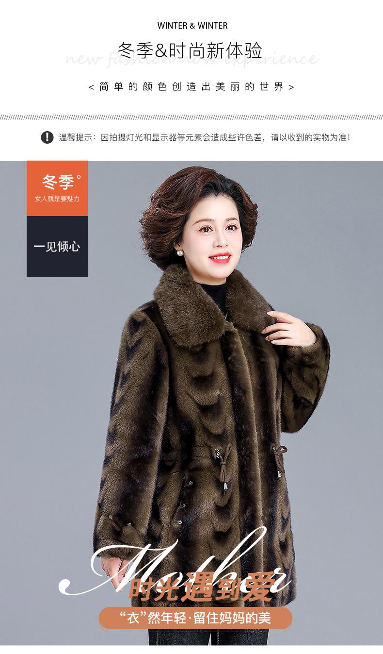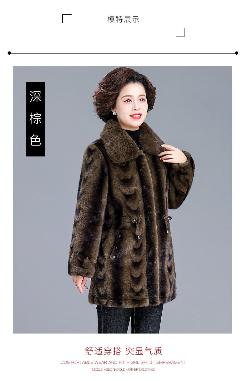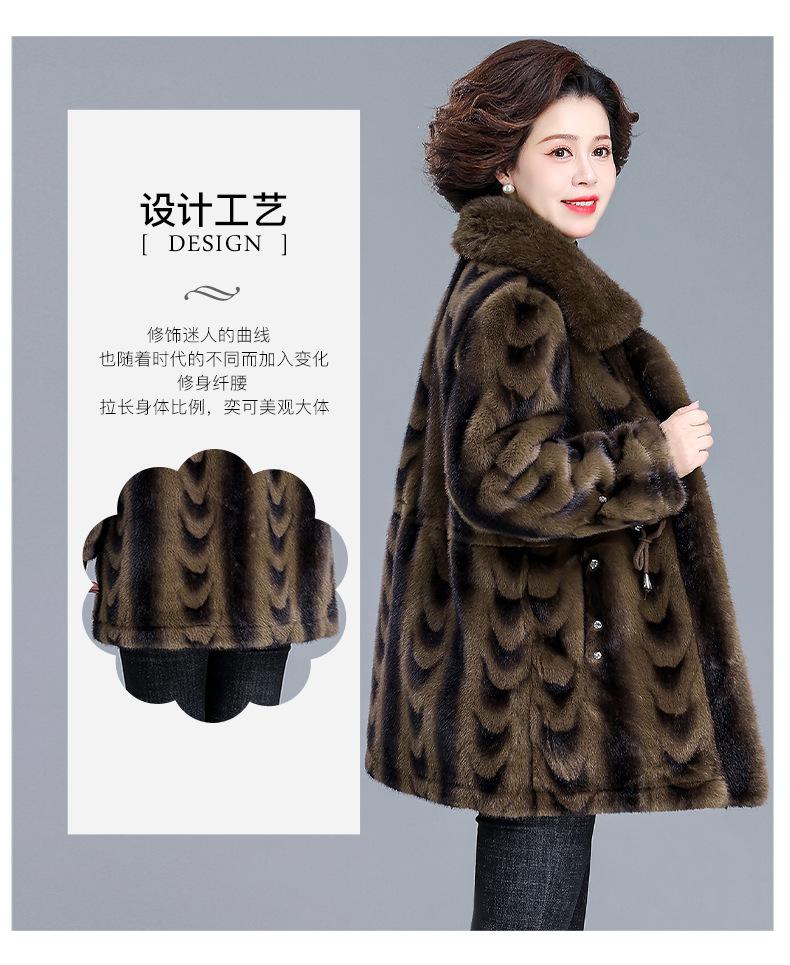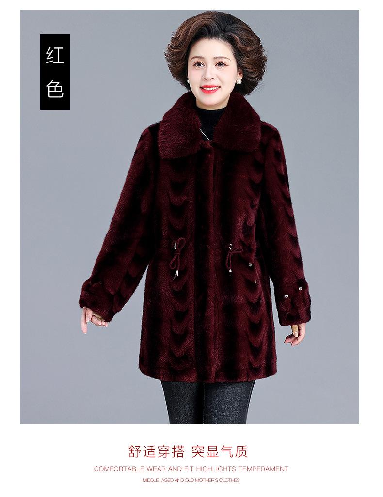 Abrigo largo de visón y menta para otoño e invierno de mamá, nuevo y elegante abrigo de invierno de una pieza con cuello de piel para mujeres de mediana edad y mayores.