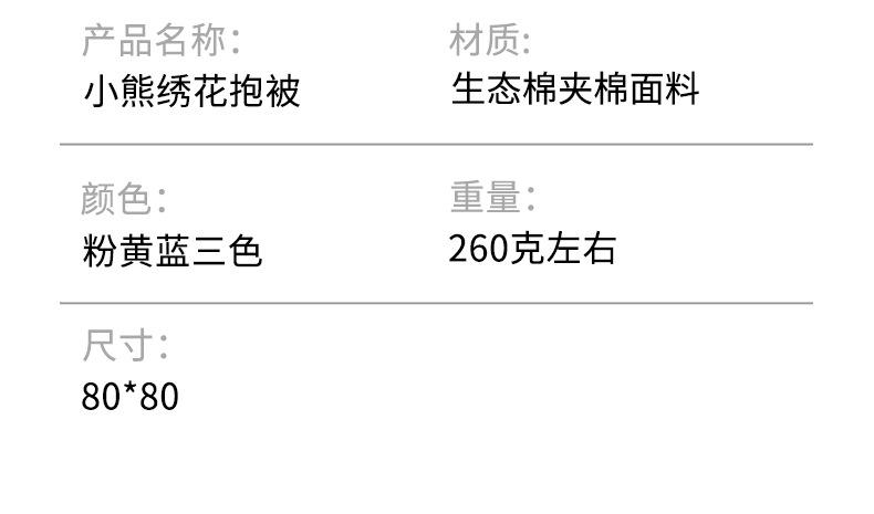 Manta de Algodón Cálido para Bebé Bordada con Oso de Dibujos Animados Recién Nacido Algodón Puro Manta para Niños Suministro de Manta para Bebé