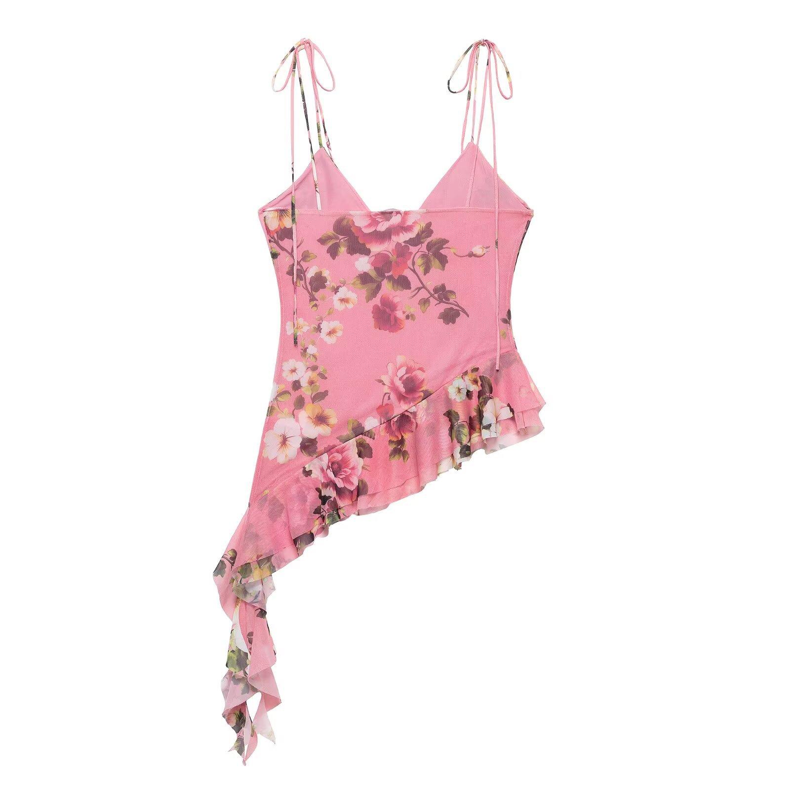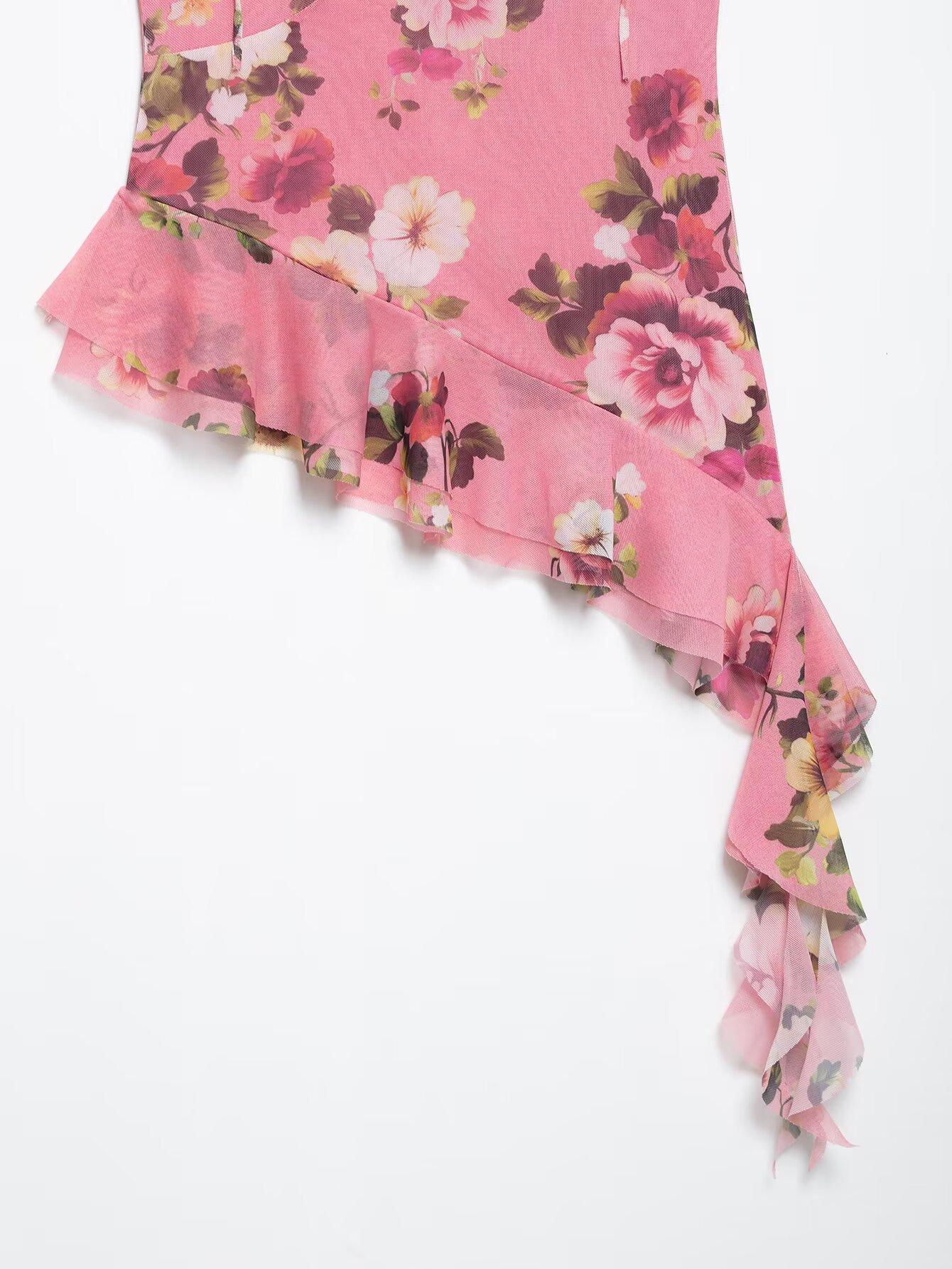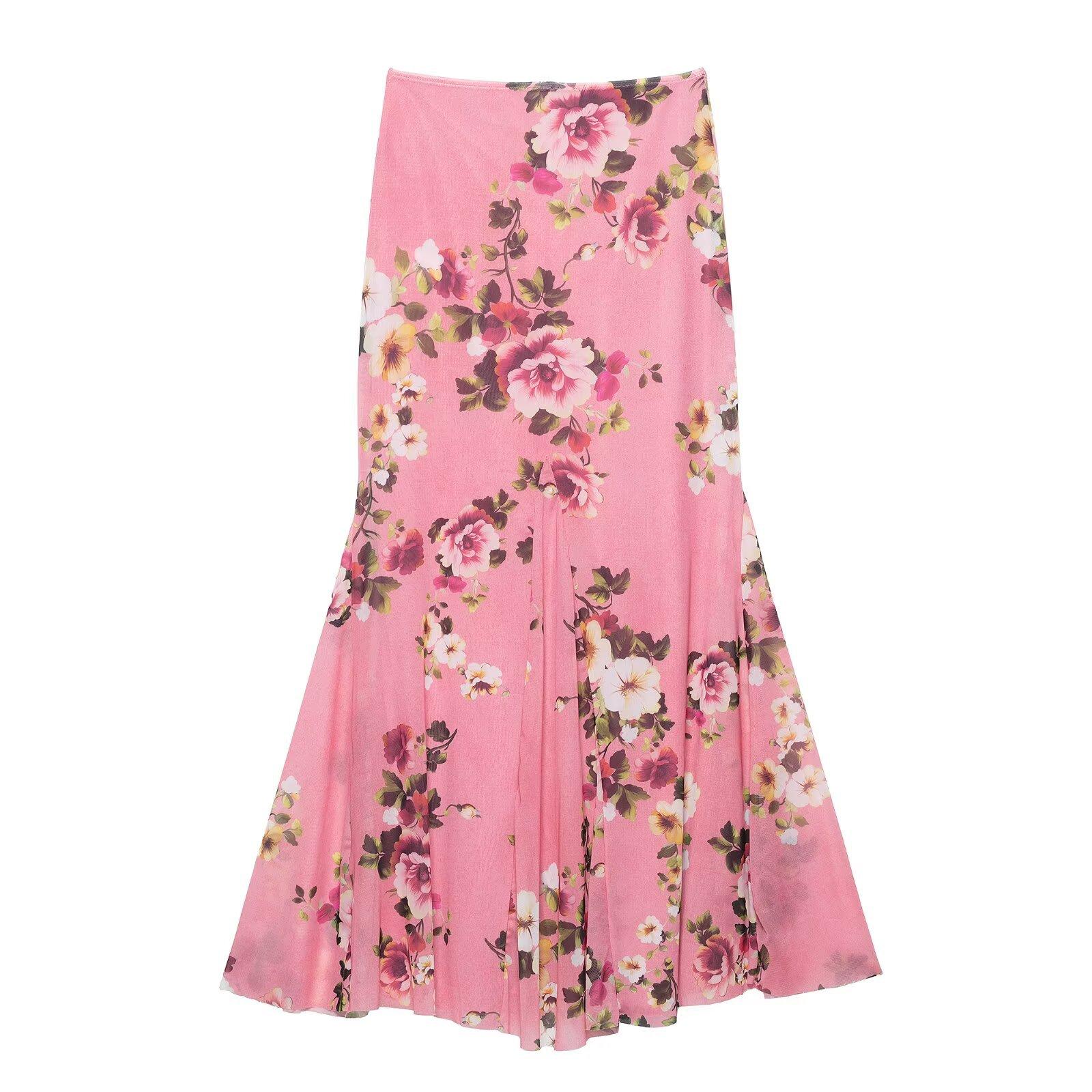 Primavera 2025, nueva ropa transfronteriza europea y americana para mujer, falda de malla de seda estampada, traje w085 240384
