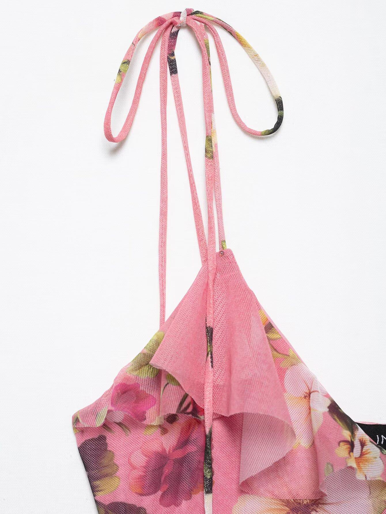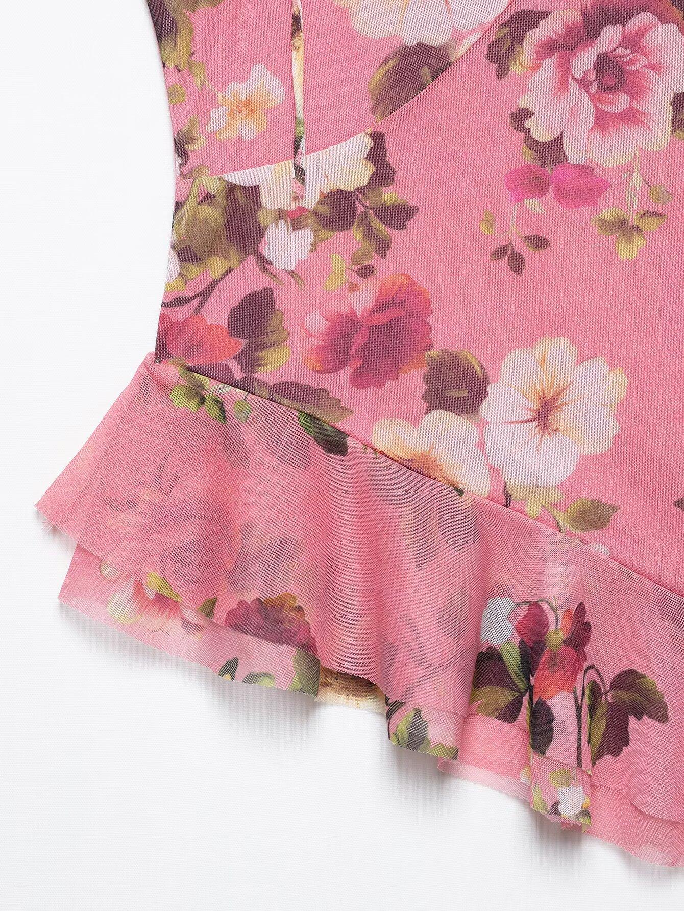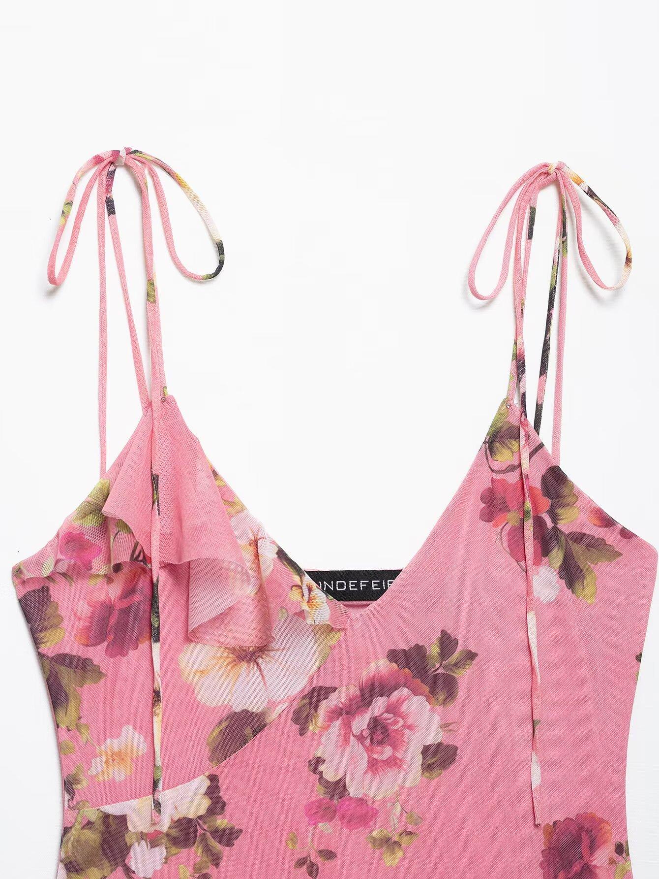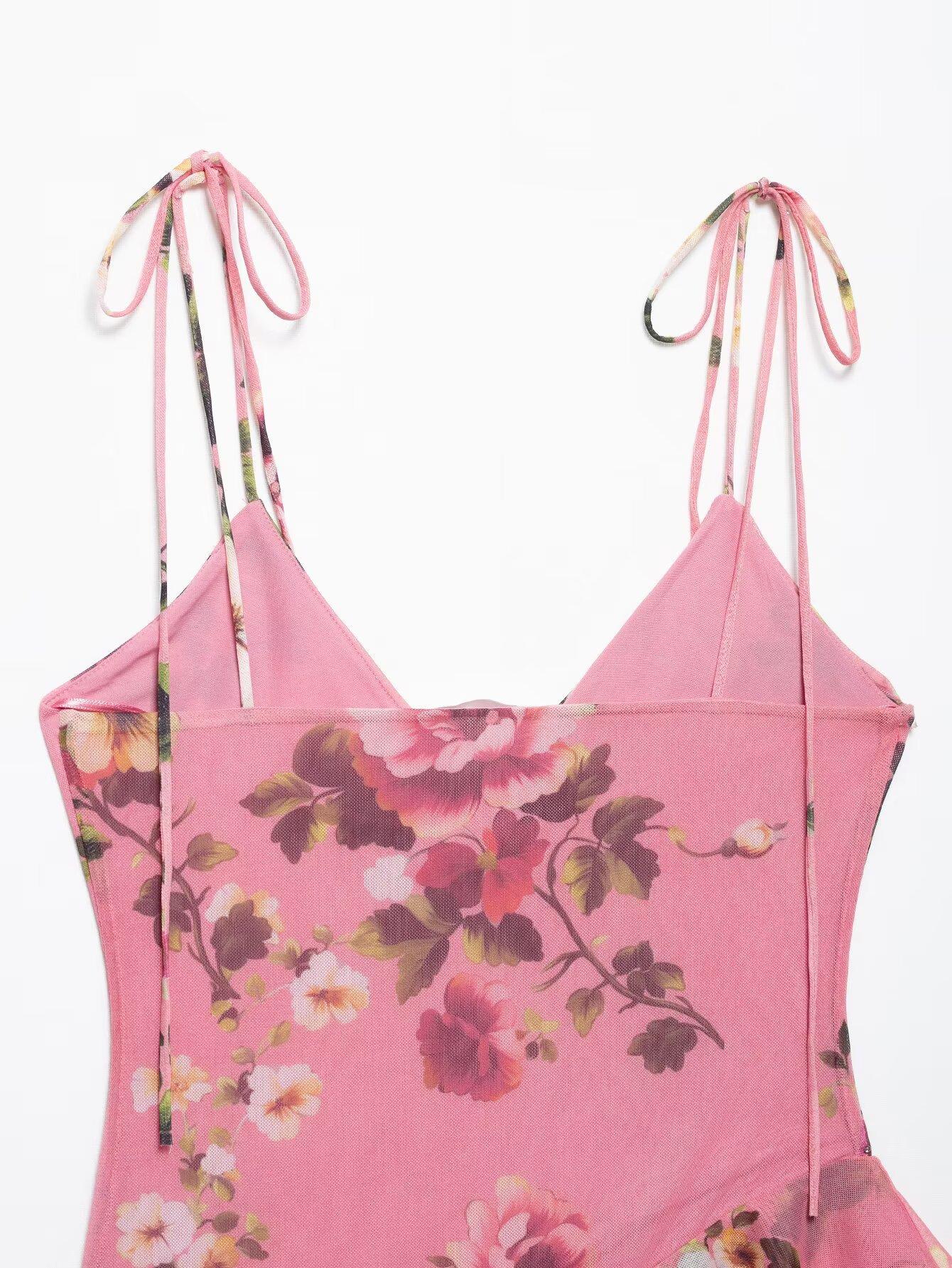 Primavera 2025, nueva ropa transfronteriza europea y americana para mujer, falda de malla de seda estampada, traje w085 240384