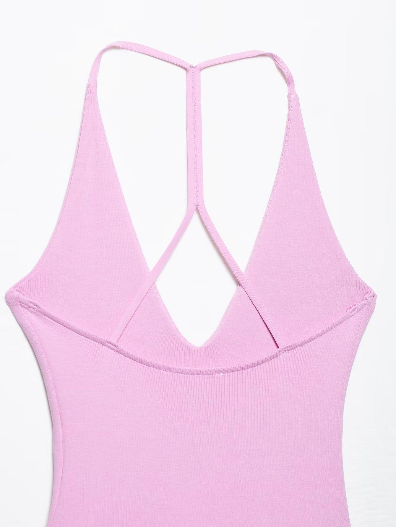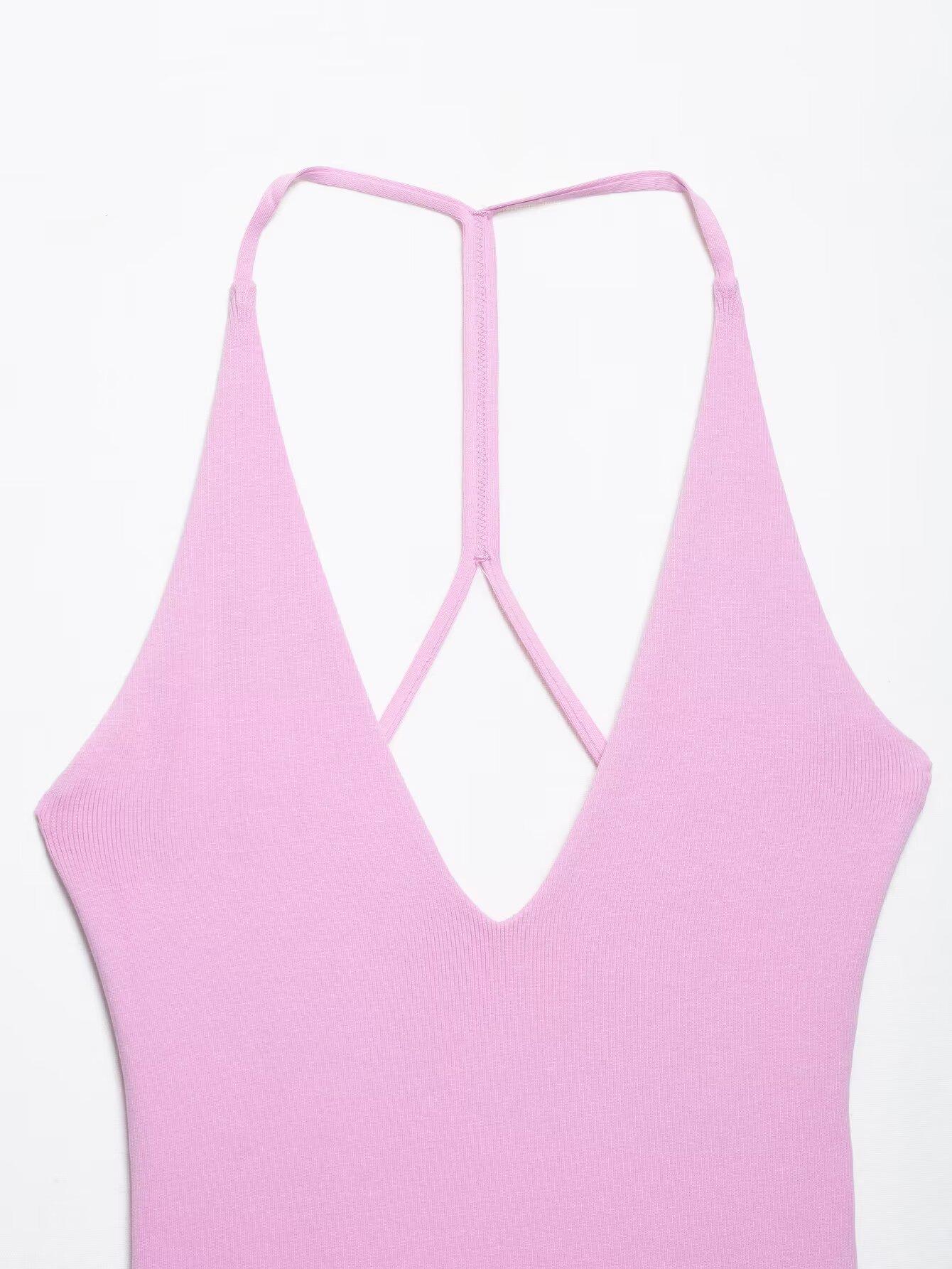 2025 Primavera Nuevo Ropa de Mujer Transfronteriza Europea y Americana Moda Urbana Costuras Cuello Colgante Vestido w085 245405
