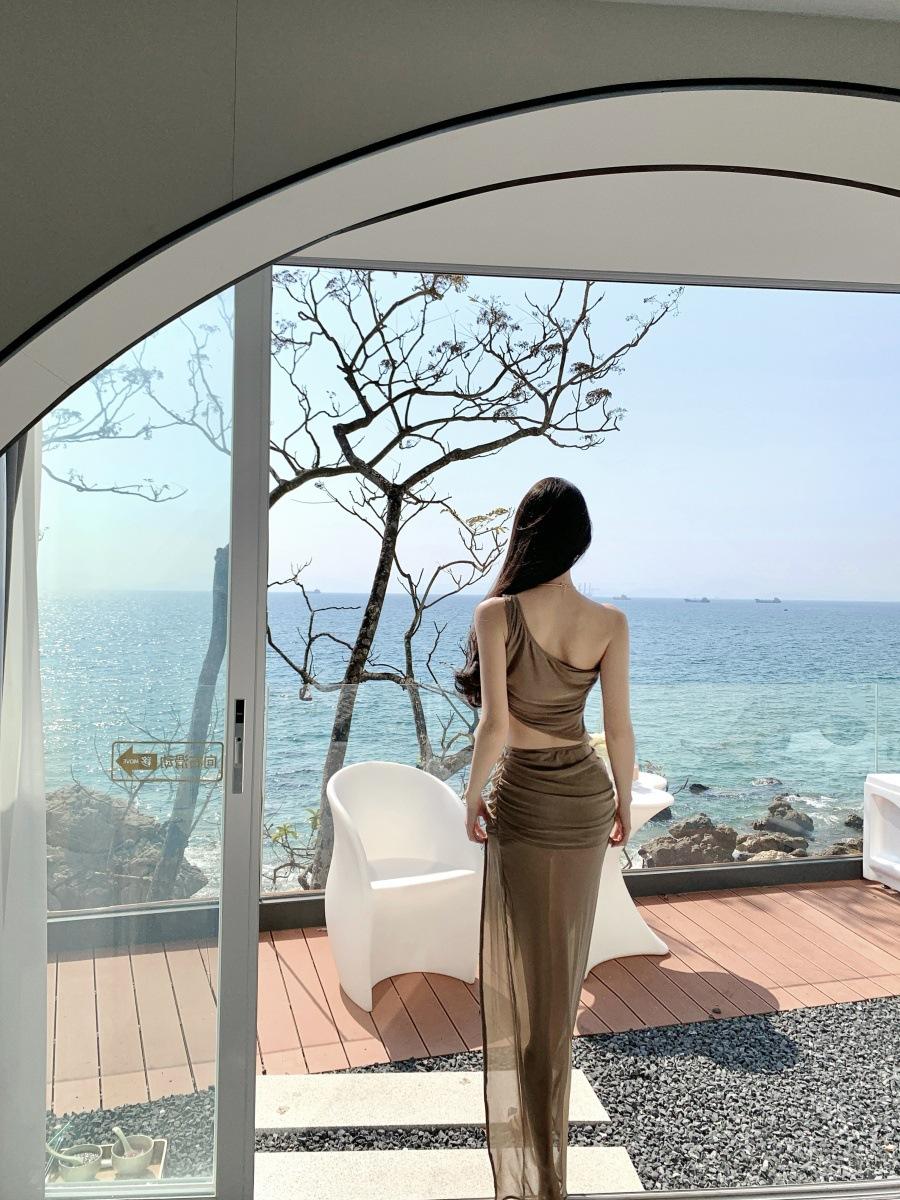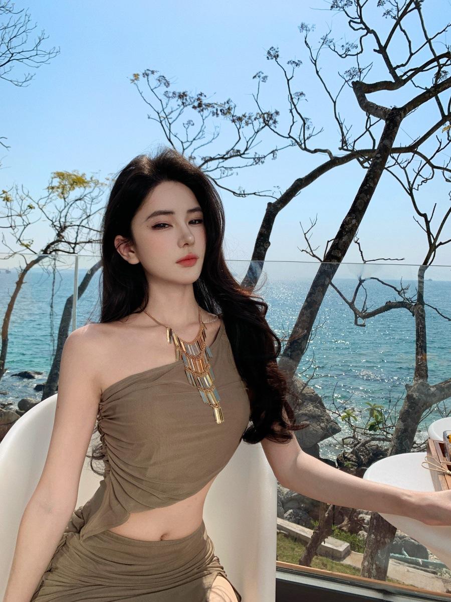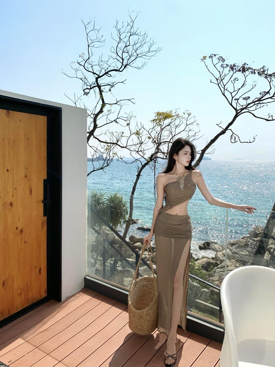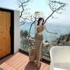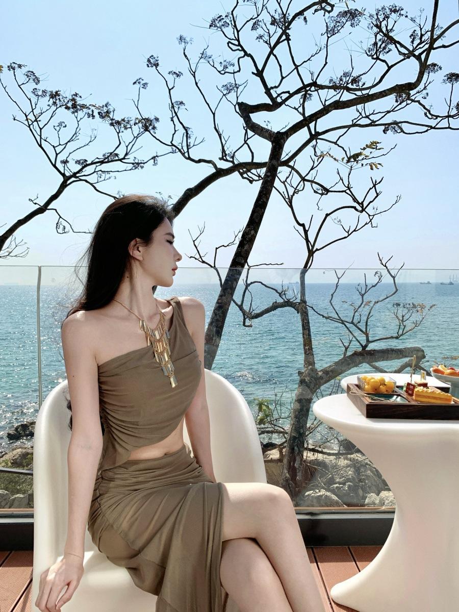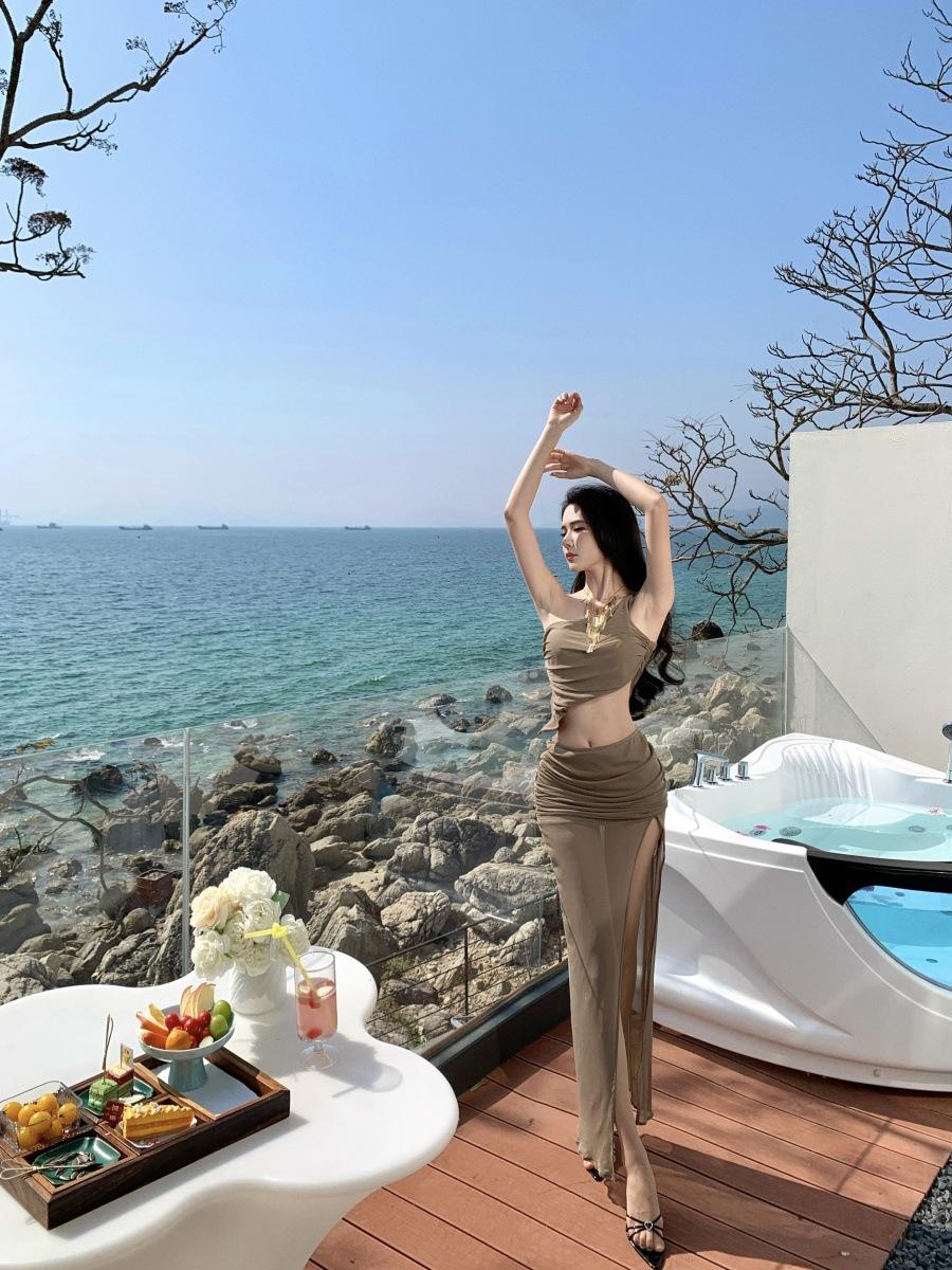Traje de Verano Estilo Francés Deseo Puro Spice Girl Ropa de Vacaciones Chaleco Sin Mangas Strapless Falda con Abertura de Cintura Alta para Mujer