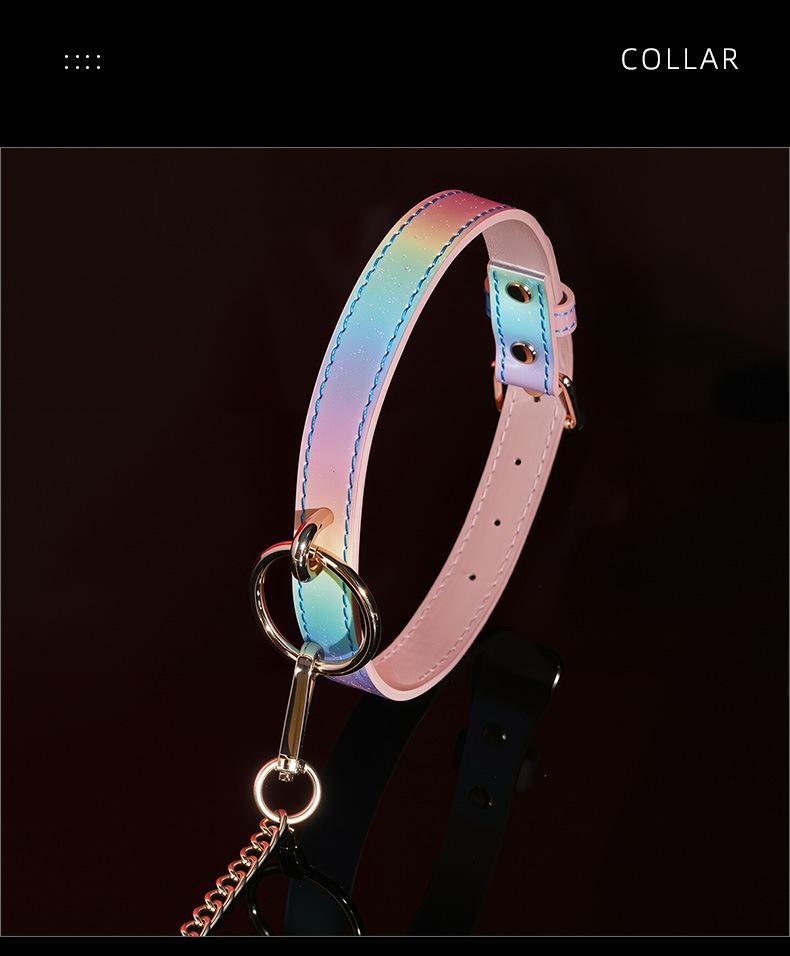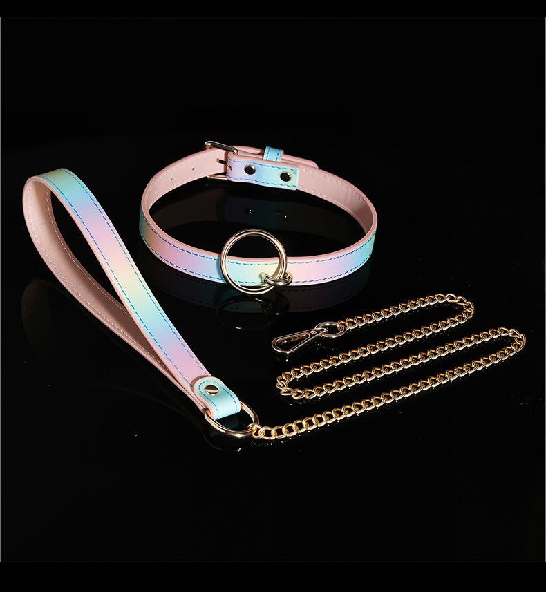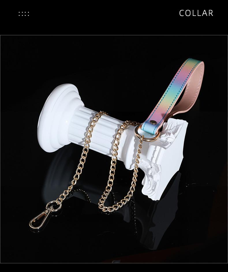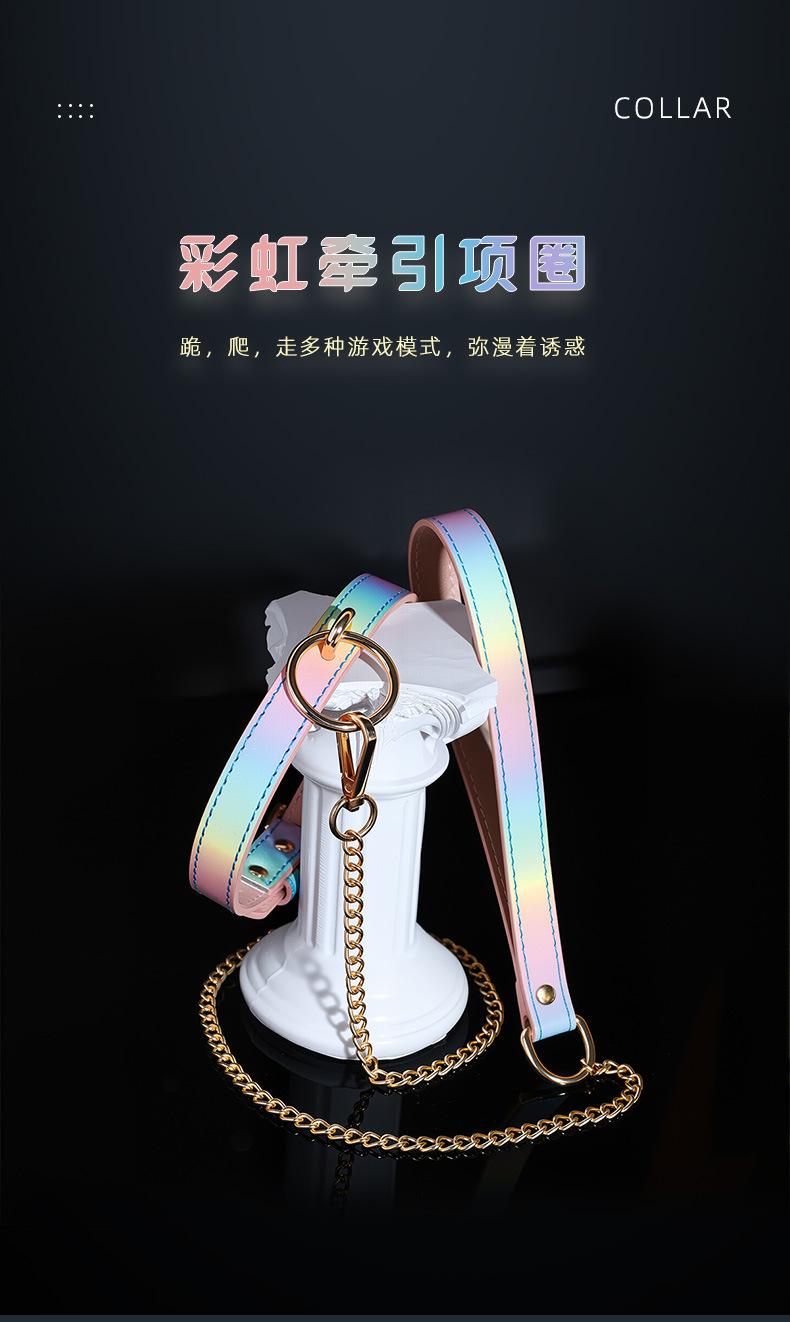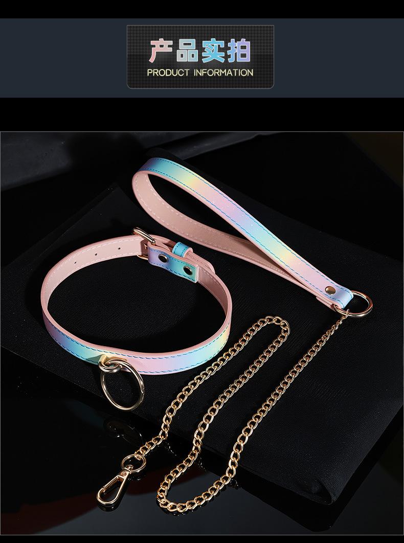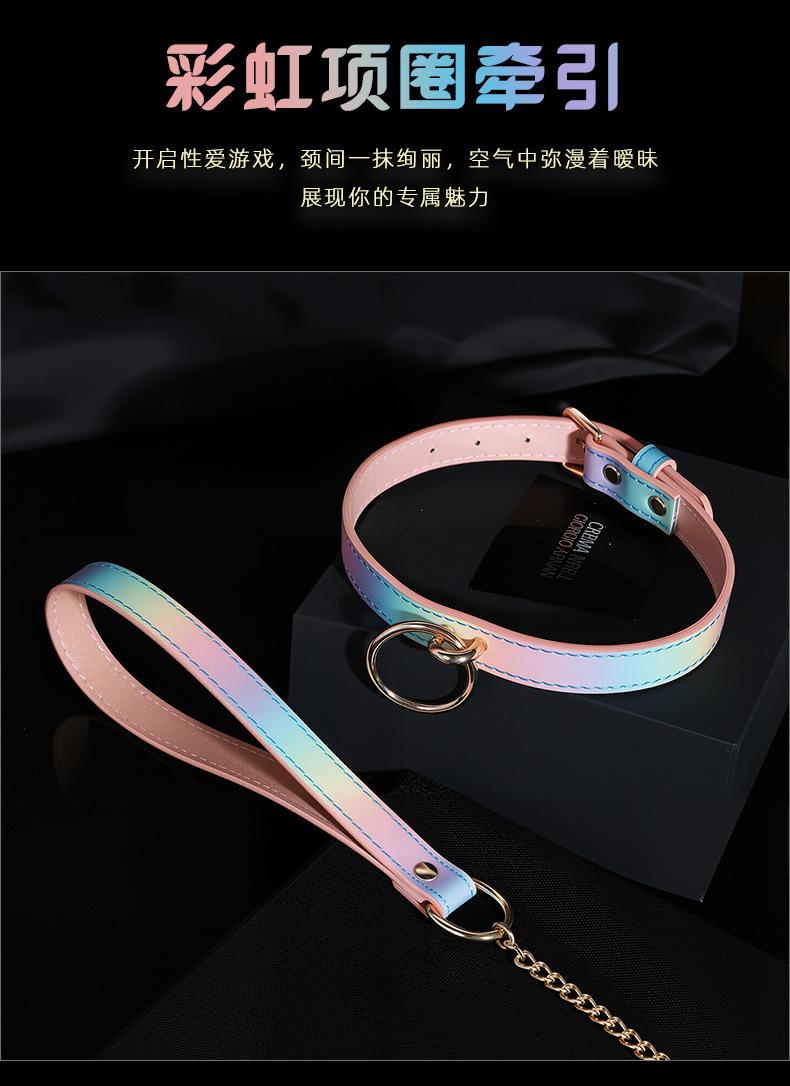 Compra Xu Qu Sexy Adulto SM Arcoíris Enseñó Collar de PU Parejas Flirteo Castigo Juguete Alternativo Accesorios al por mayor en Joom.pro