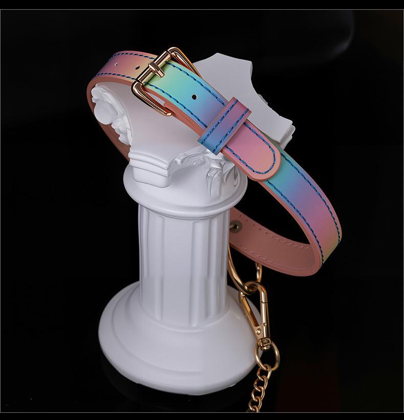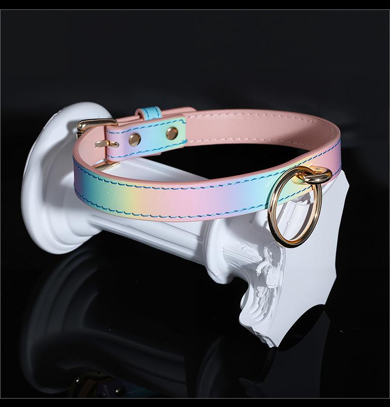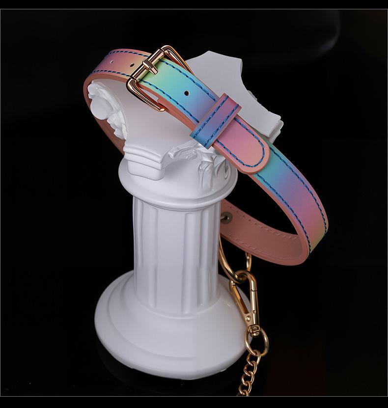 Xu Qu Sexy Adulto SM Arcoíris Enseñó Collar de PU Parejas Flirteo Castigo Juguete Alternativo Accesorios
