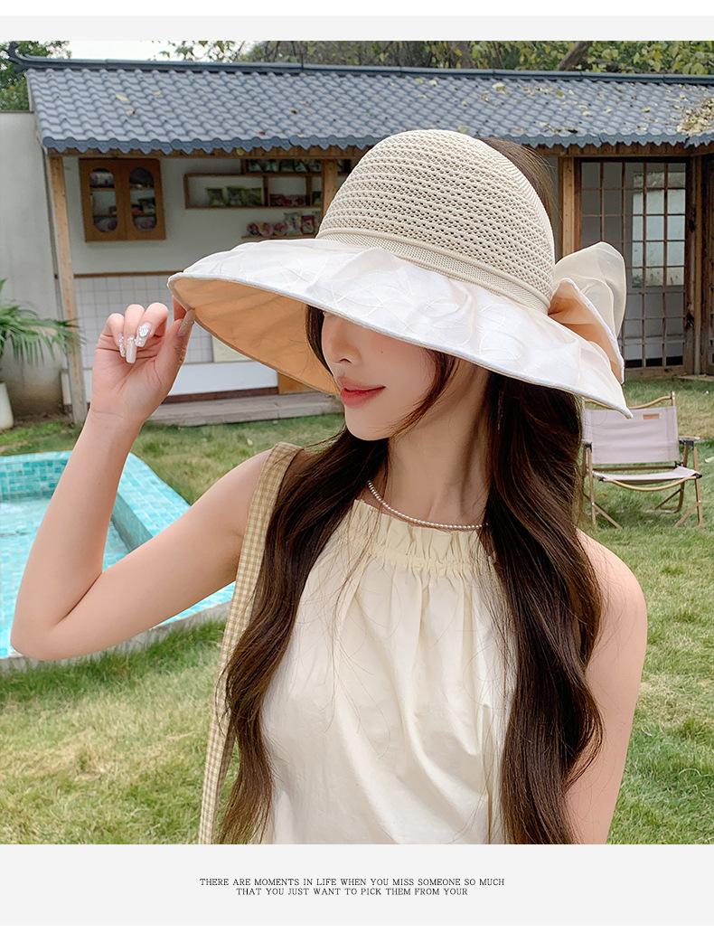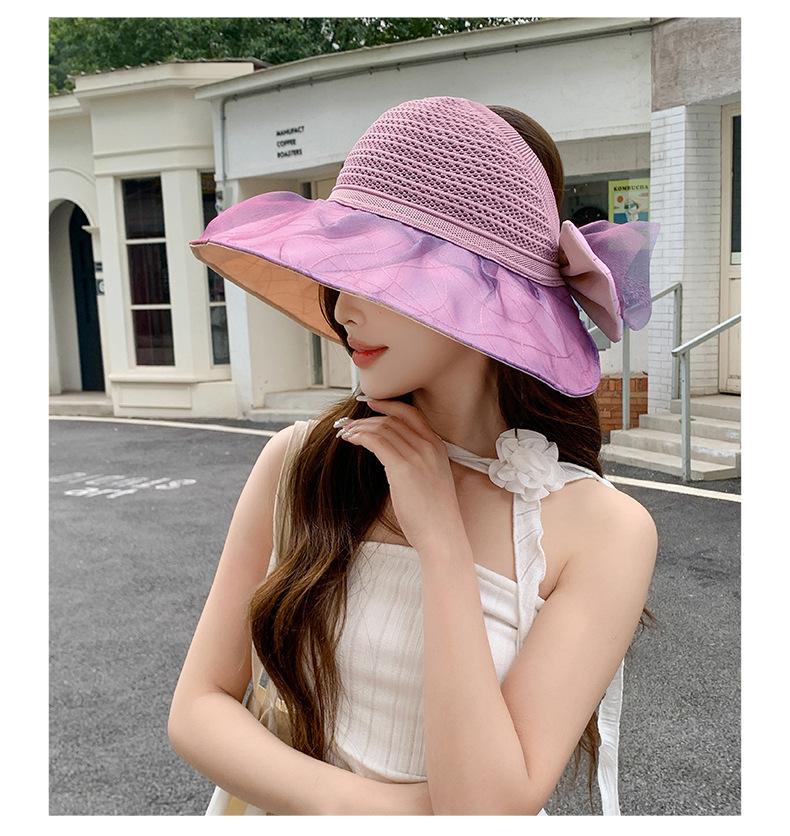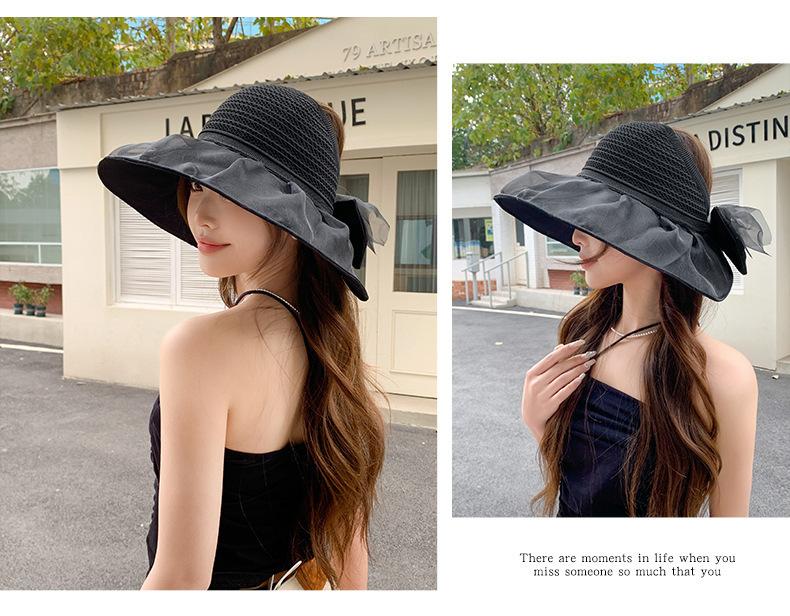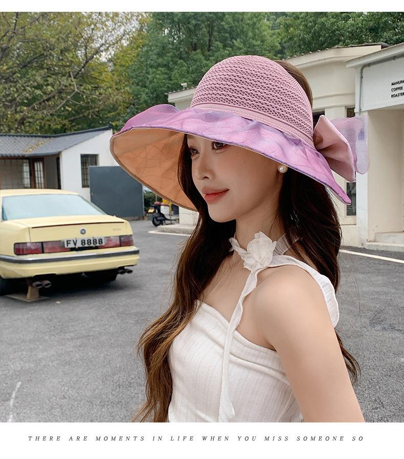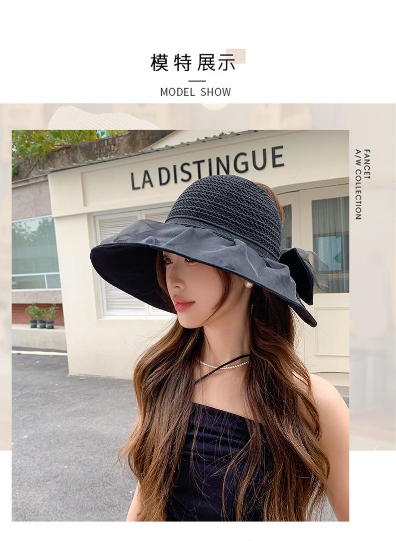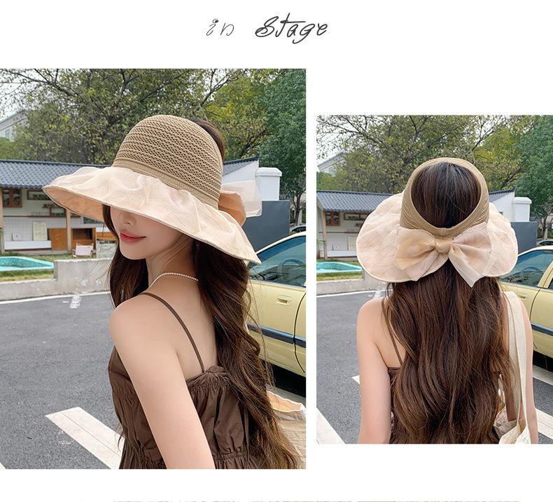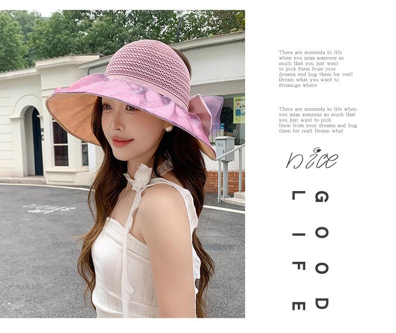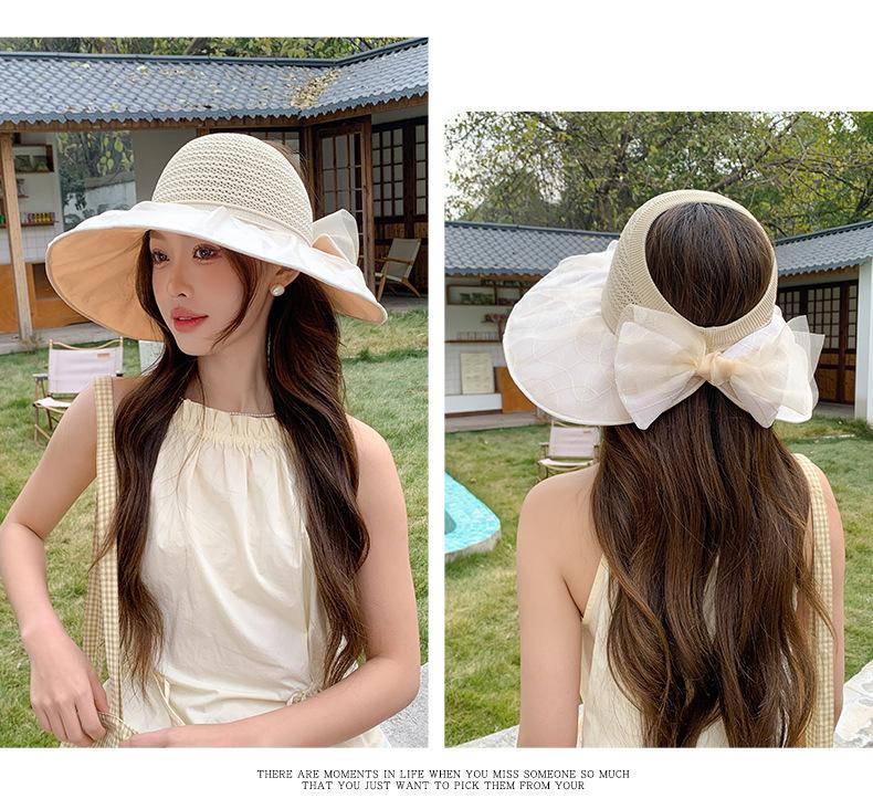 Versión coreana del nuevo sombrero para mujer, sombrero de sol transpirable de malla con lazo para viajes al aire libre, venta al por mayor